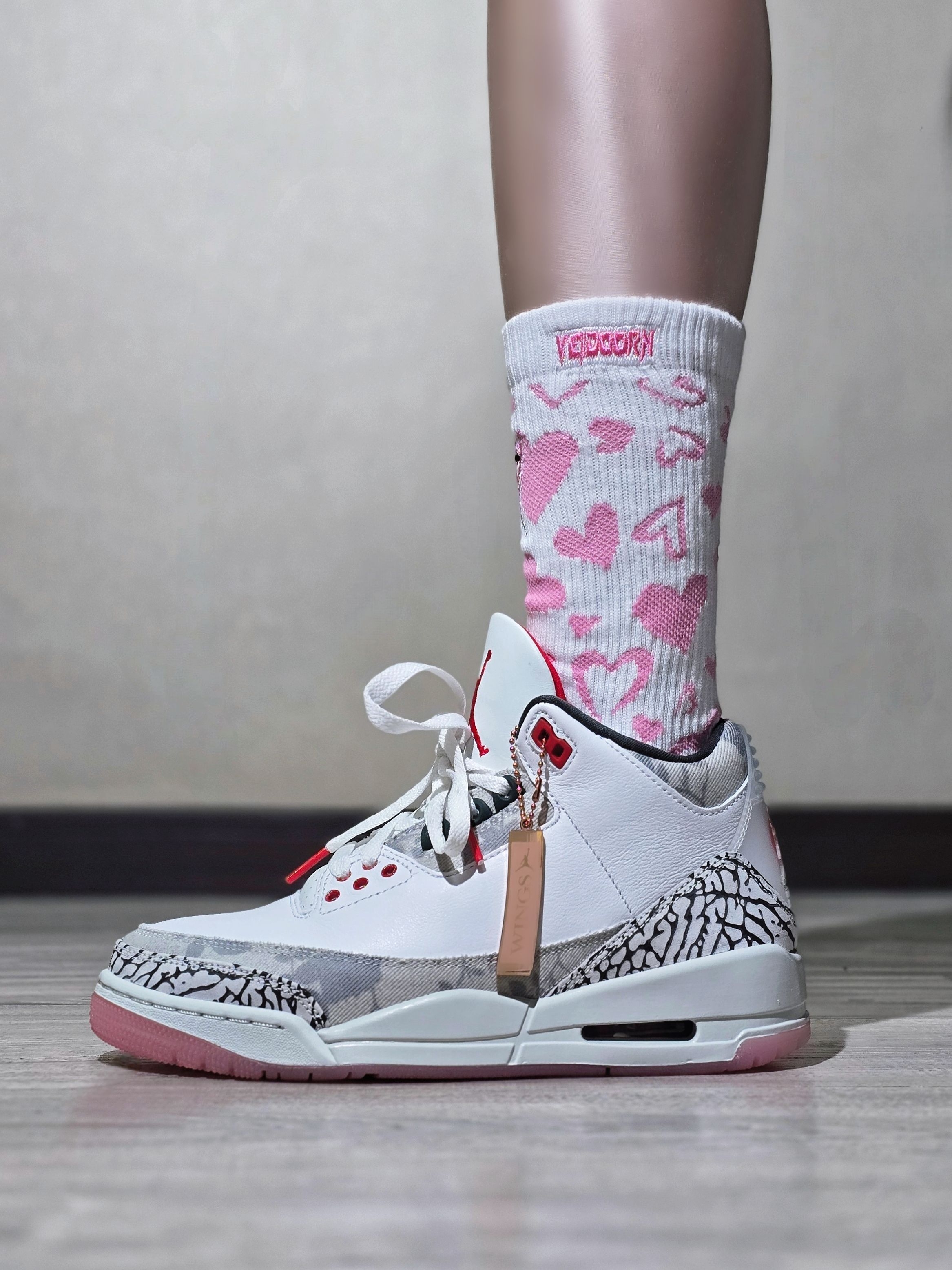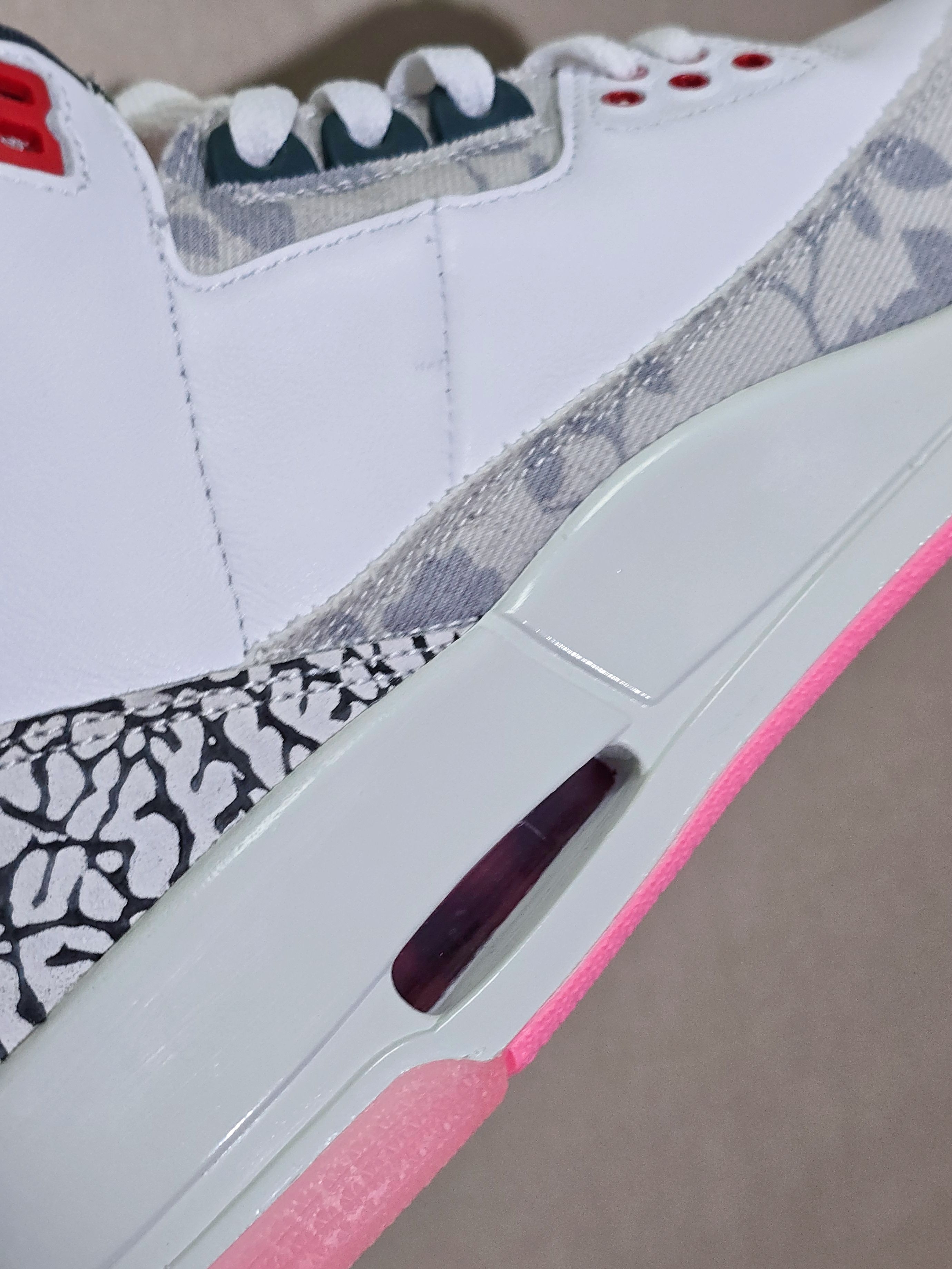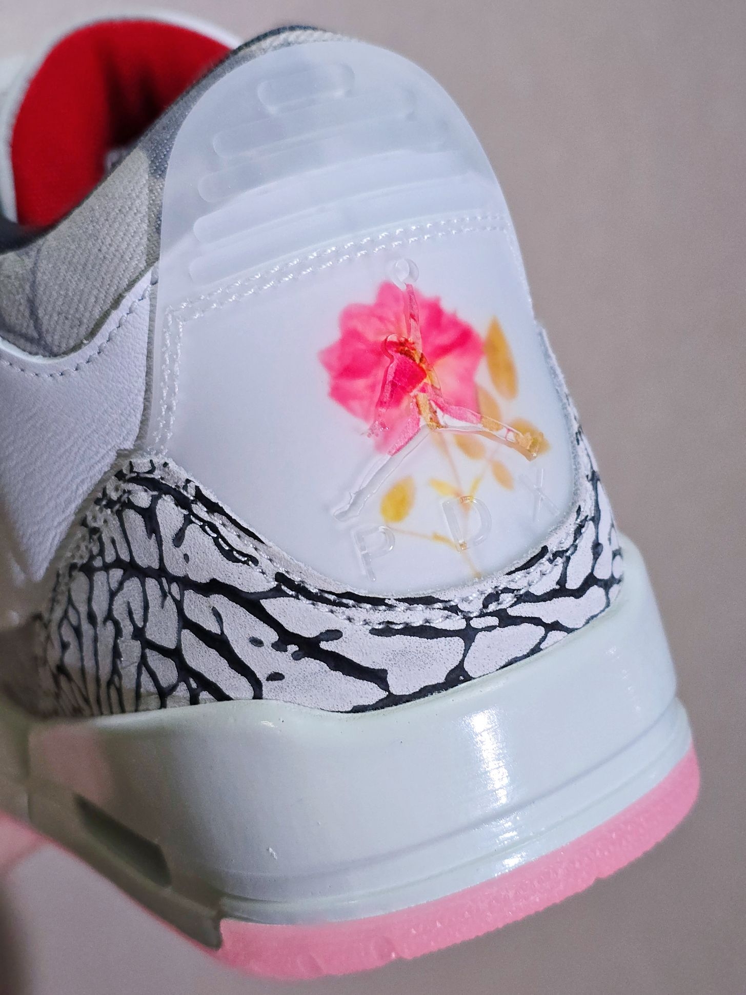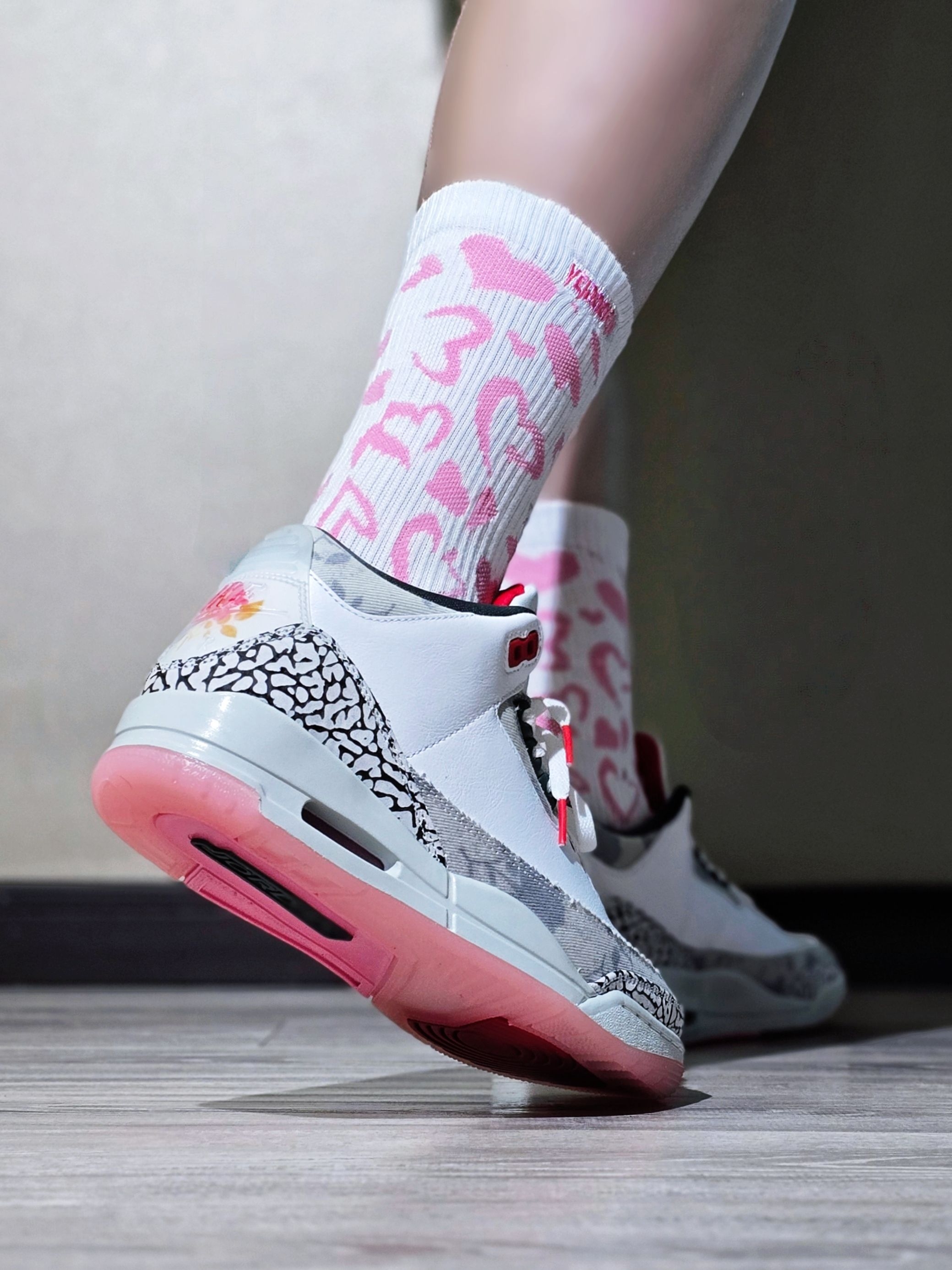 这双AJ3 Wings谁懂啊!有木有那么一点美到犯规的味道呢💘 ~白灰爆裂纹+粉色果冻底,后跟粉色玫瑰樱花甜到心巴!好小众的一款复古球鞋,校园吸睛、约会浪漫、逛街炸街全hold住~