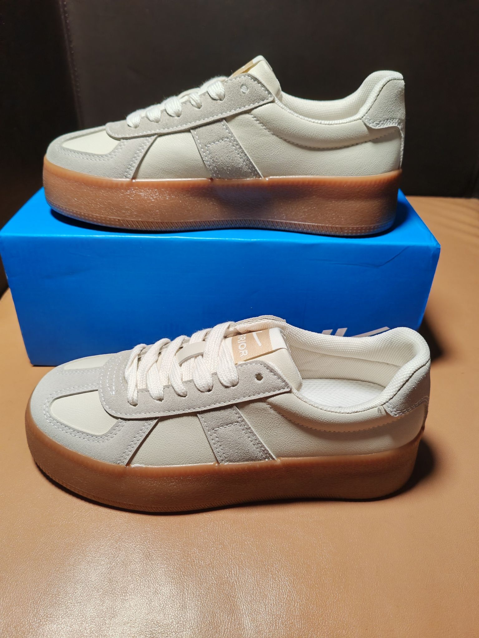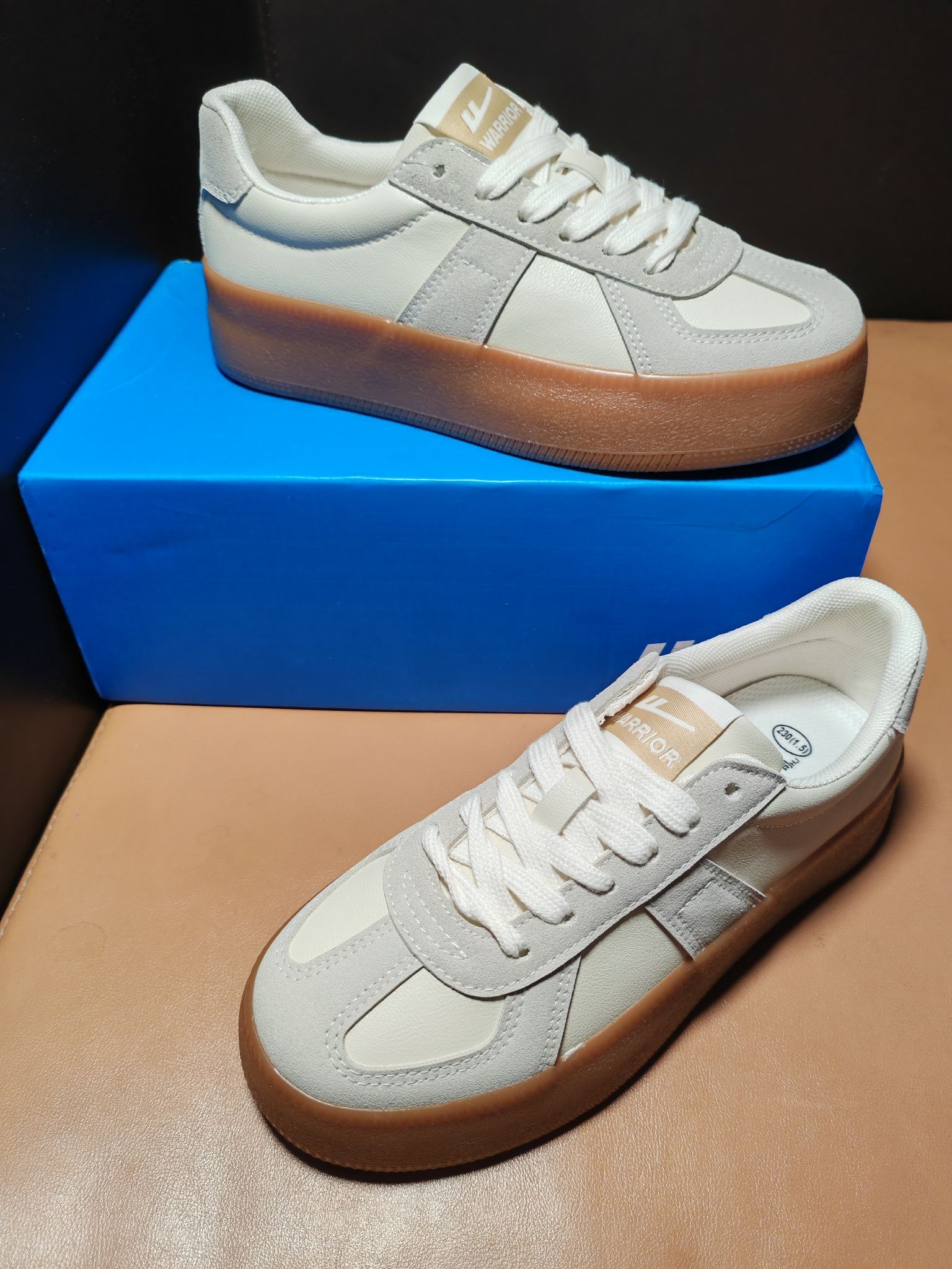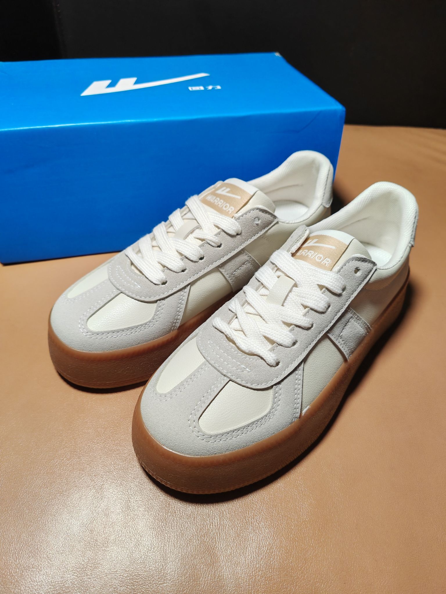 开学季,性价比情侣款的鞋子推荐一下 今天就给大家带来这双Warrior回力 德训鞋 低帮 板鞋 男女同款 鞋子整体由米色和米灰色搭配而成,颜值整体在线,日常通勤穿搭牛仔裤👖休闲裤👖工装裤都🉑 鞋身是合成革材质,摸起来比较细腻柔软,质感在线,整体比较耐磨和透气 鞋舌和内里厚度适中,贴合脚型,不硌脚🦶不磨脚 中底有3厘米左右增高效果,踩起来软乎乎的,脚感舒适 深纹路的橡胶大底,防滑耐磨效果不错 日常...