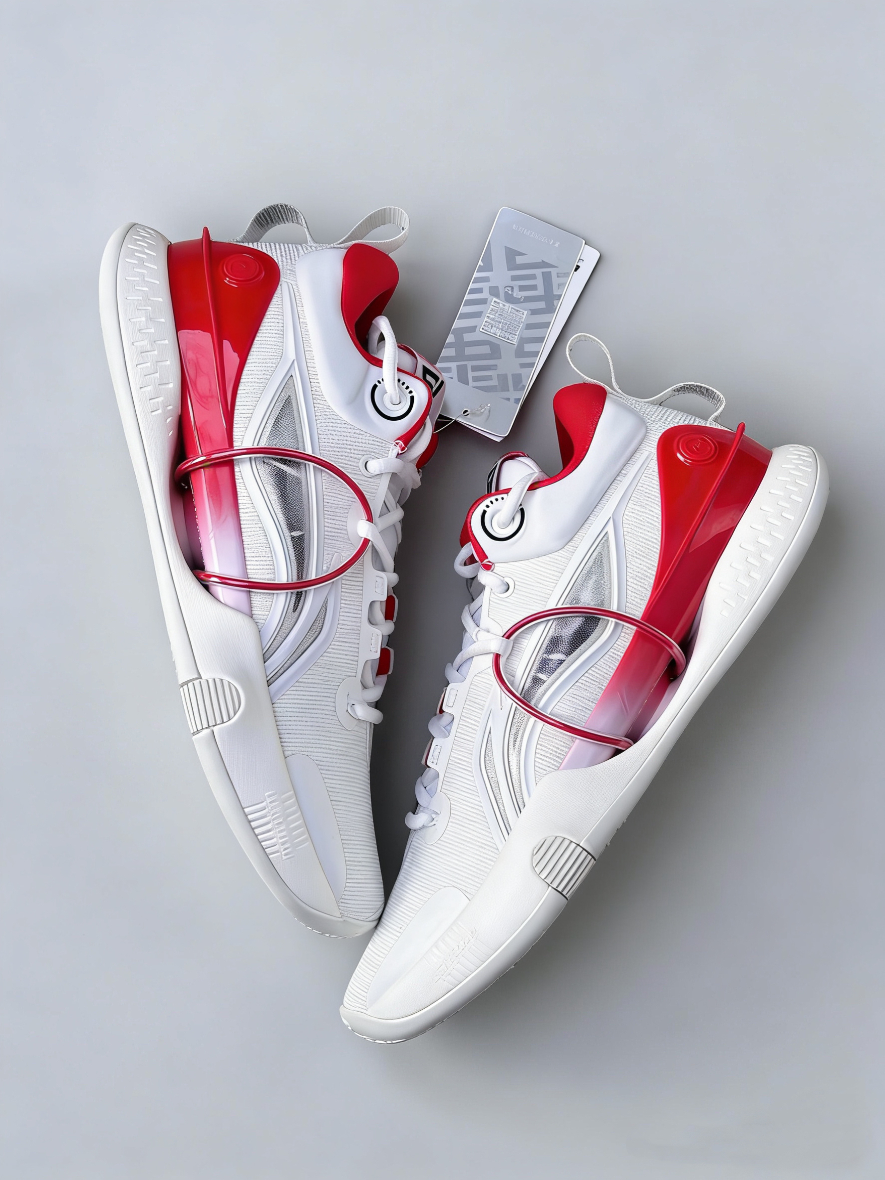 室内木地板实战体验: ✅ 䨻科技缓震,起跳落地稳 ✅ 抓地力拉满,急停变向不打滑 ✅ 透气包裹,久穿不闷脚 白红配色回头率超高,实战出街都能打! #李宁 #闪击8Premium #实战篮球鞋 #白红配色 #球鞋测评
