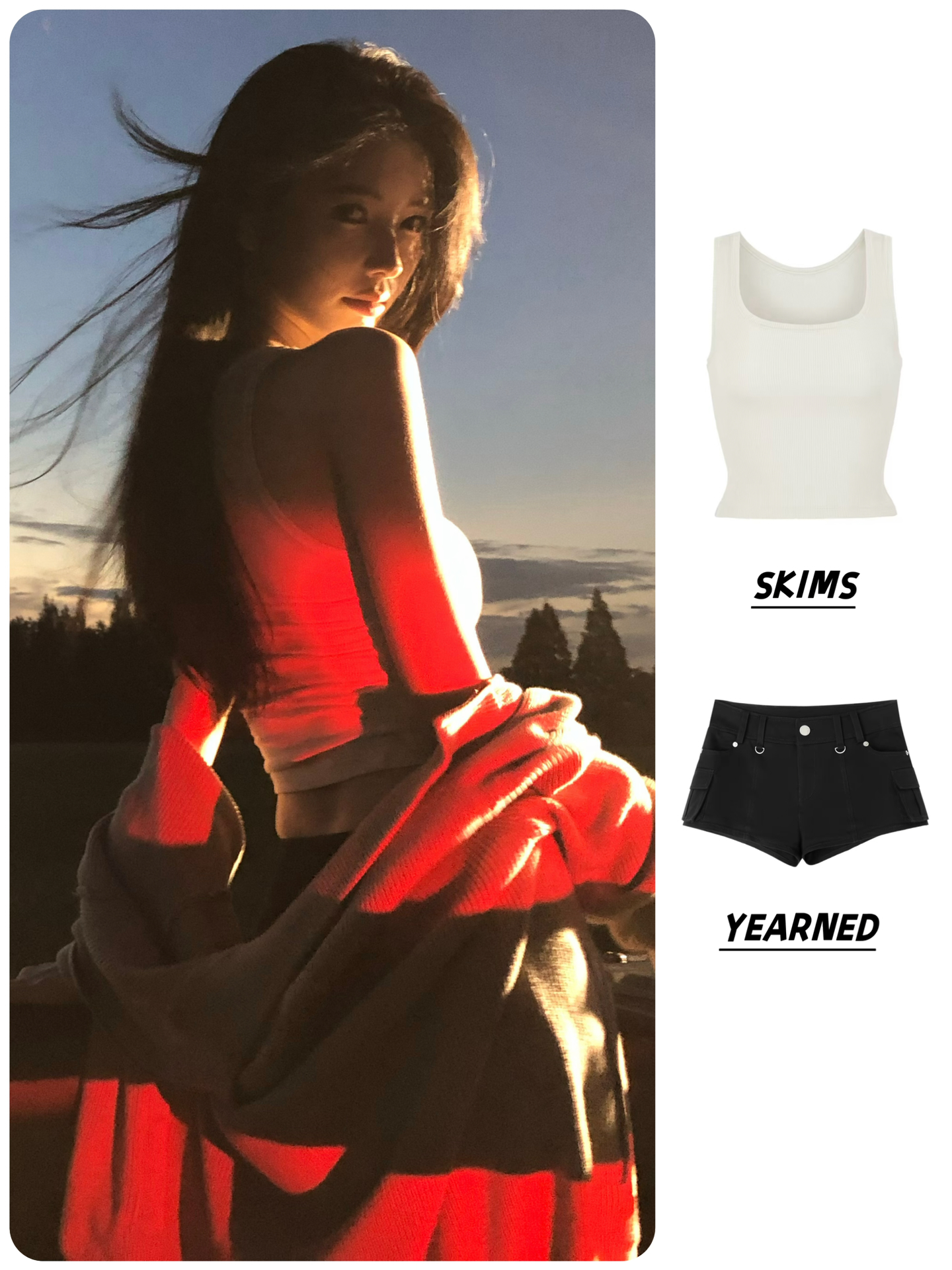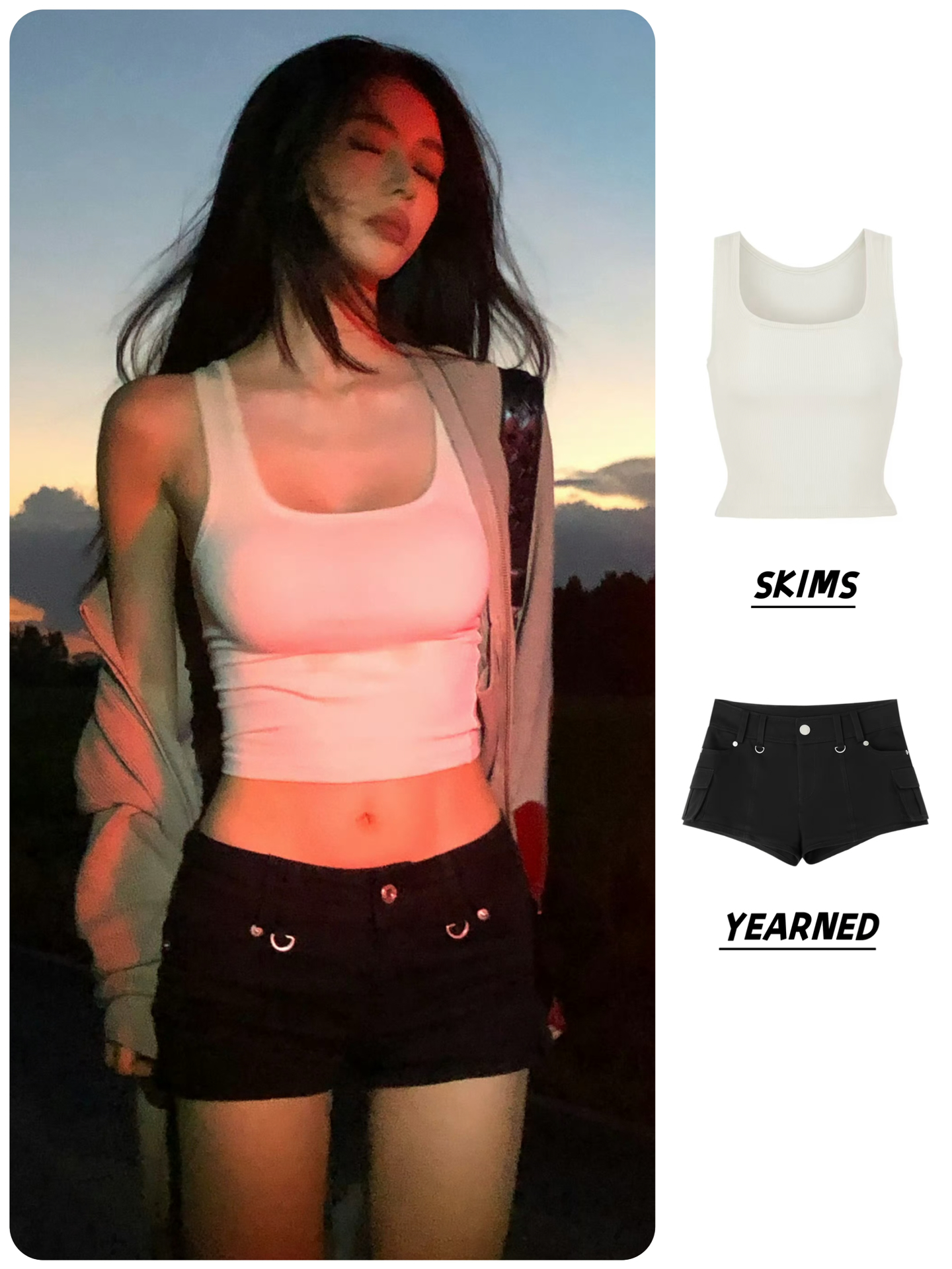 🎽SKIMS COTTON RIB TANK 棉罗纹纯色紧身圆领背心 🩳YEARNED 纯色A字牛仔短裤