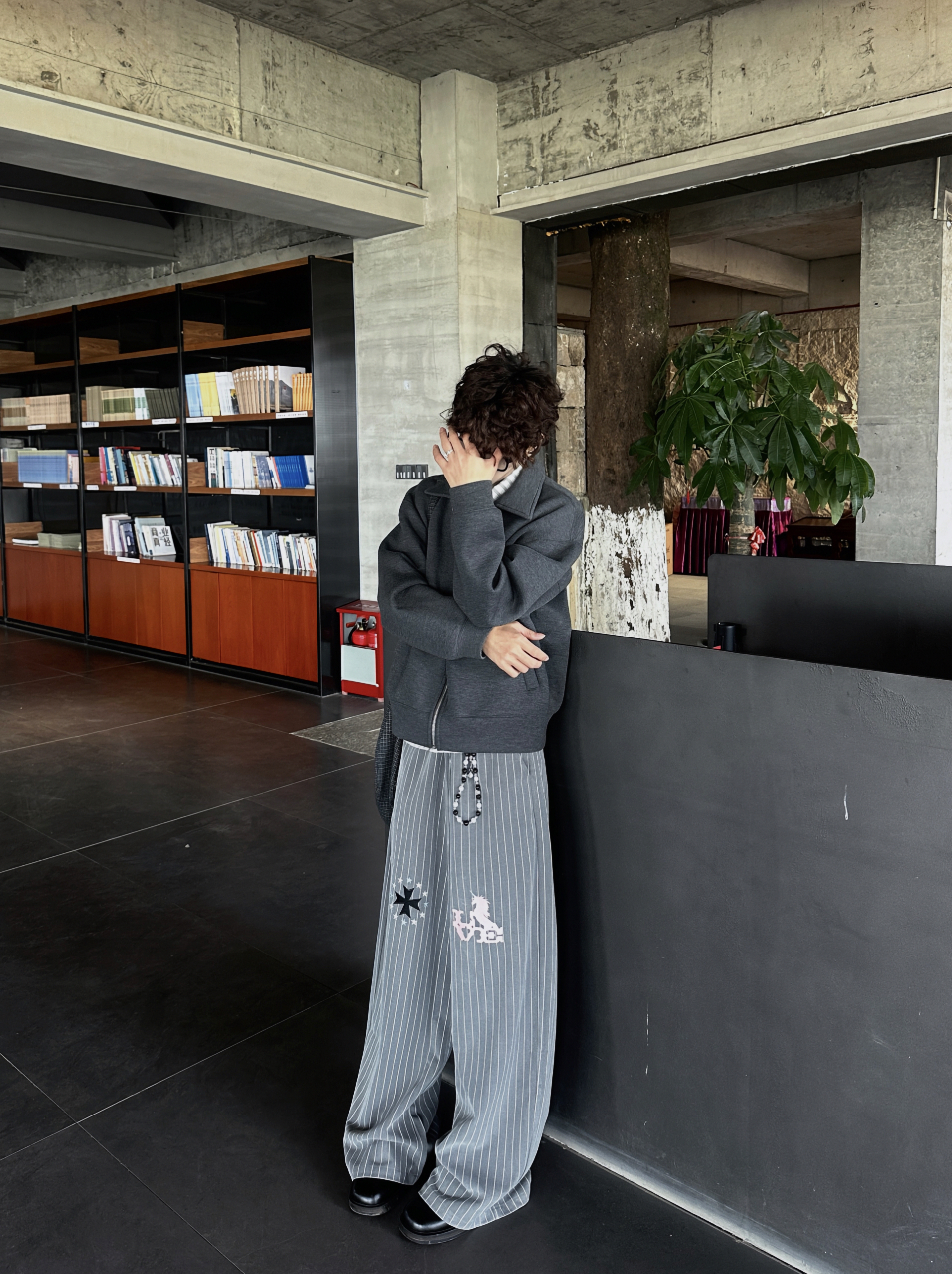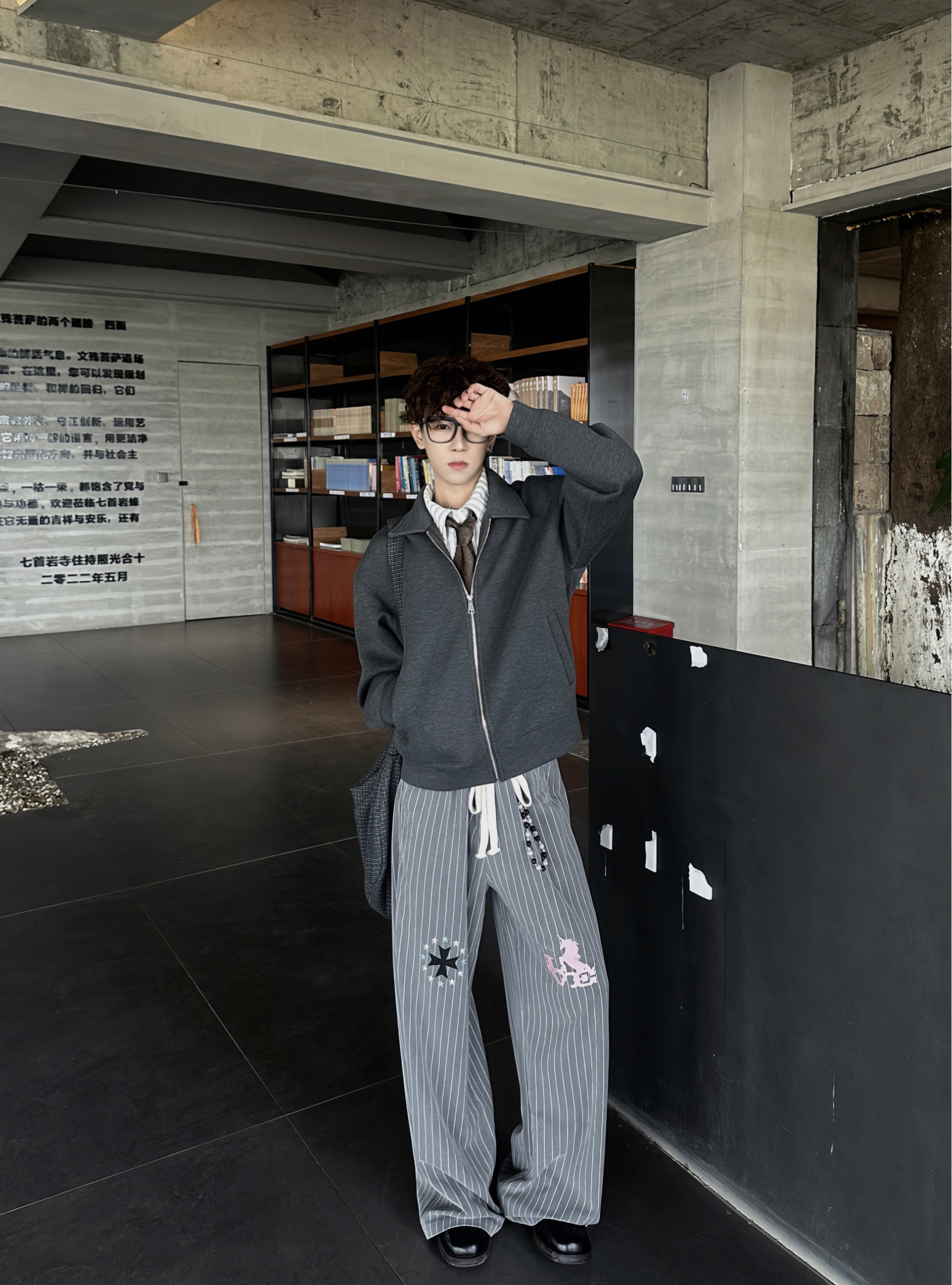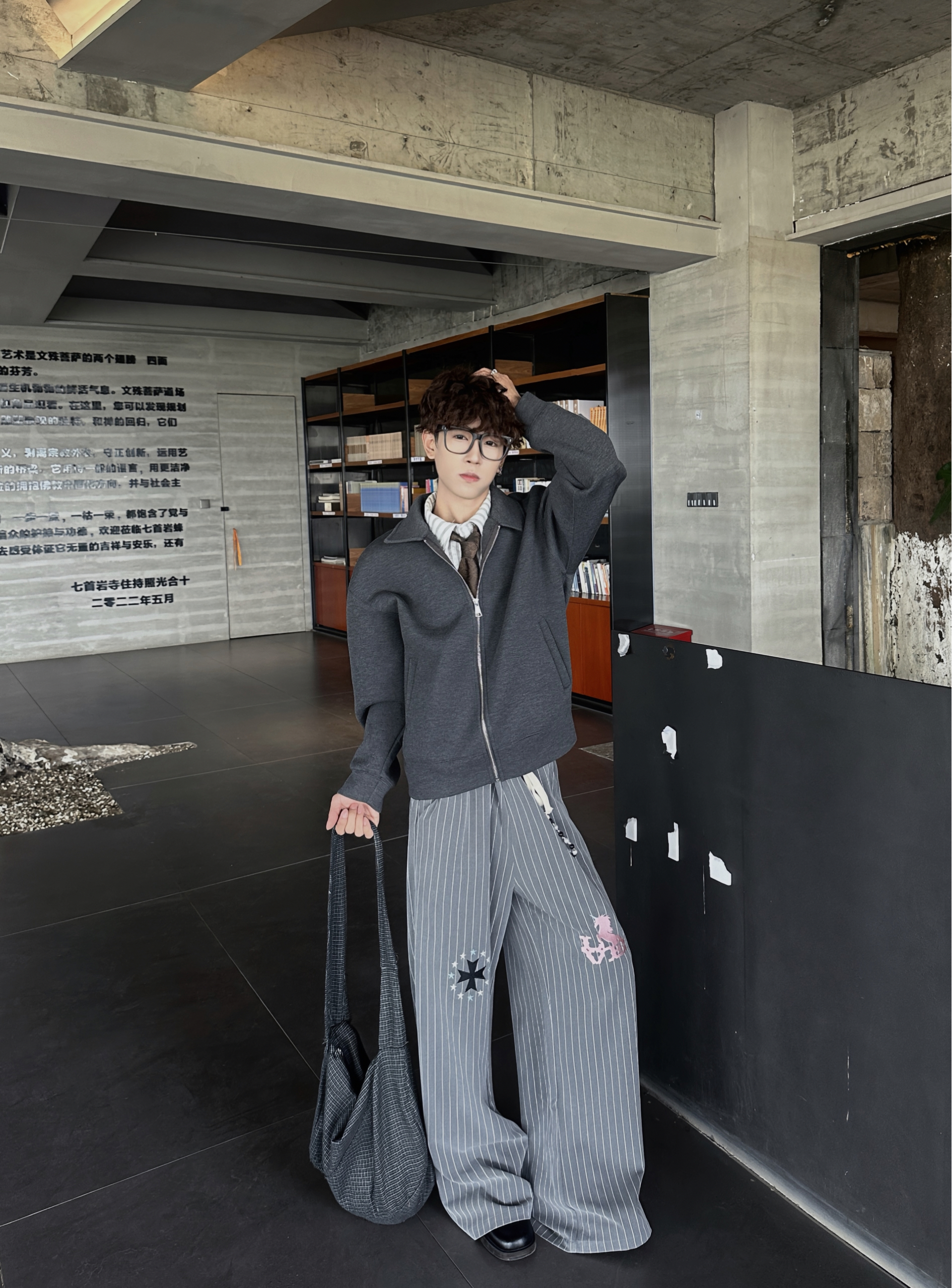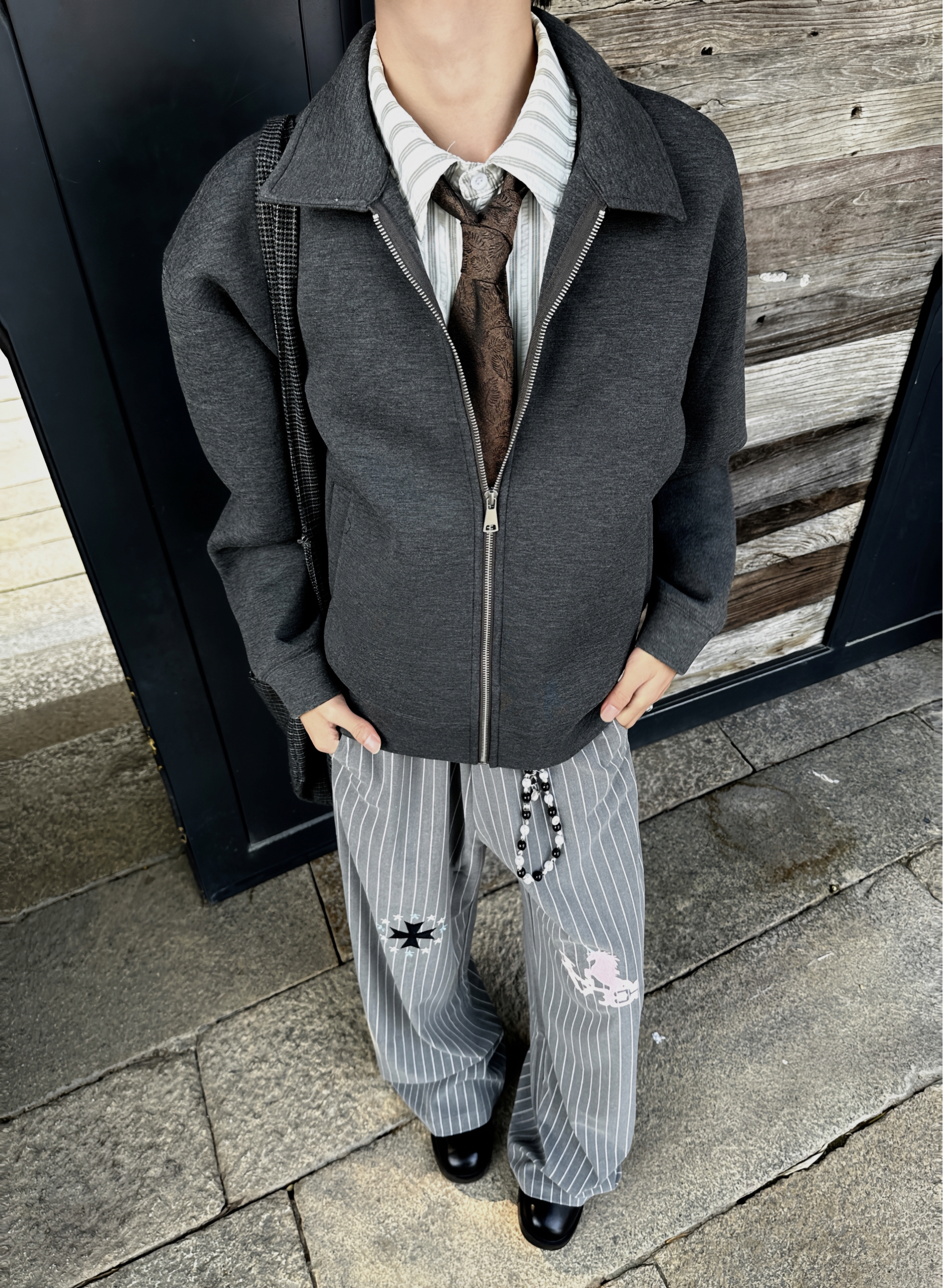 春天穿搭的季节~穿点简约高级的,帅炸整个春💥 休息日~穿点高质的去书屋📚坐坐也是不错的选择👍, 今天上身一身灰调的OOTD,和书屋的灰调好般配🆙,一件灰色的重磅夹克🧥,纯棉重磅的材质版型,上身舒适😌感十足❕,内里搭配一件条纹衬衫👔系领带,知识分子的感觉一下就来了🆒 👖下身搭配一件灰调条纹西裤,美式图标的小设计小众搭配不撞款🔥 📖穿着这身去书屋逛逛~,休闲一下午好惬意😌 尺码参考:博主172/1...
