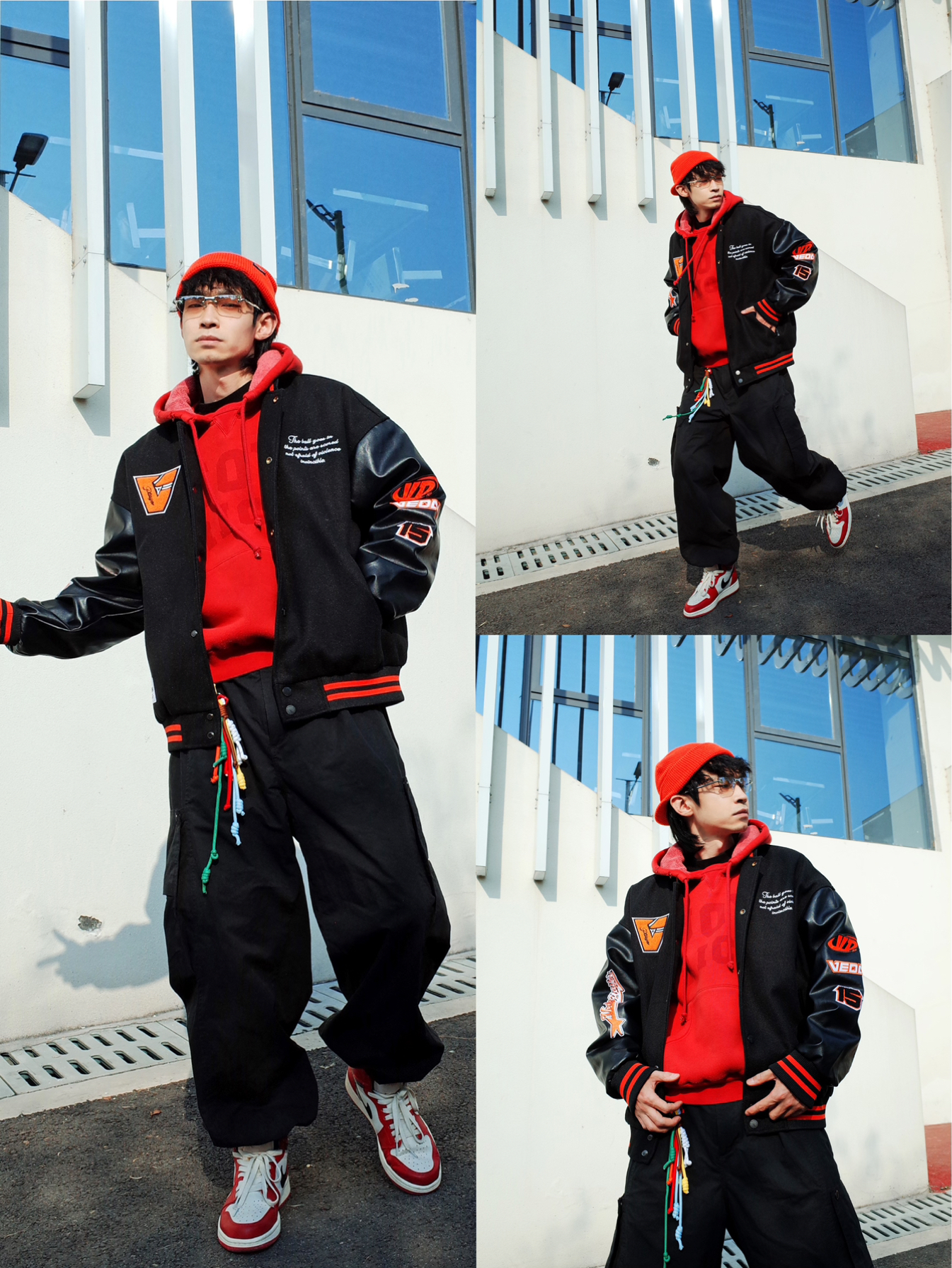 要开学啦! 返校还不知道怎么穿? 涵哥准备了6套穿搭, 赶紧来抄作业吧📝 LOOK1⃣️ 以蓝色为主基调的街头穿搭 LOOK2⃣️ 红黑撞色的韩系rapper穿搭 LOOK3⃣️ 清新亮丽的牛油果男孩 LOOK4⃣️ 白衬衫配机车服的狂野男孩 LOOK5⃣️ 做旧和拼接的碰撞,拿捏复古时髦感 LOOK6⃣️ 经典的红黑撞色,不变的棒球服叠卫衣 6套风格迥异的搭配造型,有你心仪的款吗? 可以在评...