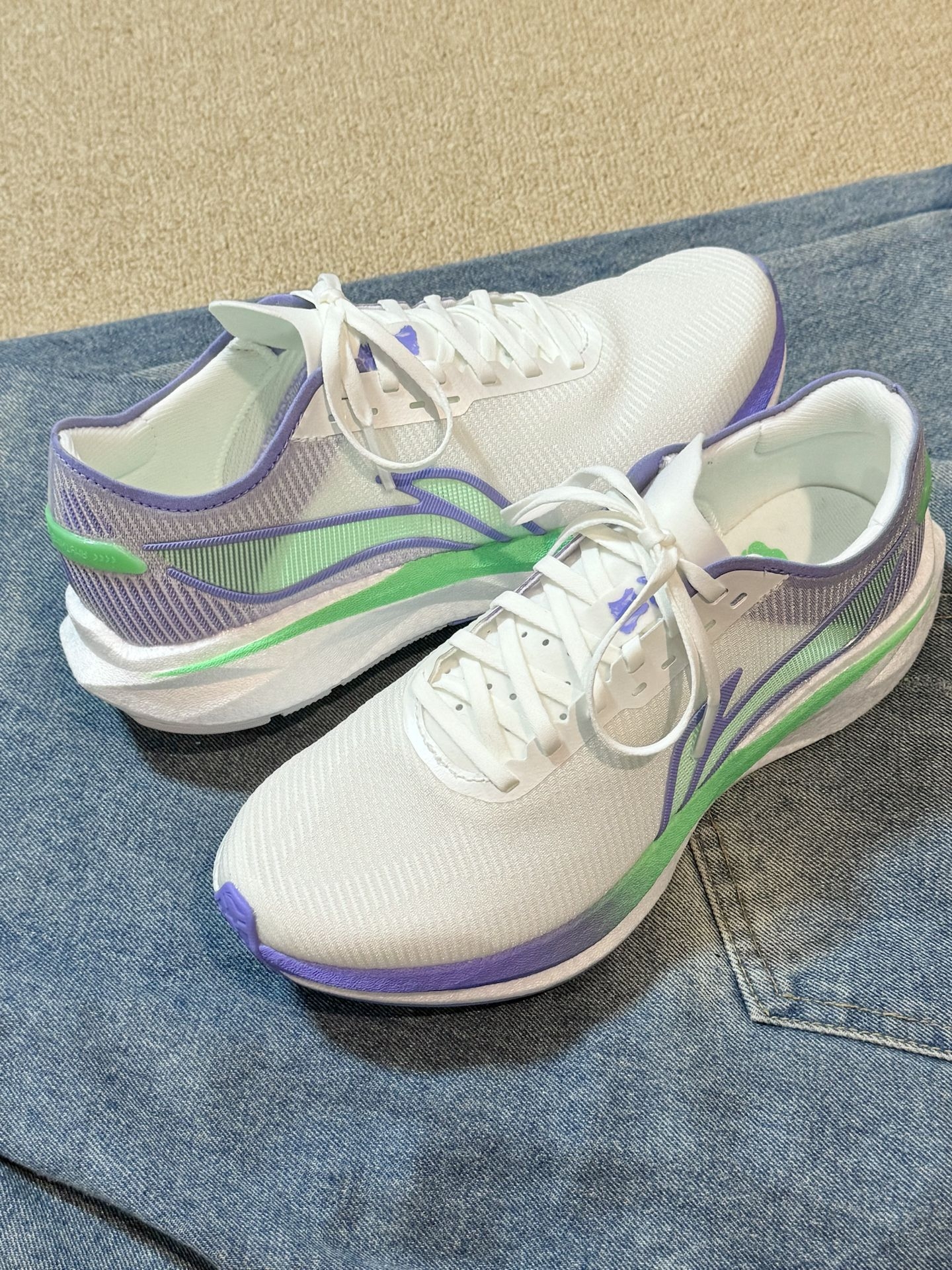 发现一双李宁跑鞋!奶油香芋紫配色好耐看!!|||这双追风跑鞋我为你着迷了诶 体考有这双算是有着落了~ 采用全掌䨻中底科技 上脚回弹性挺OK滴 大底使用SGU科技 外地也hin防滑 抓地力也很在线 日常穿或者日常跑步都可以穿! 这下子算是选对鞋了~ #李宁追风 #李宁追风Pro新配色 #体考体测就靠这双鞋了 #国产跑鞋科技 #陪我跑步的那双鞋