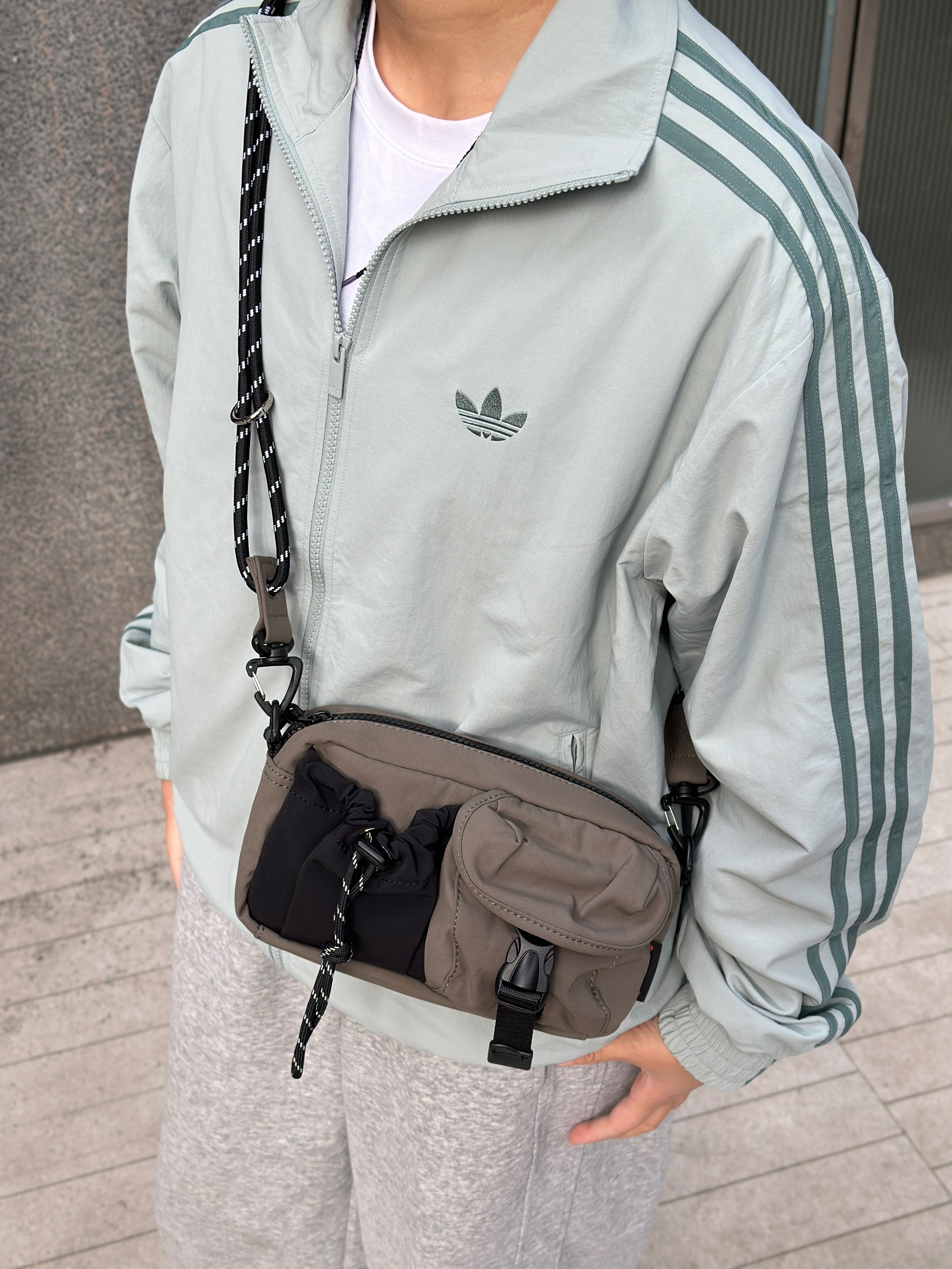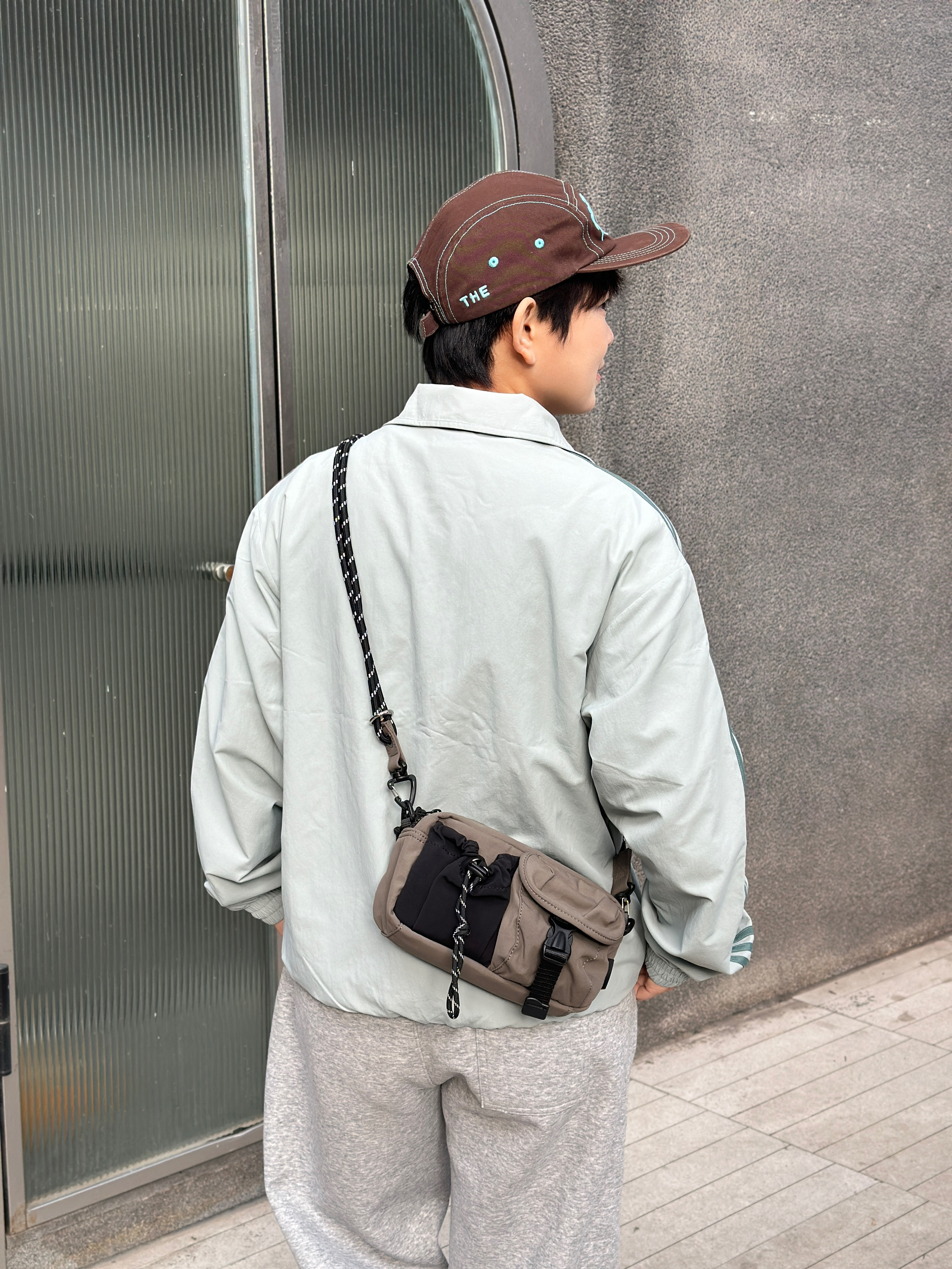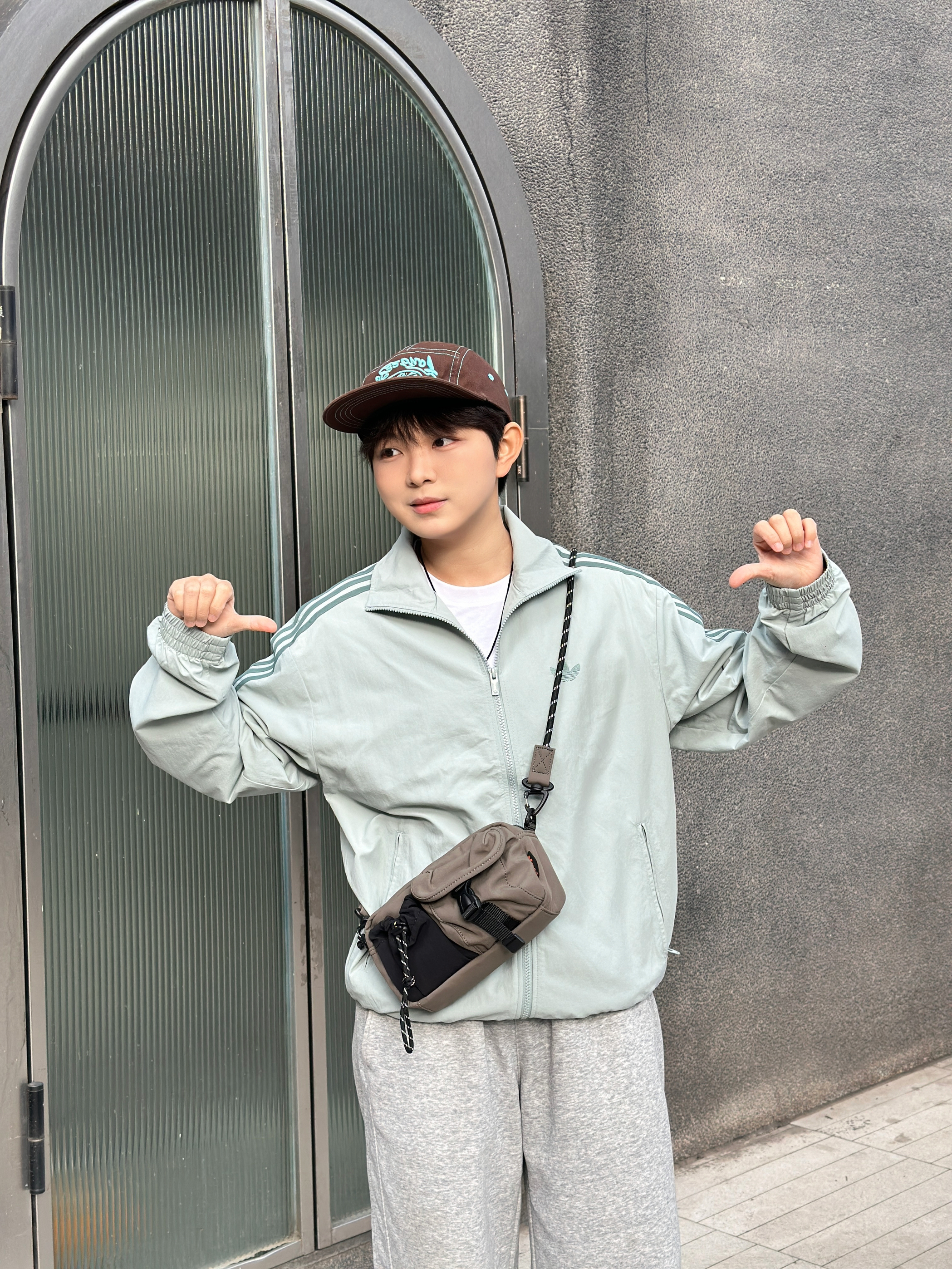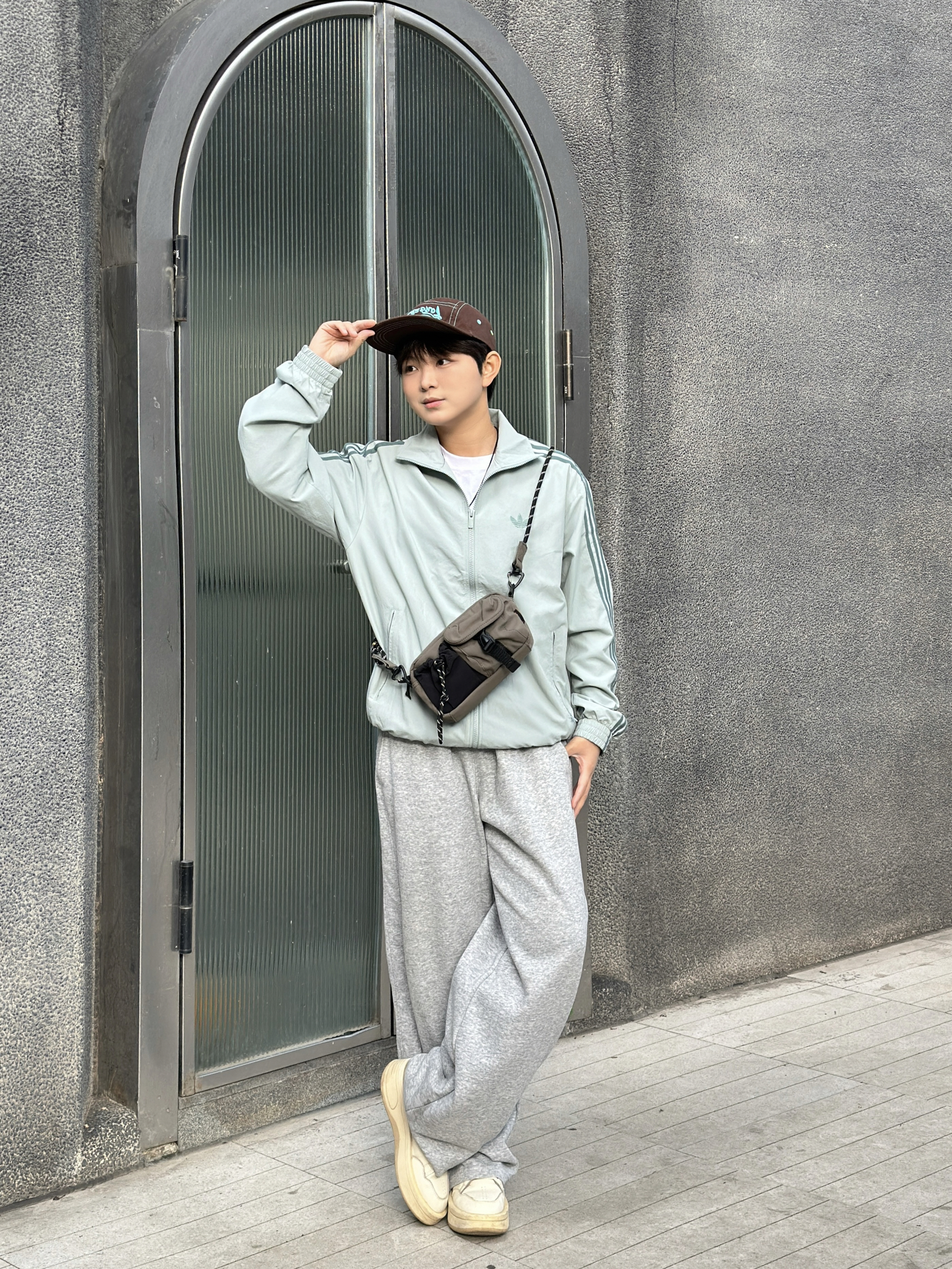 今天是把舒适感焊在身上的一天~ • 浅灰三杠外套:自带松弛感,随便搭都不出错 • 灰卫裤:软fufu的,走路都带风 • 棕蓝棒球帽:点睛之笔,复古感拉满 • 机能小挎包:装下手机和钥匙,出门超轻便 整体就是那种“随便穿穿但很好看”的感觉,适合上课、逛街、citywalk,主打一个自在随性✨