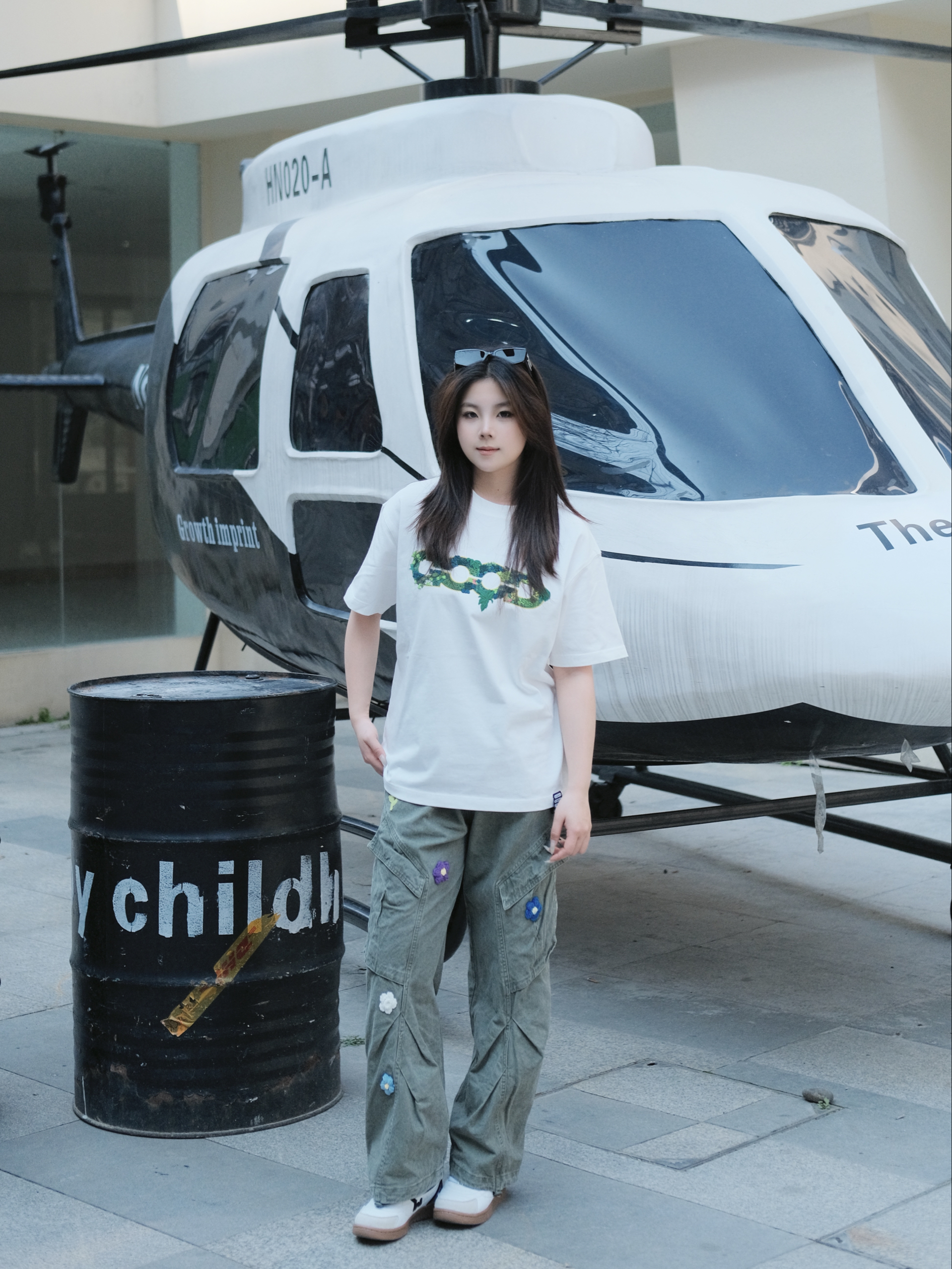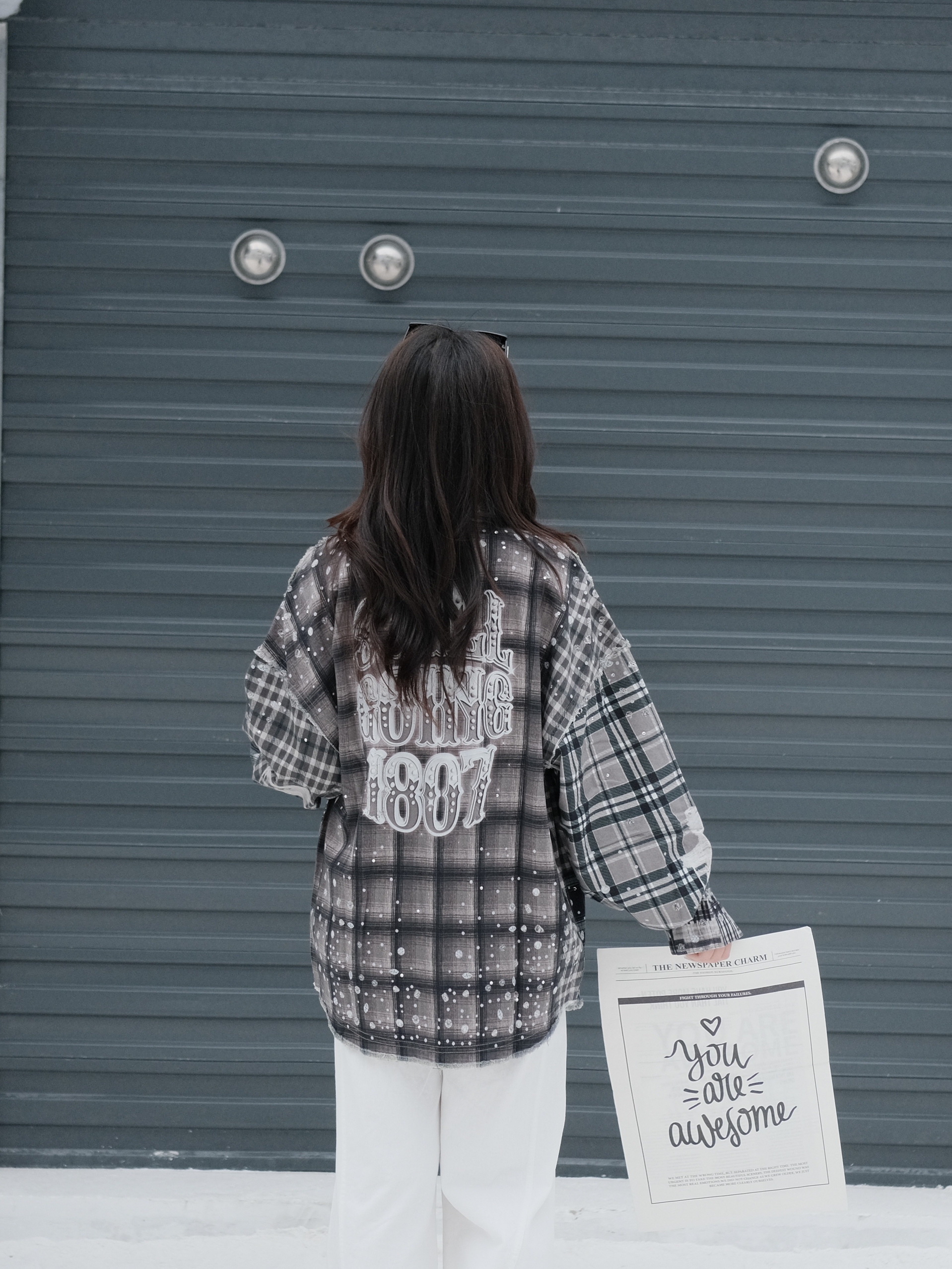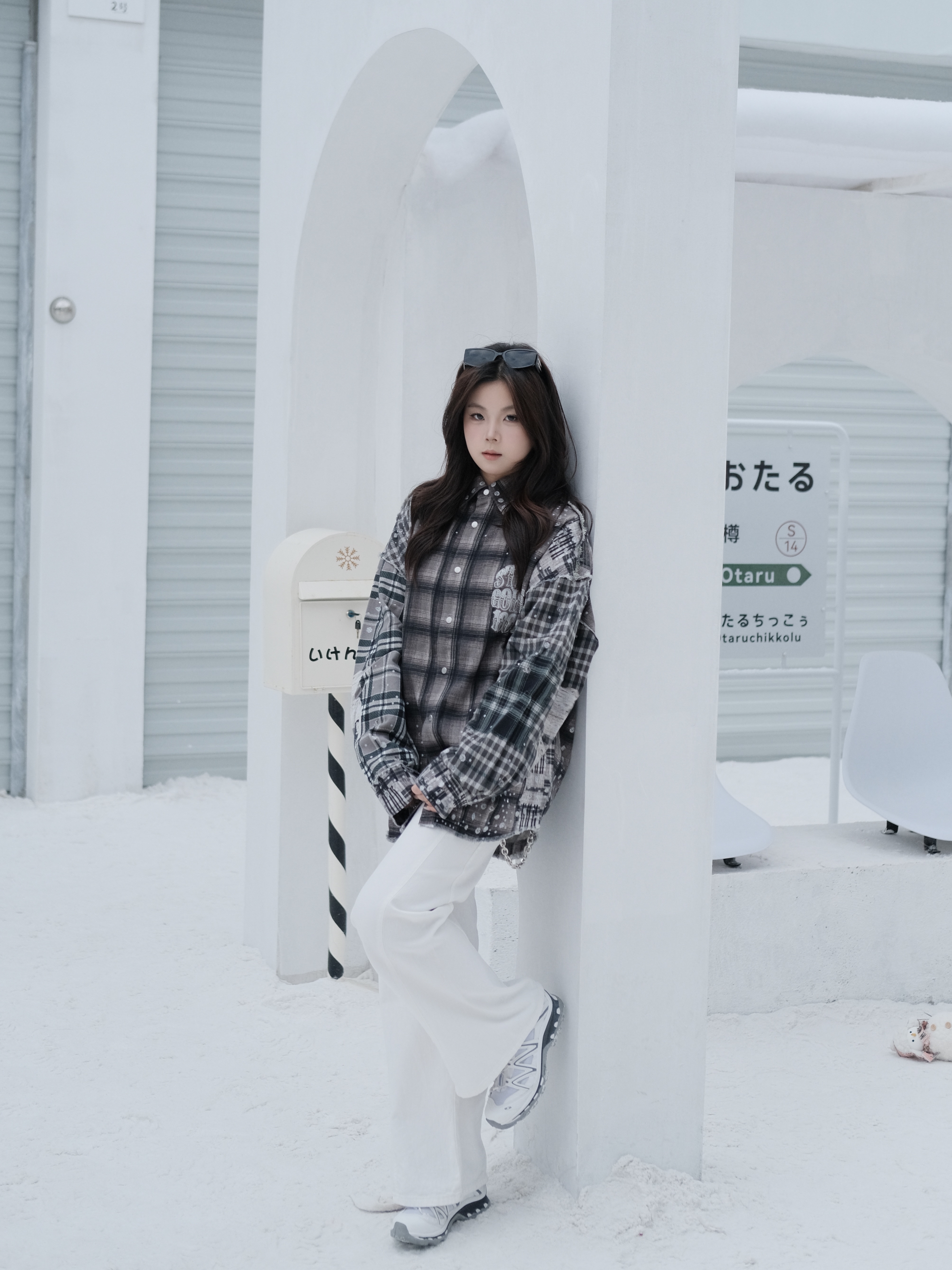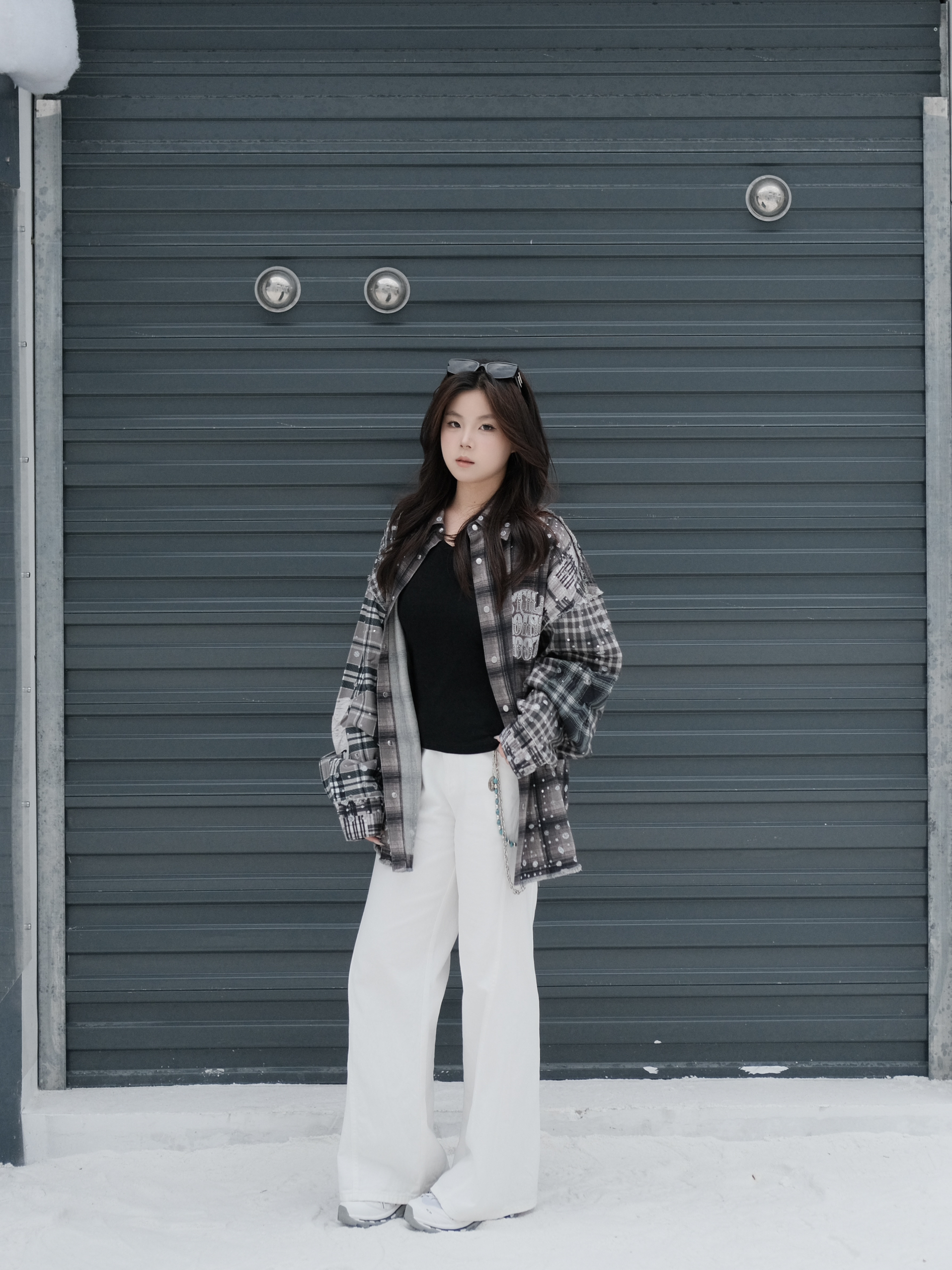 没想到能把施华洛世奇水晶穿在身上 和拼接黑格子搭出不一样的感觉 背后还有大logo 很有美式街头味 春秋出街很不错