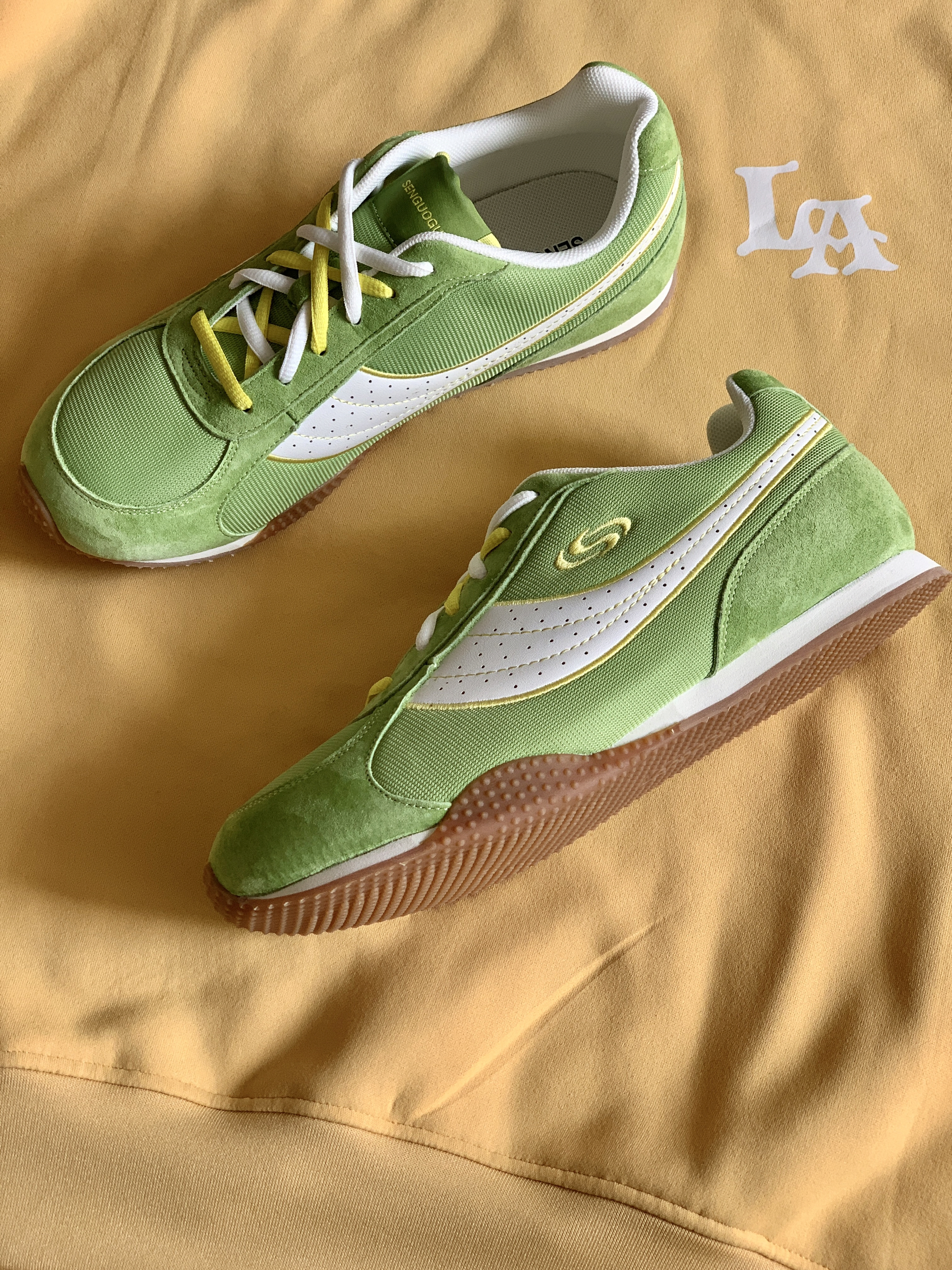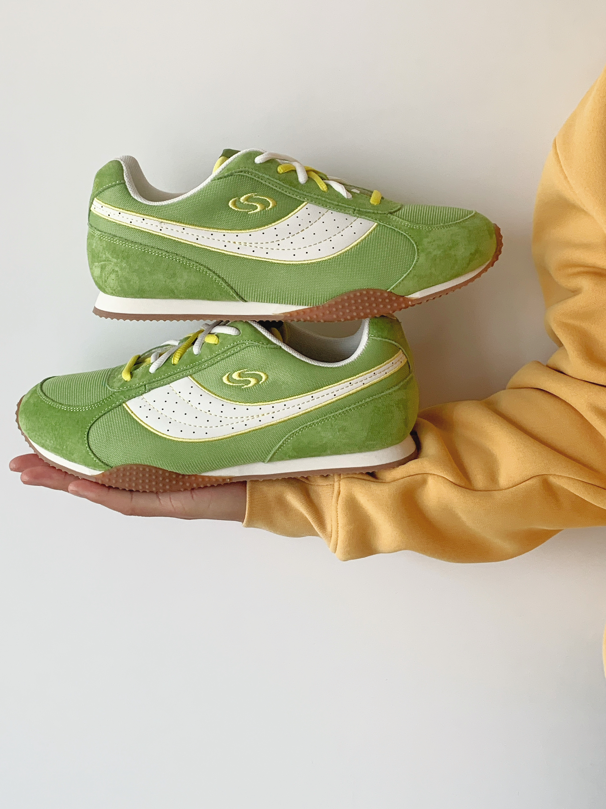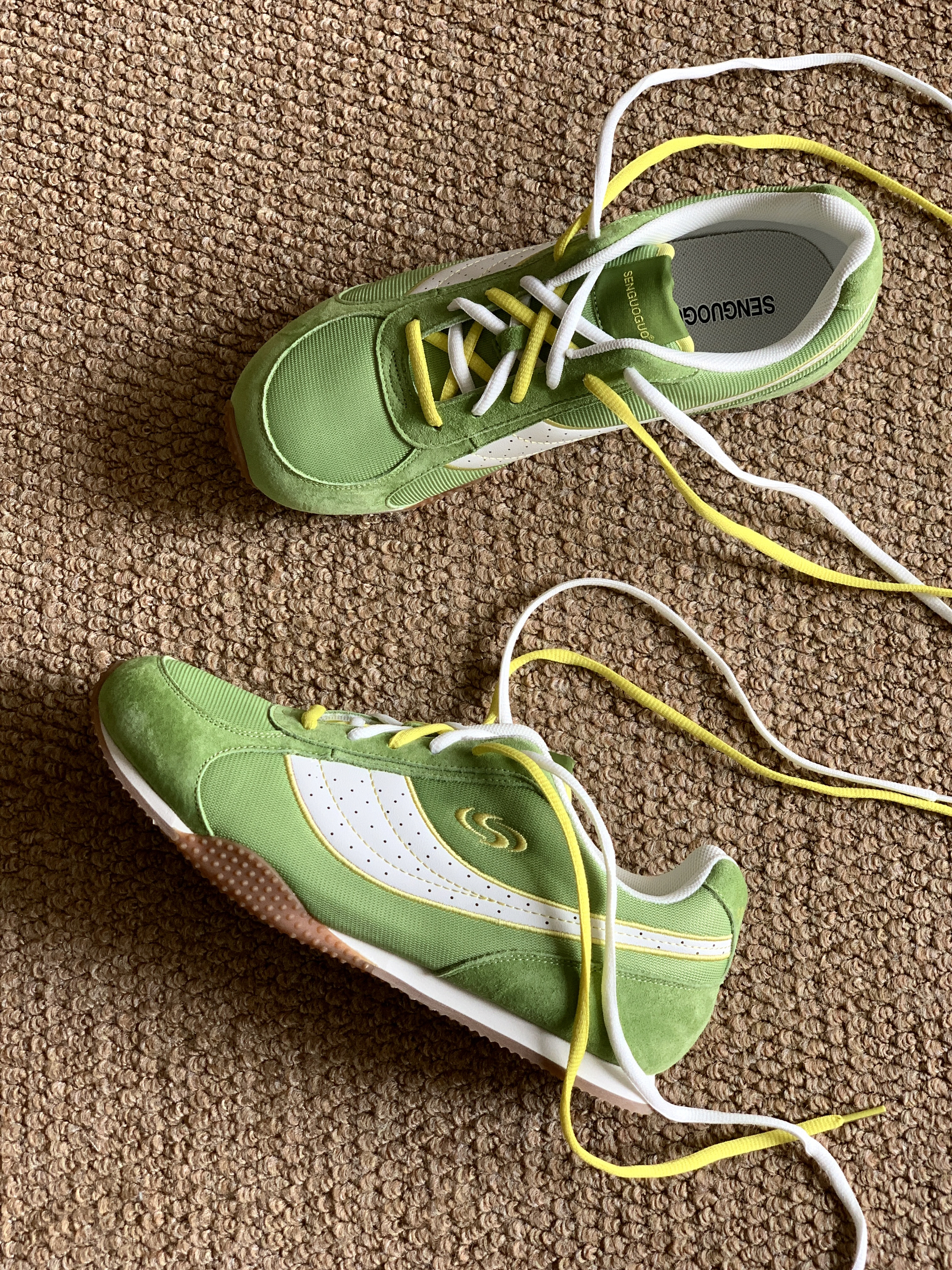 🍃 春天疯狂想穿绿色鞋子 感觉上脚就很有活力的样子 🍃颜值: 清新的牛油果绿 搭上黄色鞋带元气感十足 🍃细节: 这个双鞋带的设计还是蛮不错的 白色跟黄色跟鞋面的配色呼应起来 🍃脚感&尺码: 蛮舒服的通勤穿足够了 正码不偏 我42穿42刚好 🍃搭配: 鞋子不基础 裤子就基础点吧 搭配一些暗色系的裤子就可以了 大胆的也可以选择撞色裤子