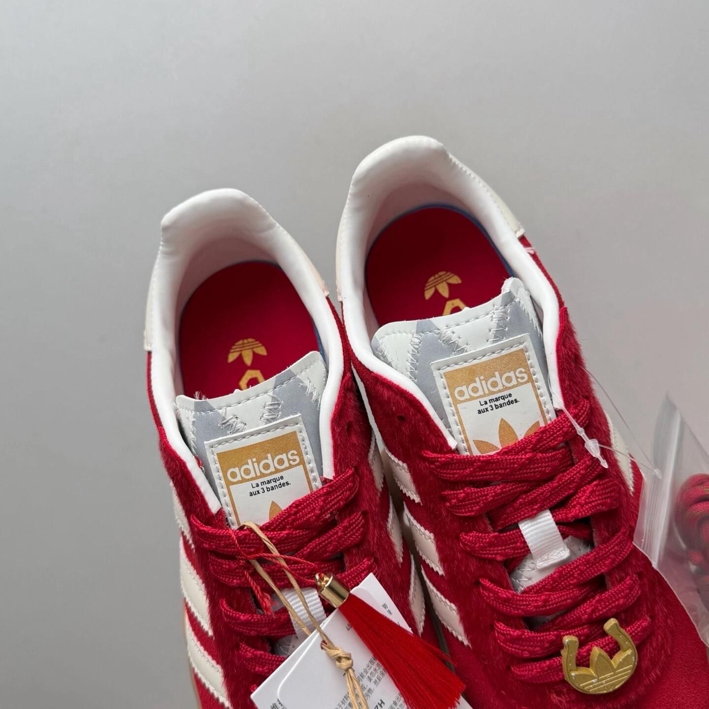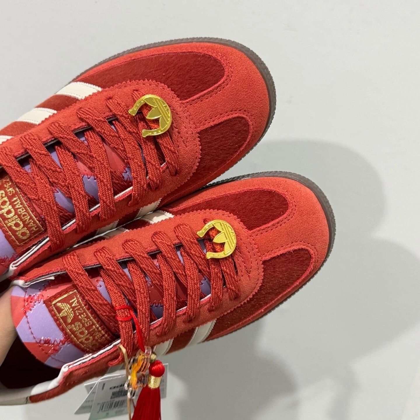 阿迪马年限定款!有无喜欢的板鞋! 阿迪每年的限定都会不属于NIKE,多数为板鞋德训桑巴为经典款!接下来依次点评一下个人意见 adidas originals HANDBALL SPEZIAL CNY新年款 马年限定 经典运动 德训鞋 男女同款 红色 点评:作为红色基础款在原有的红色上增加了毛皮布料的色差和配件,鞋舌也会对应的根据没年的限定做出设计图案,作为百搭款型在女性穿搭很出片,学生已经班...