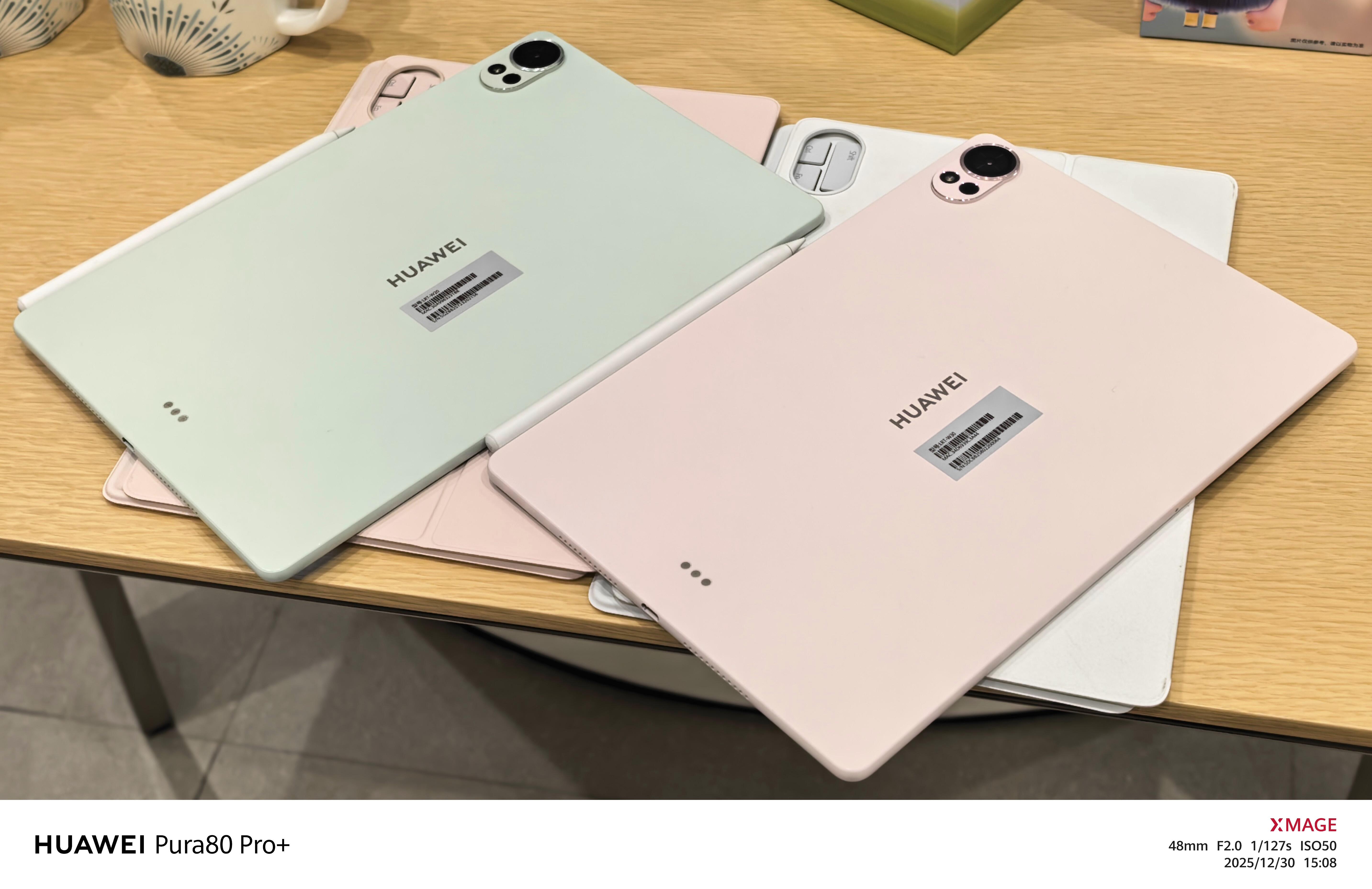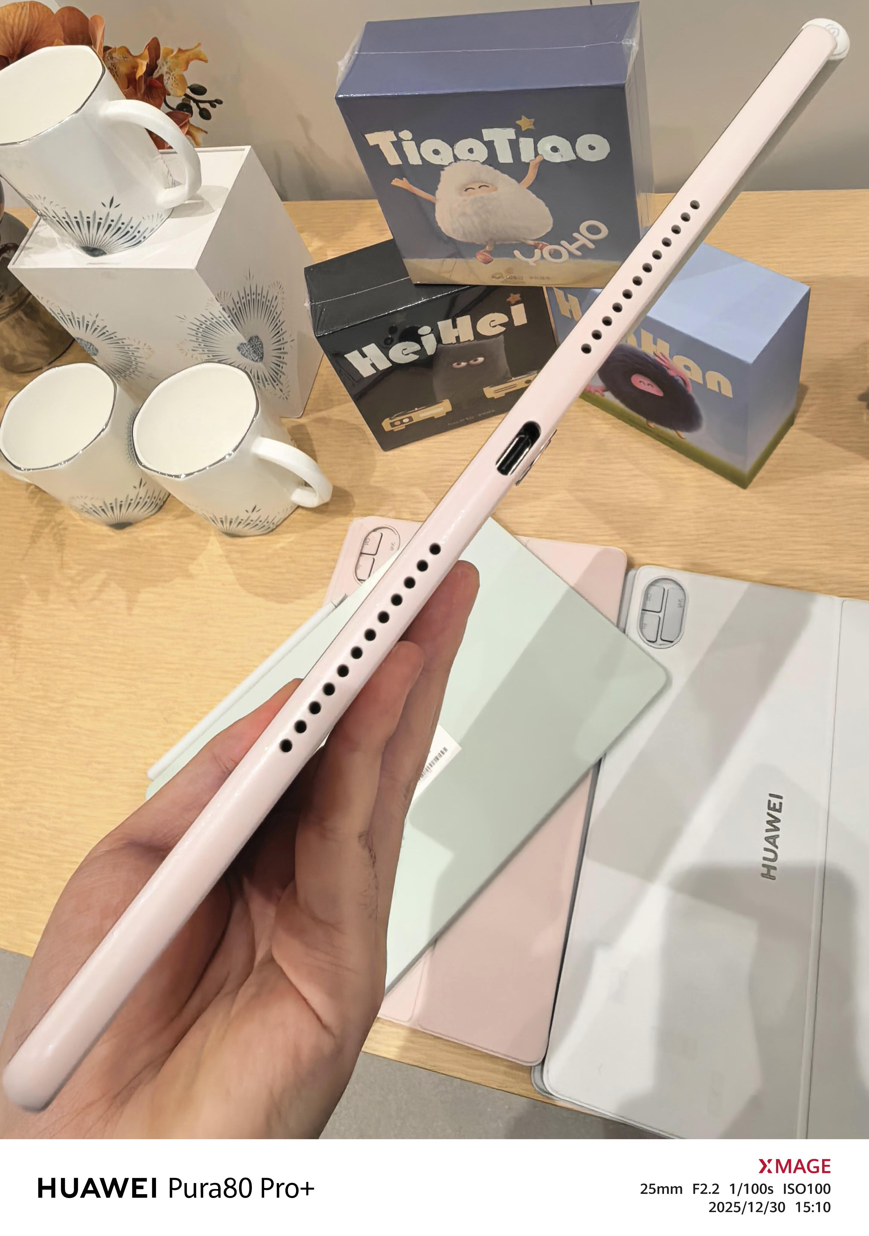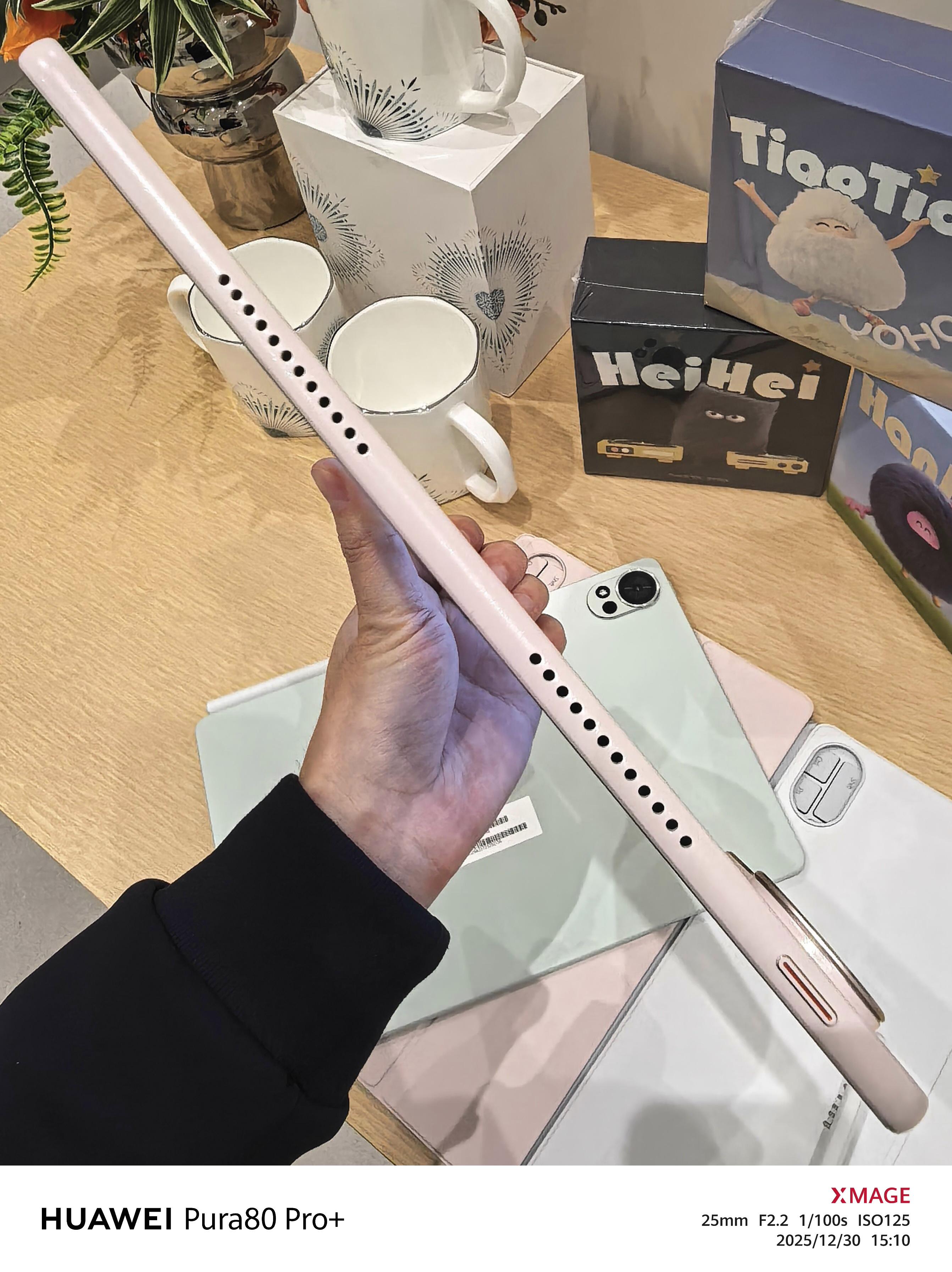 华为MatePad Air 2025款在8月中旬发布的一款平板,采用全金属无缝机身设计,厚度仅5.9mm,重量555g,单手握持轻松自如,放入通勤包毫无压力。机身融入天然云母粉,结合幻彩珠光工艺,打造出樱语粉、草木绿等四种潮流配色,在光线变化下呈现随角异色的渐变效果,触感温润细腻,有效抗手汗。樱语粉版本在阳光下泛出柔和珠光,既迎合年轻群体的时尚品味,又能在职场环境中展现精致优雅。整体设计兼顾轻薄与美学,成为移动办公的理想伴侣。