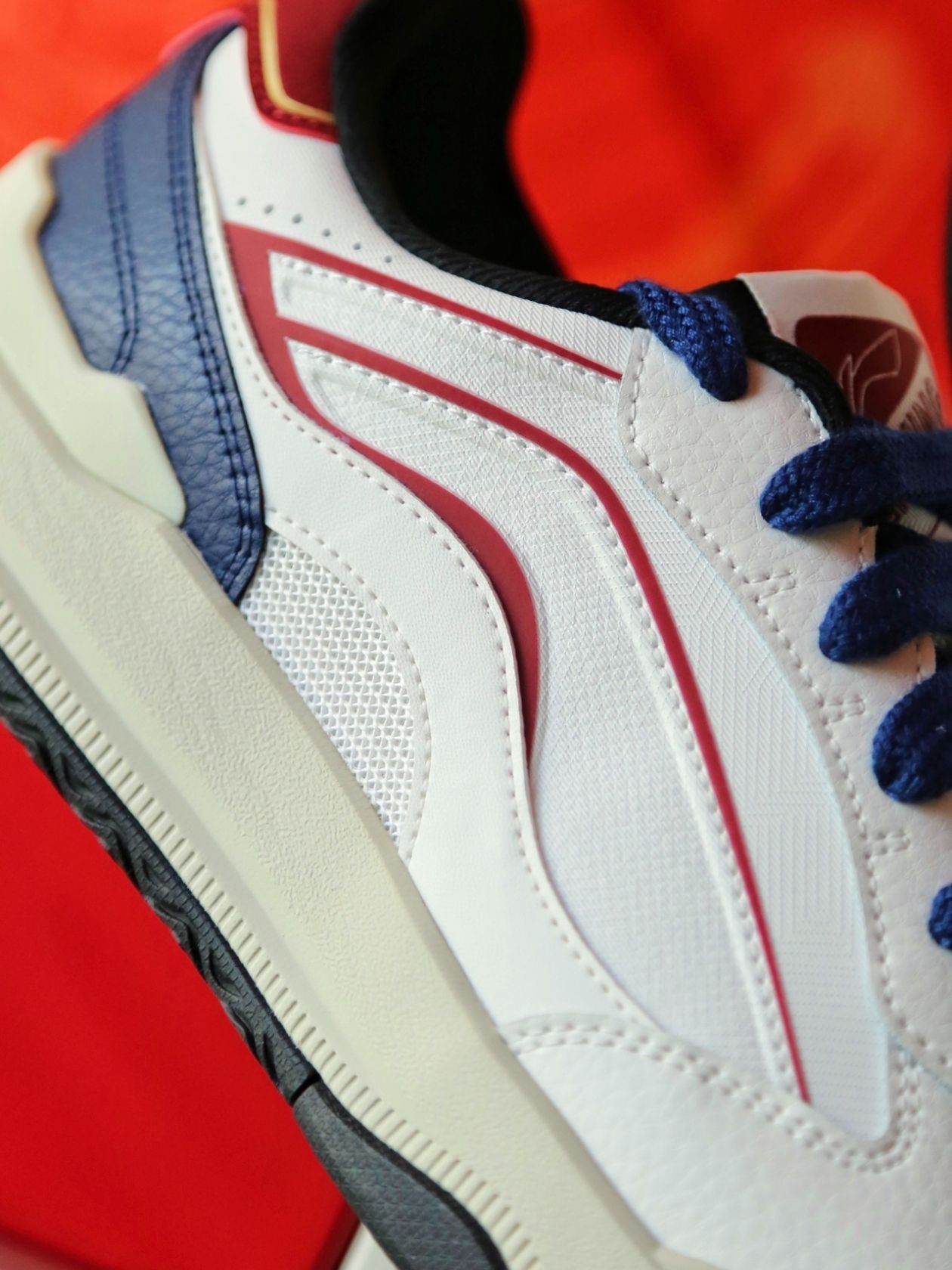 这双李宁月璃板鞋真不错! 白蓝配色很清爽, 厚底增高效果明显,穿着感觉立马高了几公分。 鞋底防滑又耐磨,走路很稳当,而且透气性挺好的,春天穿到现在都不闷脚。 圆头设计对脚宽的人很友好,搭配牛仔裤或者休闲裤都特别帅。