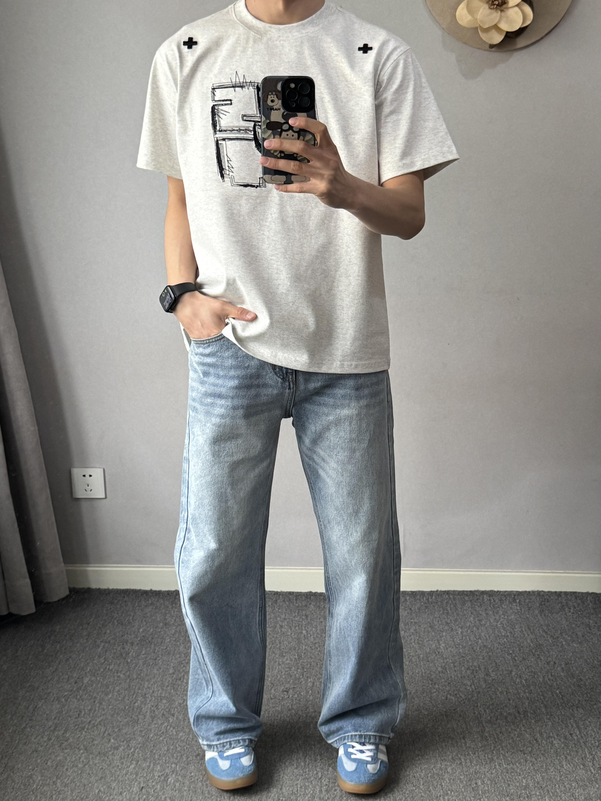本篇笔记关联了Jeanswest/真维斯 垂感直筒透气牛仔裤 基础色、NSTNEW START 涂鸦风重磅刺绣短袖T恤 NA32500 白灰等商品,为用户提供真实的使用体验和购买参考。
