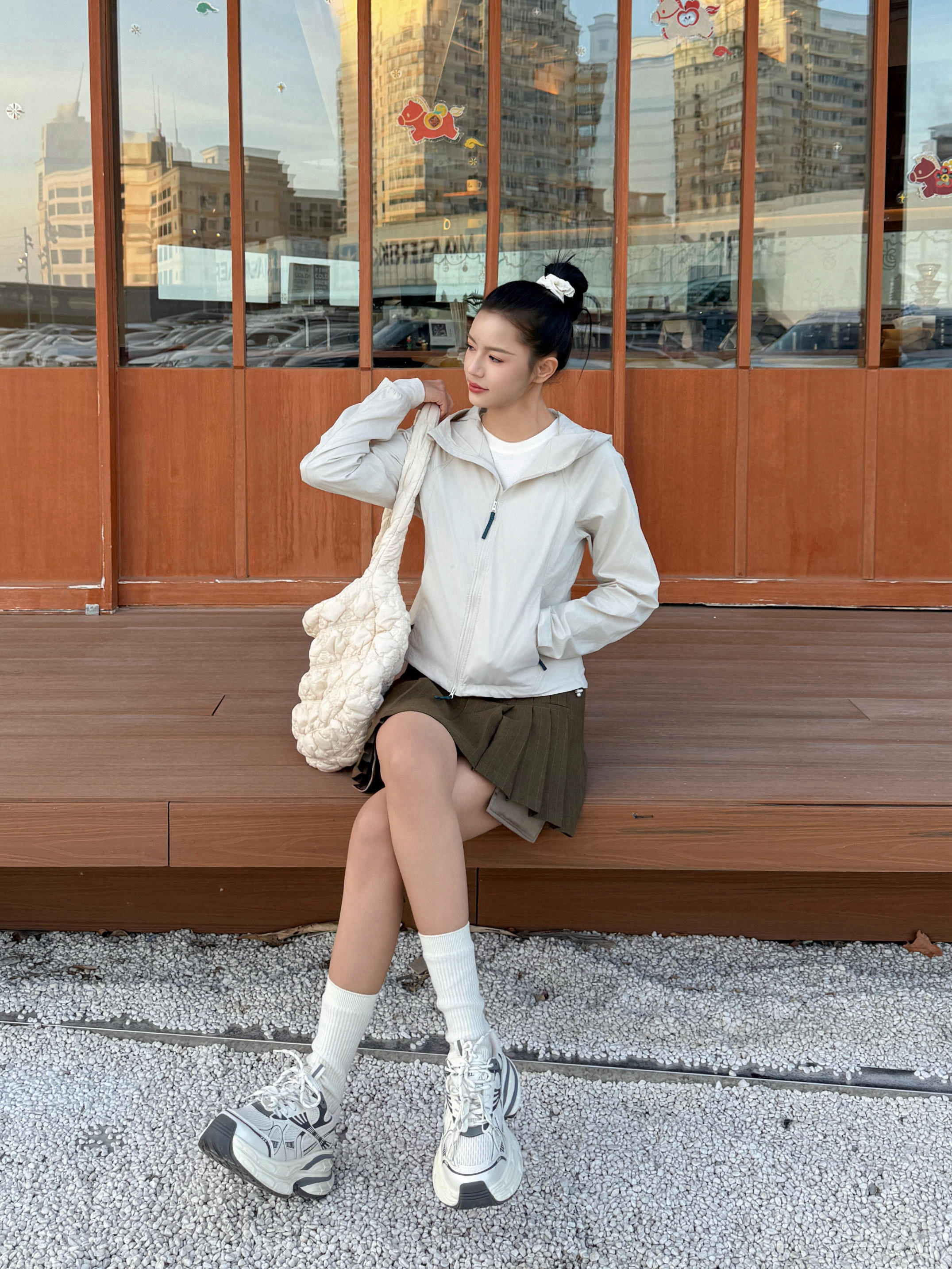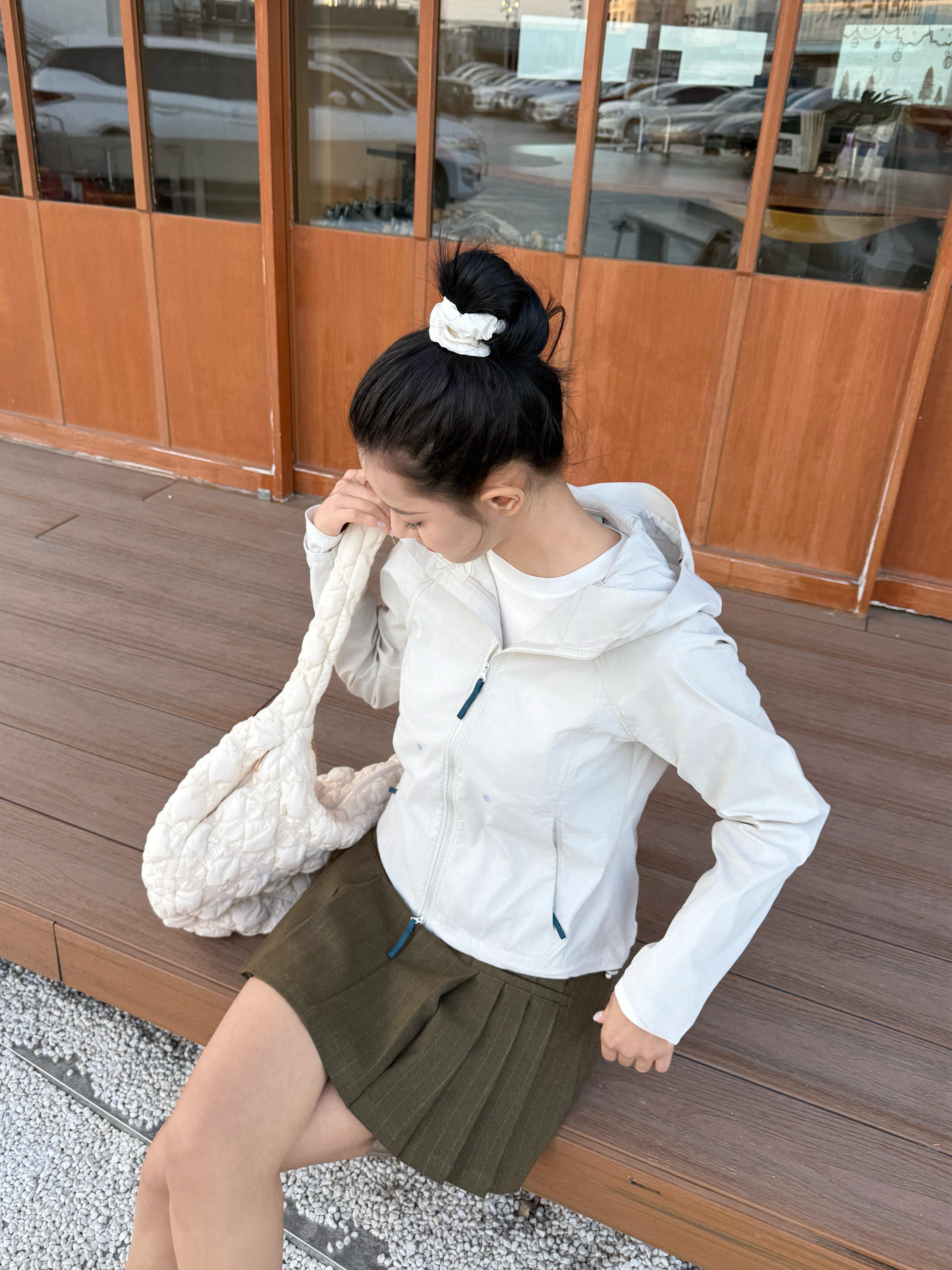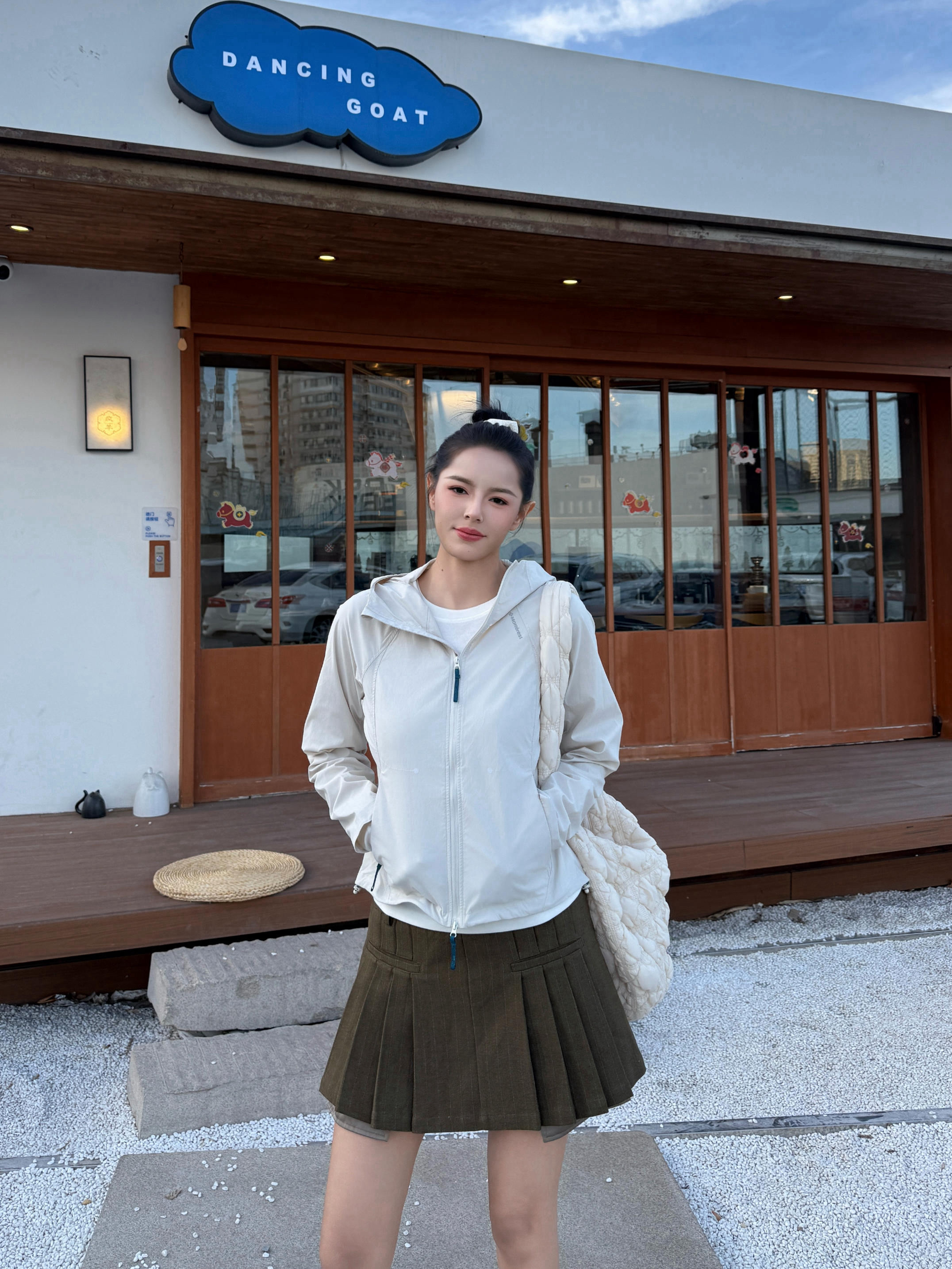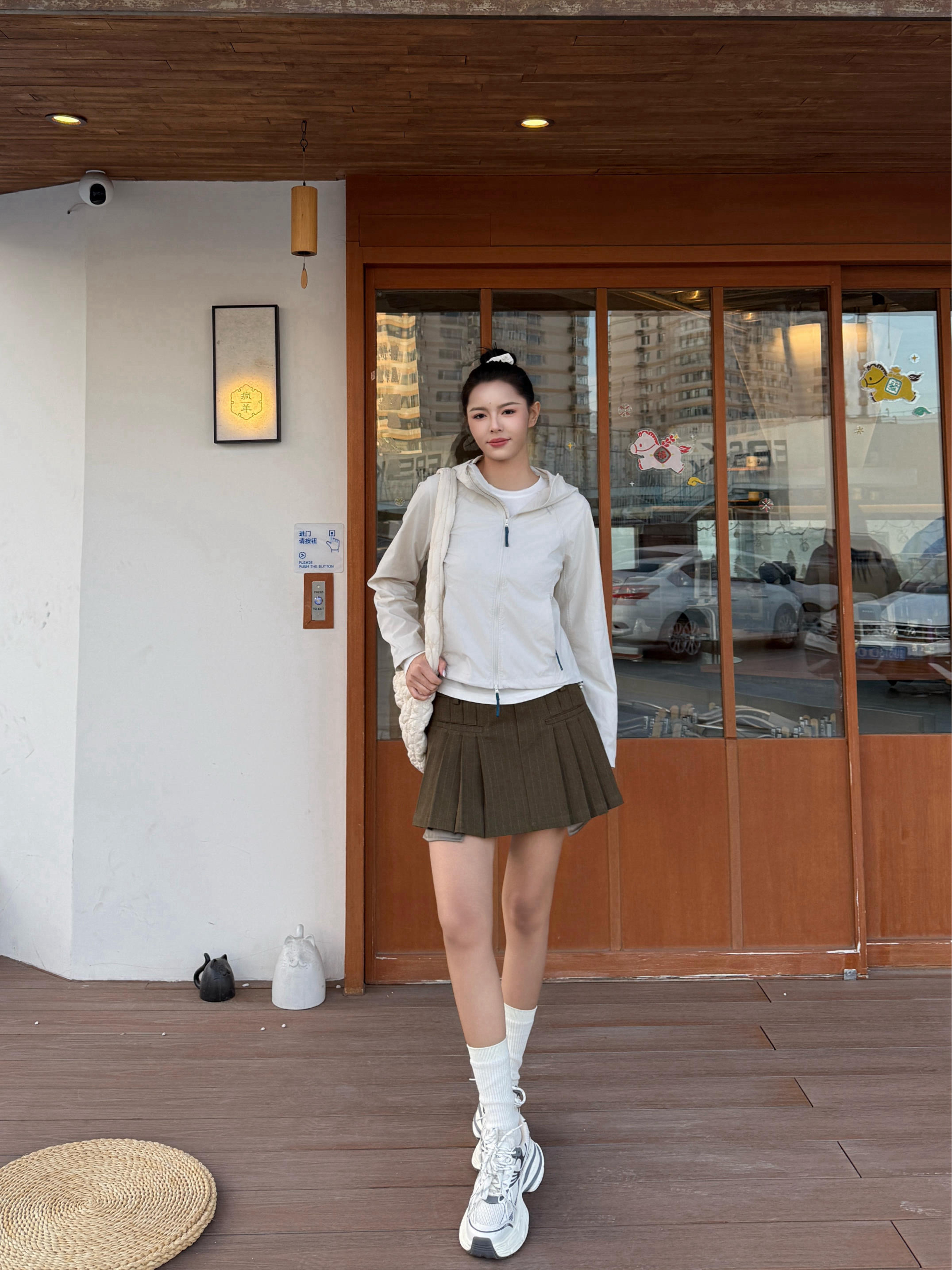 春日韩系运动风穿搭分享来喽✨ 今天出门主打一个韩系运动风🎀 穿了一件白色内搭➕修身户外运动风的外套🧥 穿着挺修饰身材,轻量适合春天穿🍃 再来一条绿色百褶裙和一双运动鞋👟 再把头发扎起来,运动风穿搭就轻松搞定啦⚾️ 尺码170/100 s