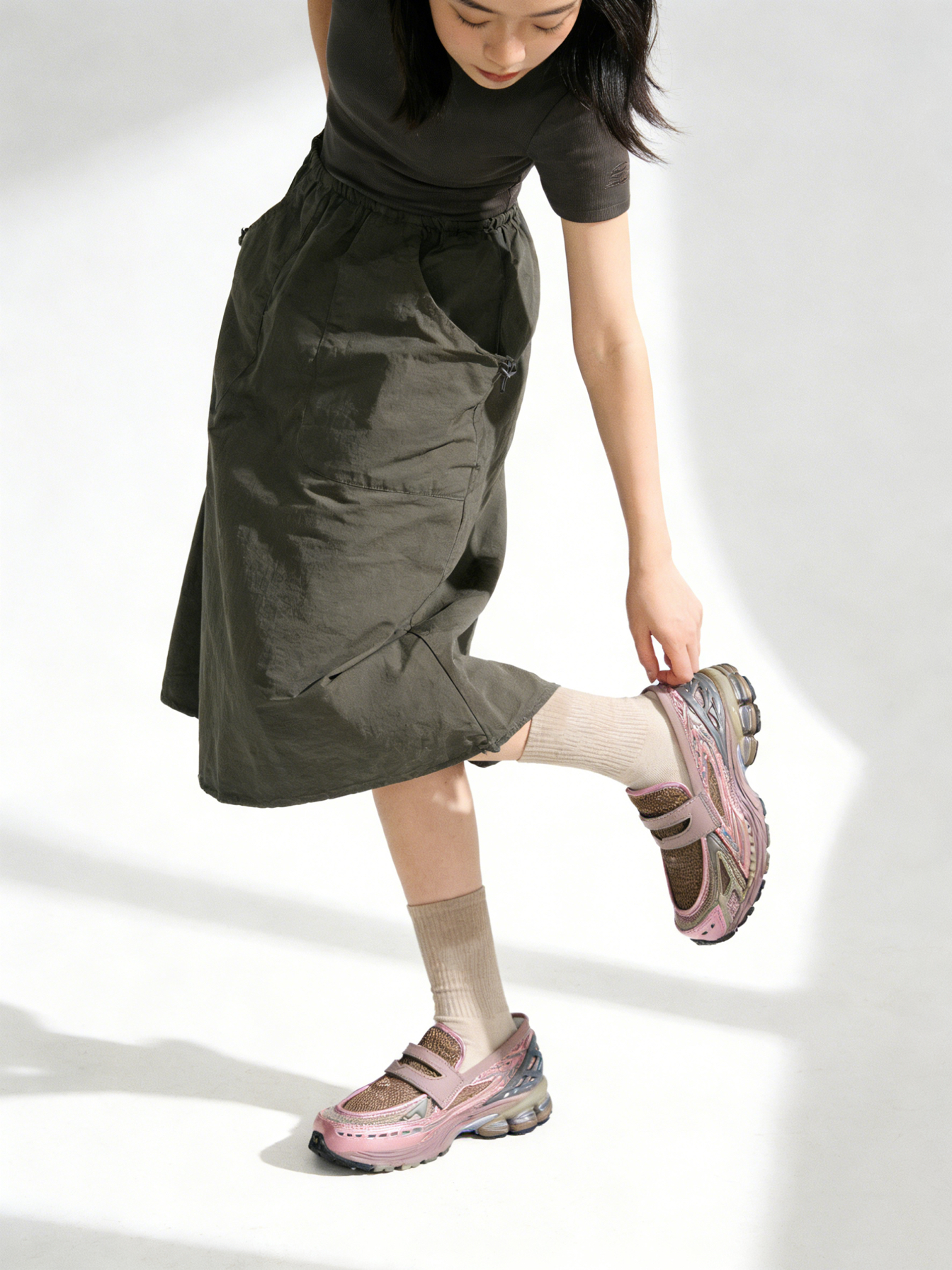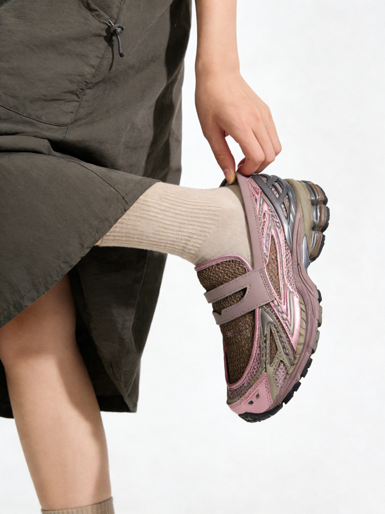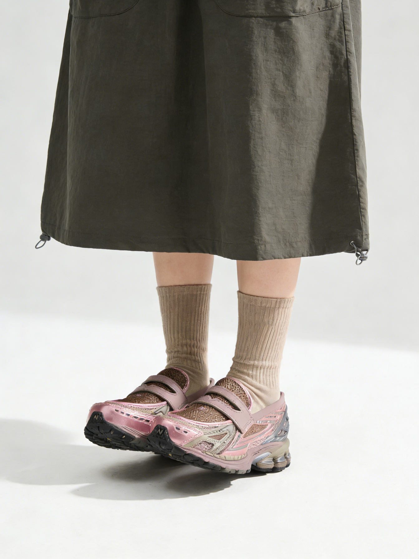 这双1906L AU(粉/Grey)入手值不值? 📍 值!当复古跑鞋撞上乐福鞋,这波“Snoafer”混血设计真的赢麻了 。粉色金属皮搭配灰色TPU笼子,既有少女感又不失机能风的硬朗 。 和1906R怎么选? 👉 如果你追求极致的包裹感和运动袜套体验,选1906R; 👉 但如果你想要一脚蹬的慵懒兼顾增高4cm的厚底,且必须保留跑鞋的软弹(搭载860v2同款ABZORB缓震),闭眼入1906L...
