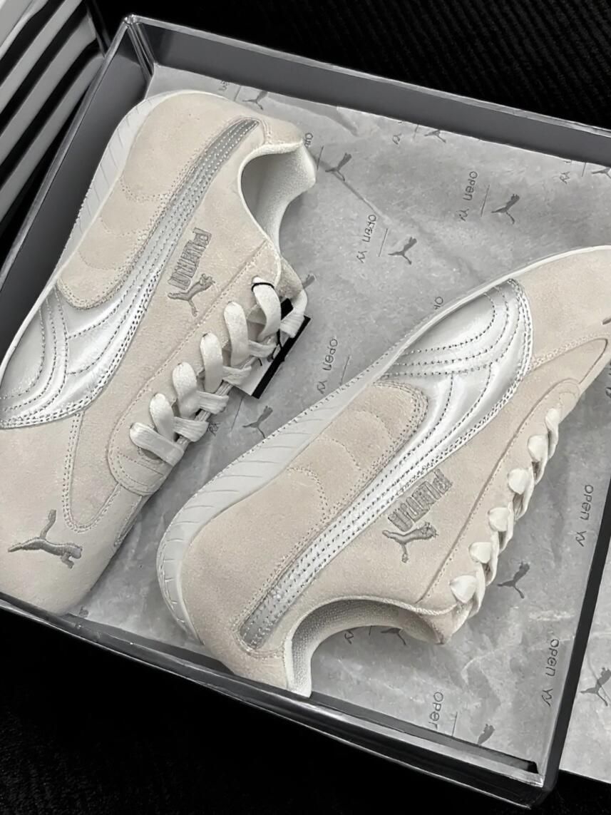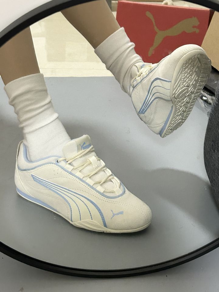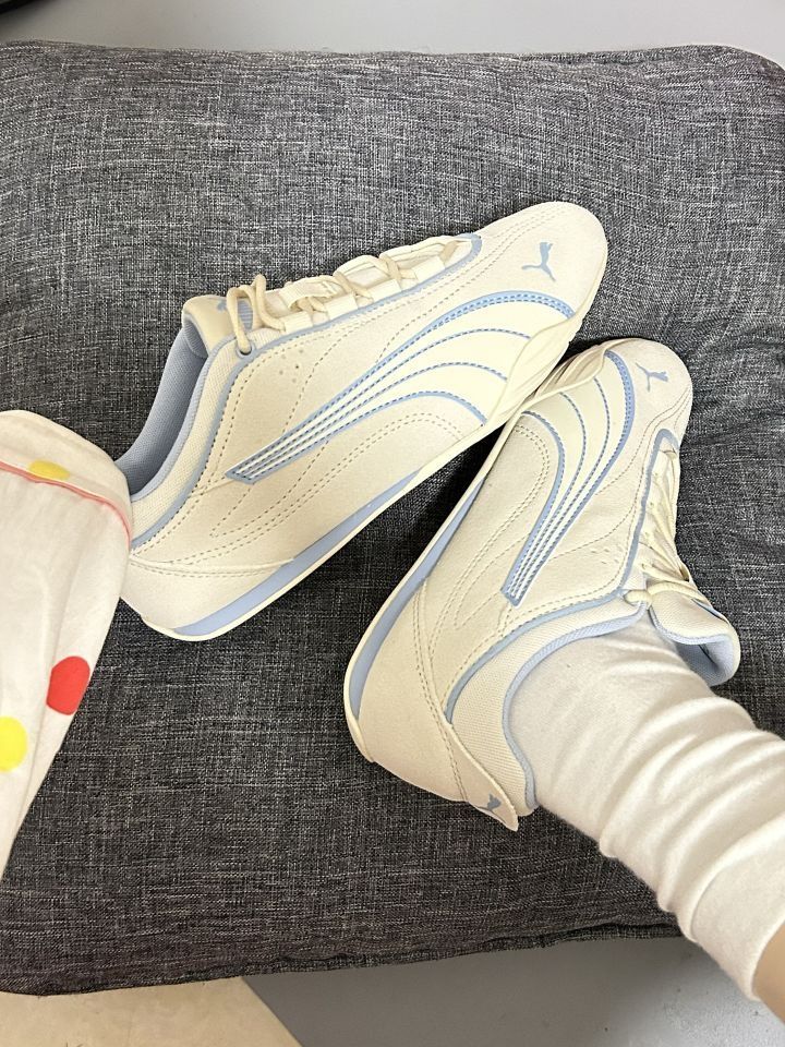 谁懂啊家人们!👟 这双Puma Speedcat真的长在我的审美点上了! 奶白+浅蓝的配色,温柔又清爽,像把海盐奶油穿在脚上💙 复古赛车鞋型+麂皮质感, 线条流畅又显脚小, 不管是配牛仔裤、运动裤还是小裙子都超绝! 上脚软乎乎的,走路也不磨脚, 日常通勤、校园穿搭、出街拍照都能打, 妥妥的春日氛围感神器,谁穿谁是清冷甜妹! 春天的第一双复古鞋,闭眼冲就对了✨
