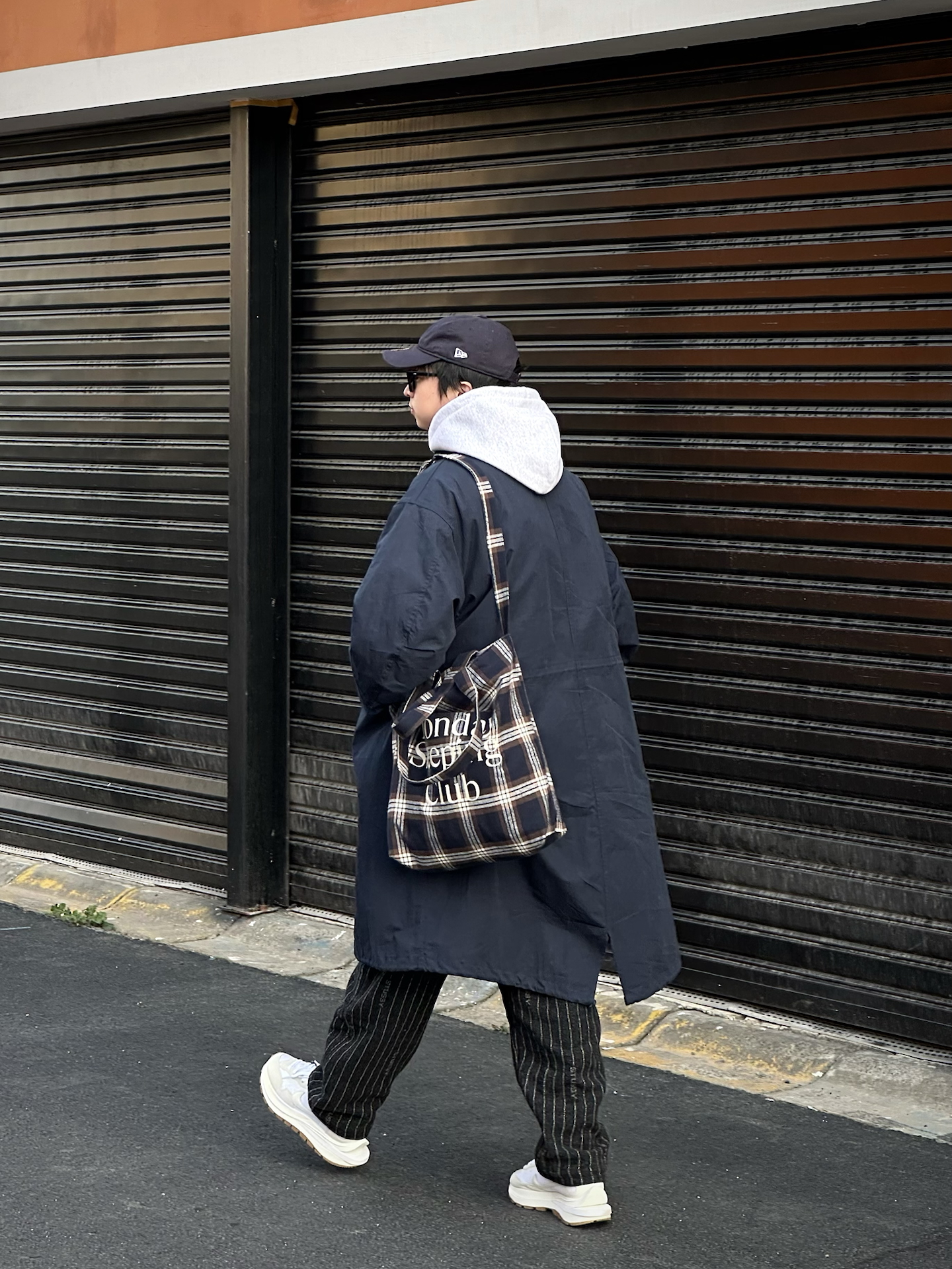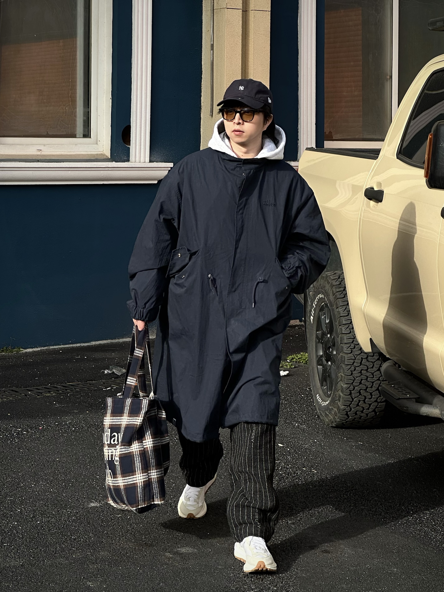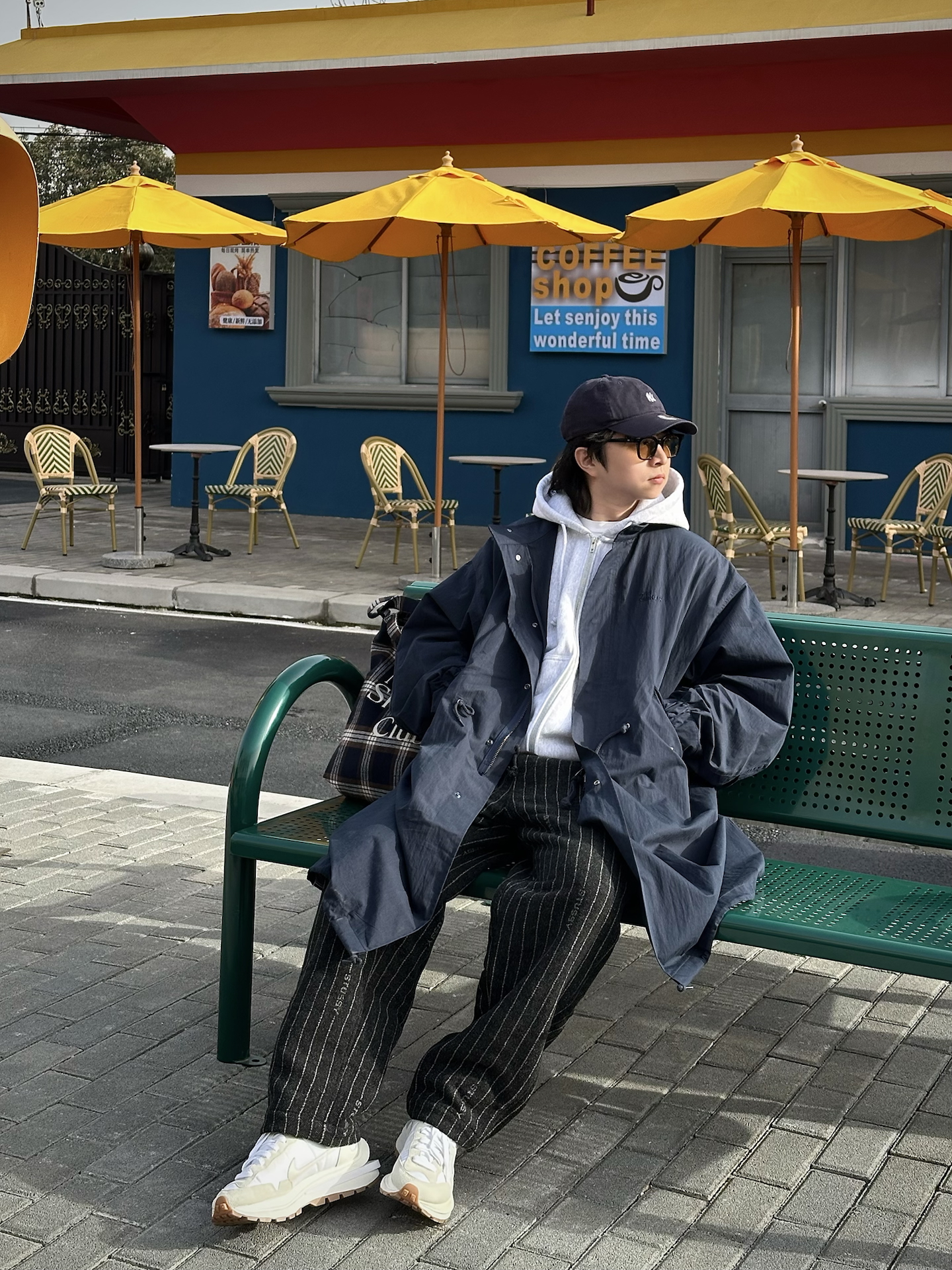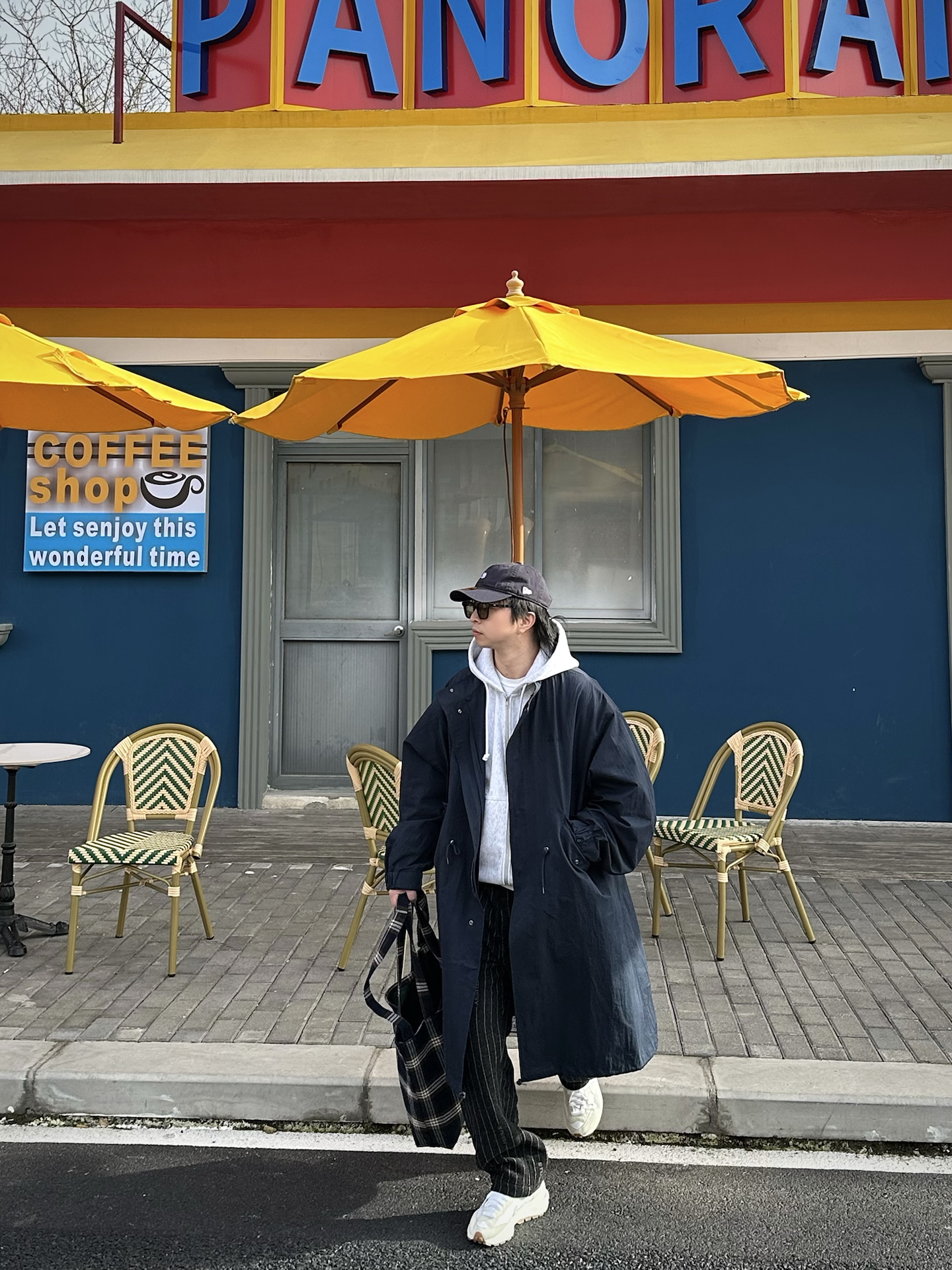 哈喽👋🏻大家好哇 这里是🪨石地夫的穿搭小日记📝 - 早春,各种叠穿都能拿捏的温度 真的是潮人zui幸福的季节🍃 今天出门这套日系叠穿就满满的少年感 - 上身 #ODDCIRKUS 的藏蓝长风衣🧥 宽松廓形自带慵懒感☑️ 走路带风真的太帅了🫡 📏尺码注意,有点偏大 本人173,70kg上身L效果偏大 内搭选了浅灰连帽卫衣 浅灰+藏蓝的配色组合,高级感直接max~✨ 下装是nike x stussy...