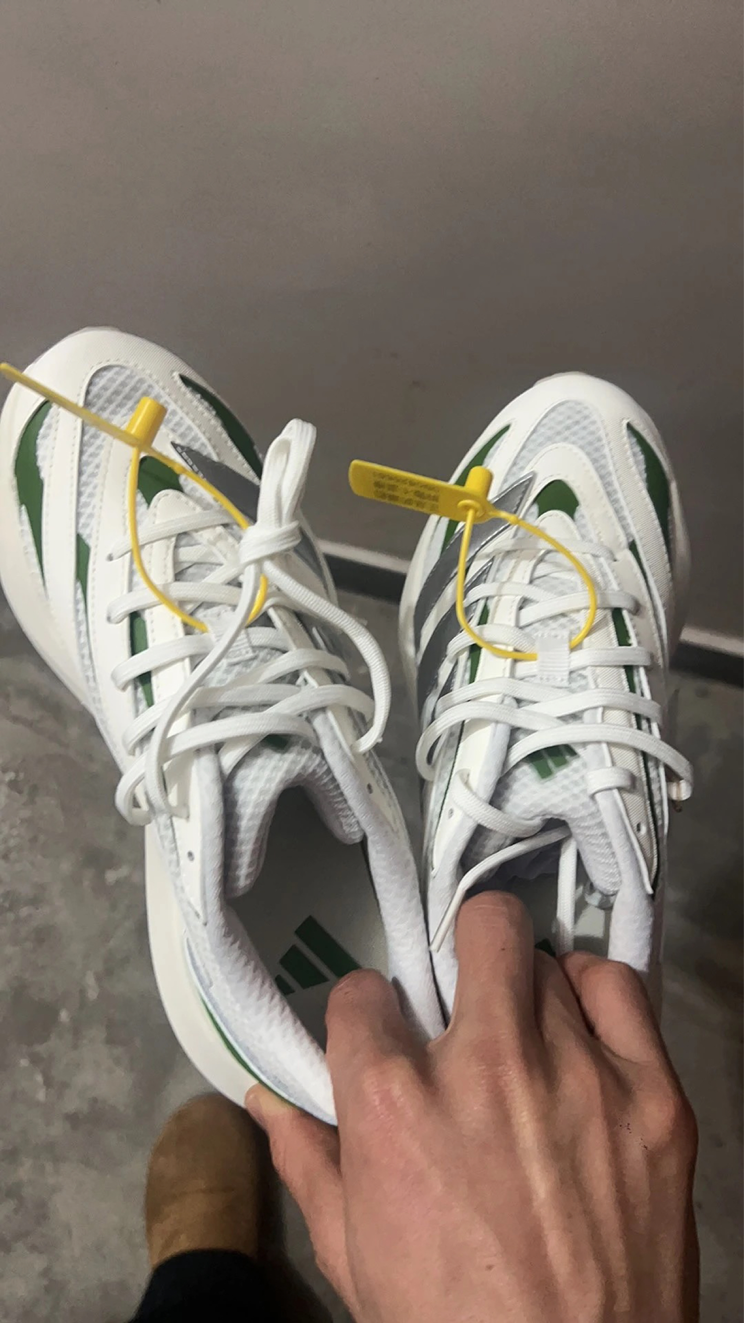 百补入手的一双阿迪跑鞋👟,主要是被这个颜值给迷住了,侧面鞋型凌厉,流线感很好 整体白绿的搭配也很清爽拿着手里也不重是个很好的日常小跑穿,拿来穿搭也不违和,通勤跑步一把抓!!