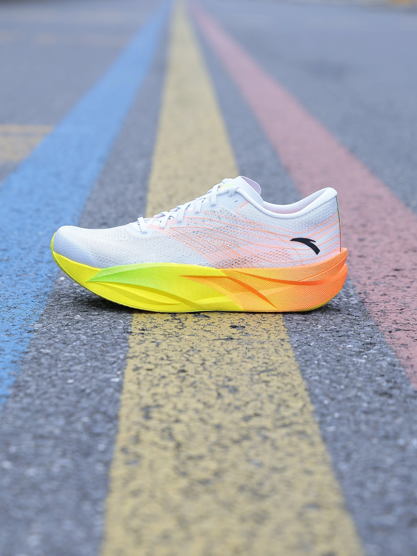 这双安踏C2026.0真的让人一眼心动!新配色白橙黄的渐变十分有活力,像清晨第一缕阳光洒在跑道上,让人忍不住想立刻穿上它去奔跑。上脚后,那种轻盈的脚感简直绝了,每一步都像是踩在云端,回弹力十足又不失稳定。无论是日常训练还是比赛,它都能给你满满的信心和动力,仿佛在说:"去吧,去创造属于你的PB!" #新鞋零时差 #安踏c202六代 #体训就选安踏