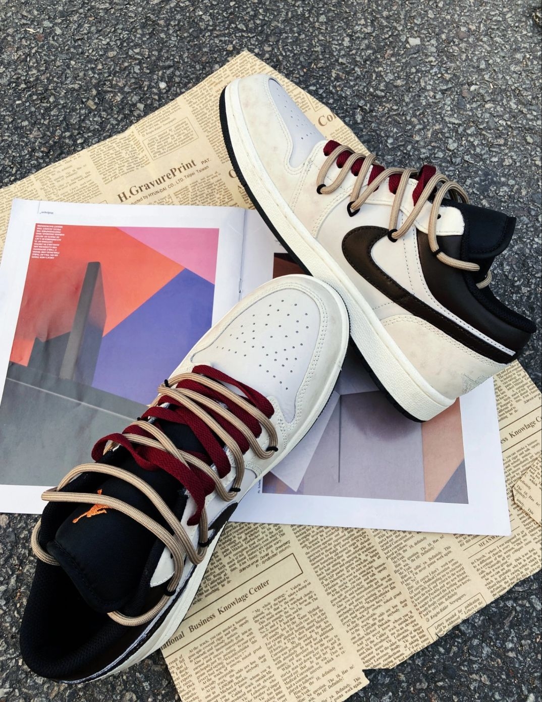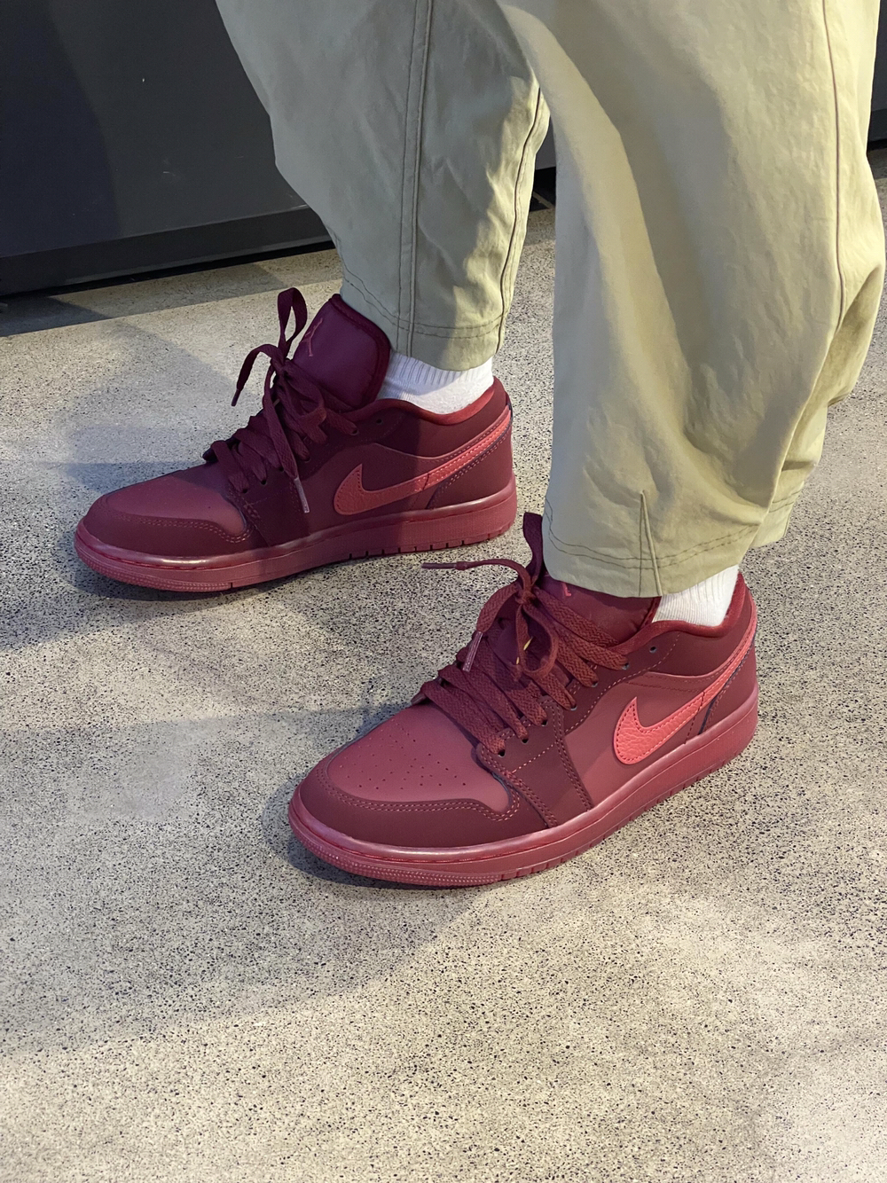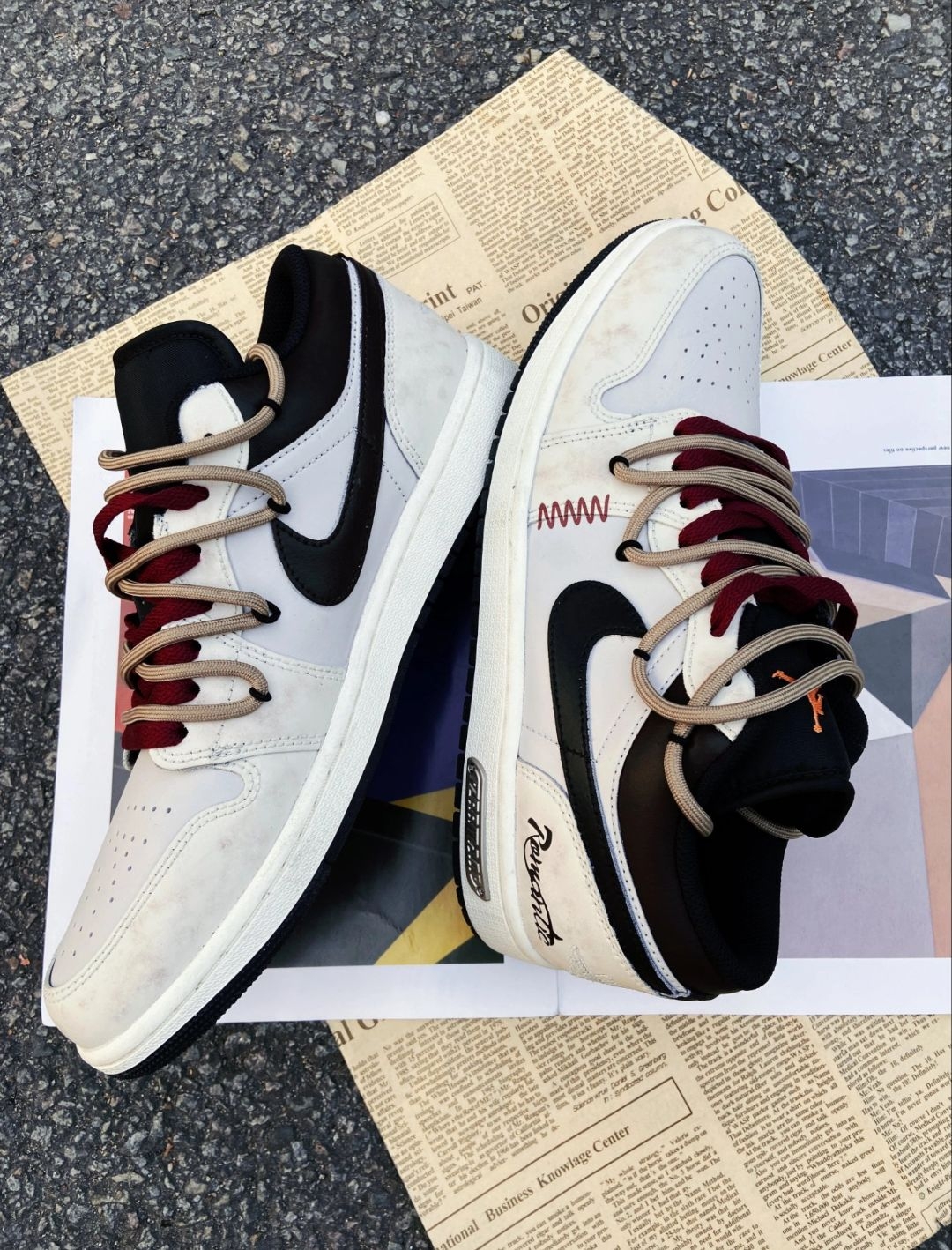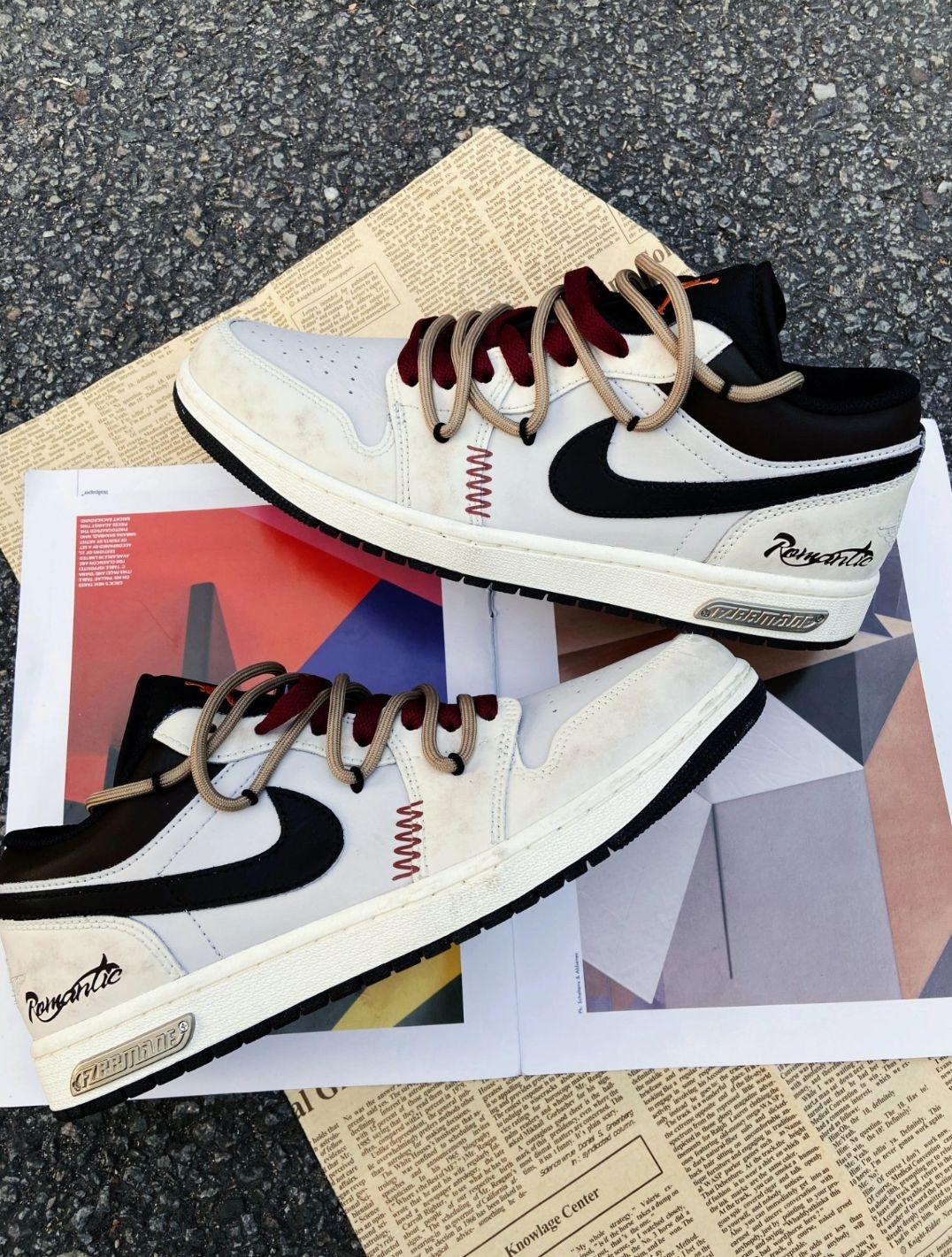 这双AJ1的做旧奶白+双鞋带设计,第一眼很有复古感,酒红+浅棕的撞色也挺有辨识度,做旧的鞋面自带“岁月感”,不用刻意养鞋也有那味儿。 上脚后,皮面质感还行,但做旧的地方容易显脏,稍微蹭一下就更明显。双鞋带确实有造型感,但系起来有点麻烦,而且鞋带容易松,走路时要时不时调整。 最大的槽点是鞋底偏硬,缓震一般,长时间走路脚底板会有点酸。另外,鞋舌有点薄,穿久了会磨脚背。 整体来说,颜值>实用性,适合日常...
