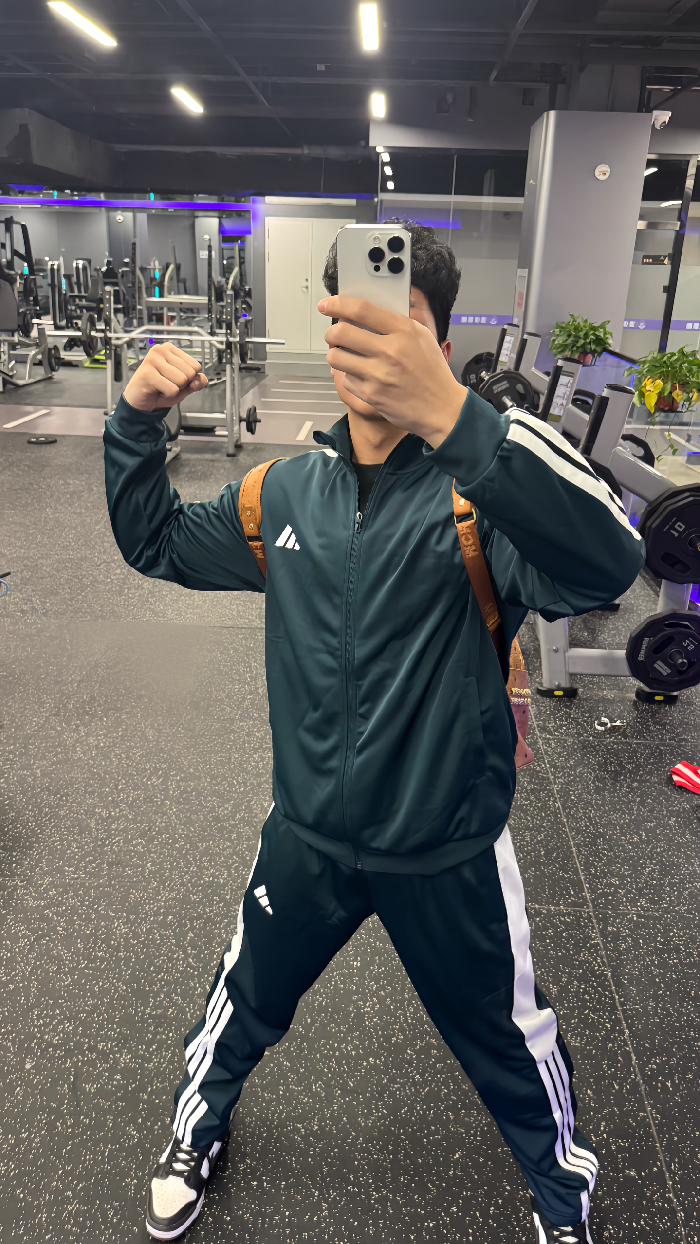 家人们谁懂啊!这套运动风轻奢三件套真的焊在我身上了,健身房、上学、出街都能打,直接封神! 上身阿迪达斯经典套装,标志性三条杠自带辨识度,宽松版型遮肉又显瘦,面料是那种轻薄透气的速干材质,练完背不粘身,日常通勤穿也完全不闷,舒服到不想脱下来。 脚下踩耐克熊猫鞋,经典黑白配色永不过时,鞋型秀气显脚小,脚感软弹,暴走一天也不累,和运动装适配度直接拉满,健身房撸铁、出街都很吸睛。 背上MCM经典双肩...