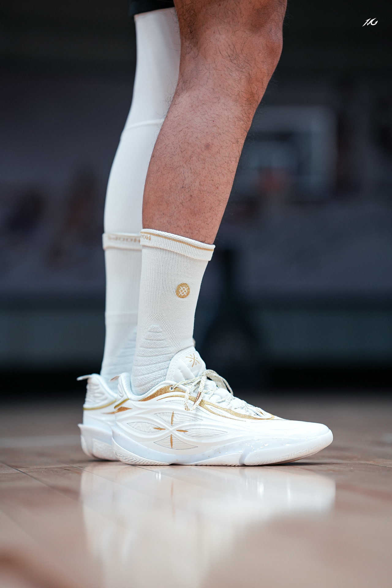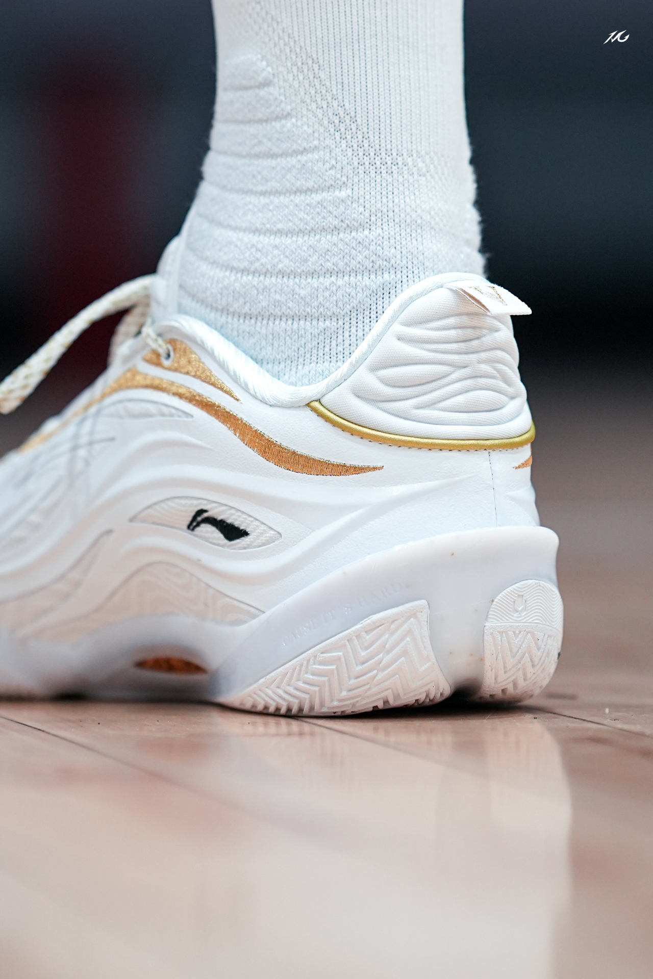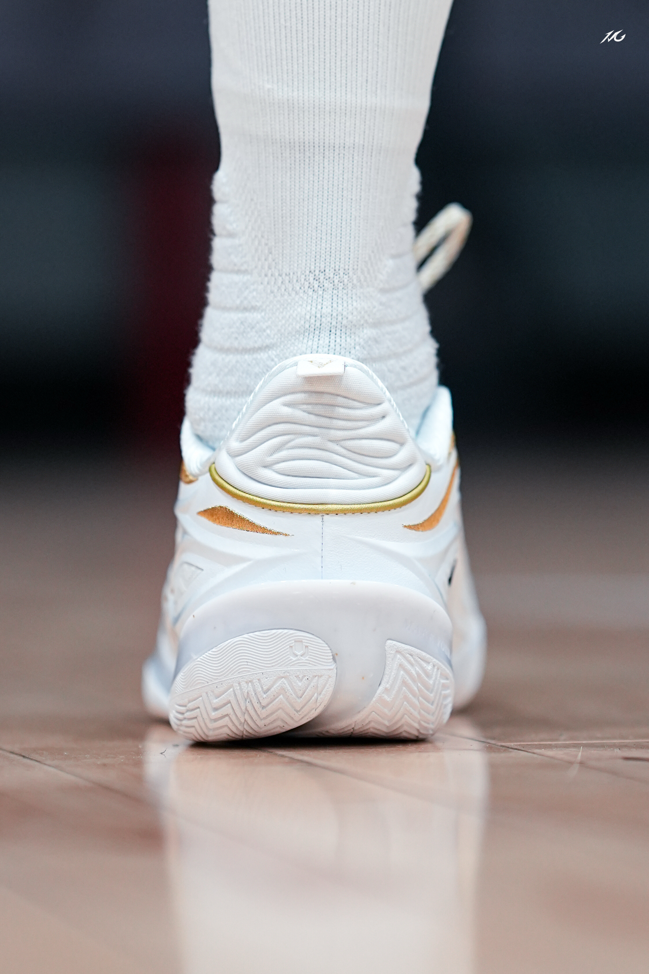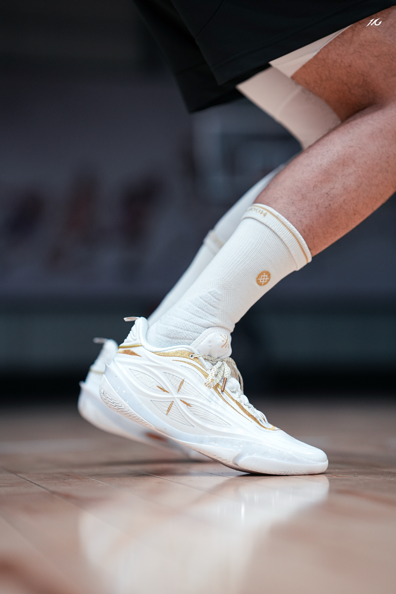 今日上脚这双808 5ULTRAV2的流金配色! 鞋底的金色碳板是非常耀眼的,鞋身也是白色为主金色线条勾勒,这类配色我老觉得荣耀感拉满,多用来做冠军配色哦! 这双鞋我还是体验了不少配色,反正就是说脚感确实软弹的很爽,但也会让大多人觉得过软而拖沓了,此外就是尺码瘦脚一定要选小半码最好! #红包到手球鞋就有 #8085UltraV2白金配色