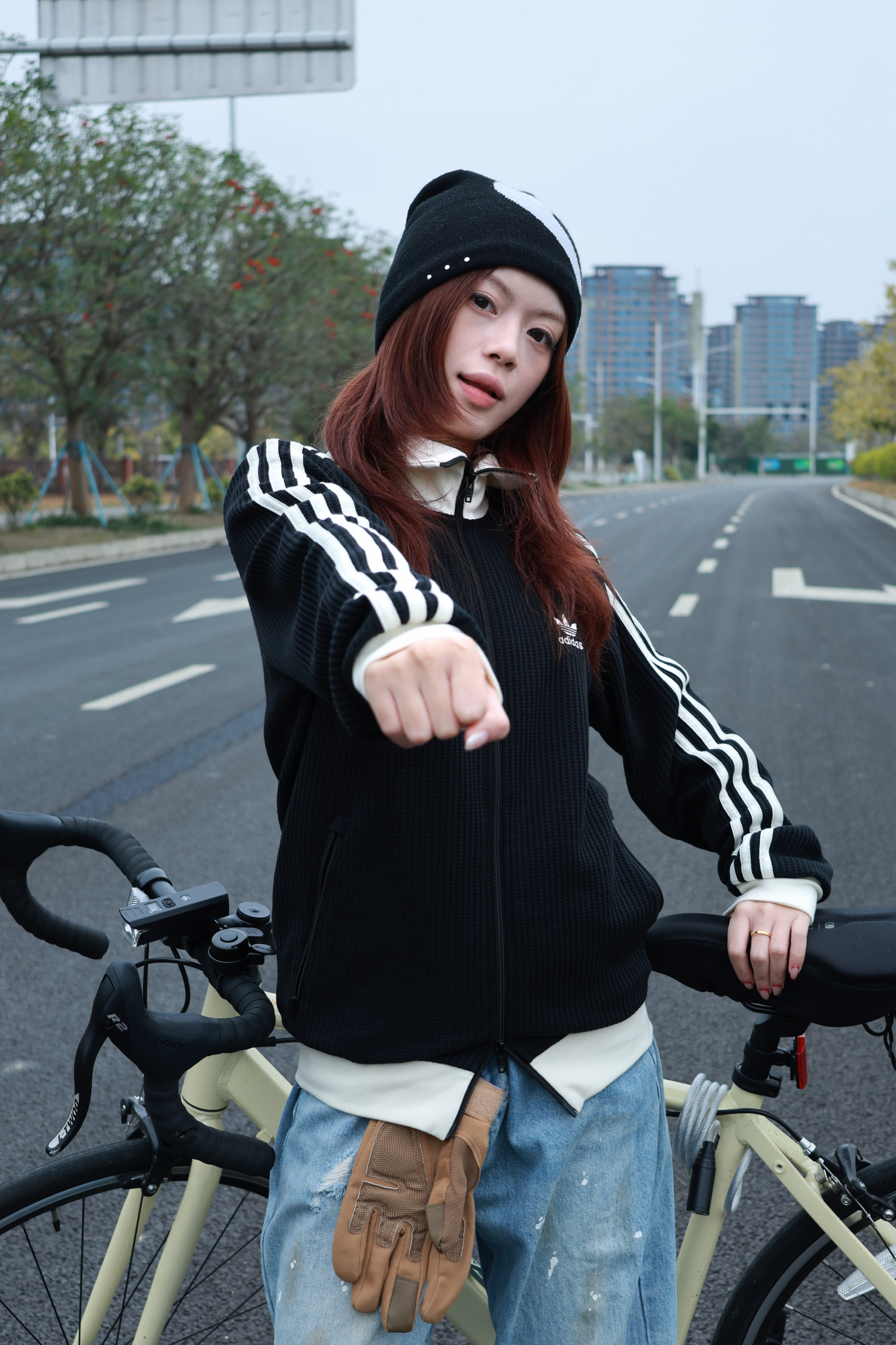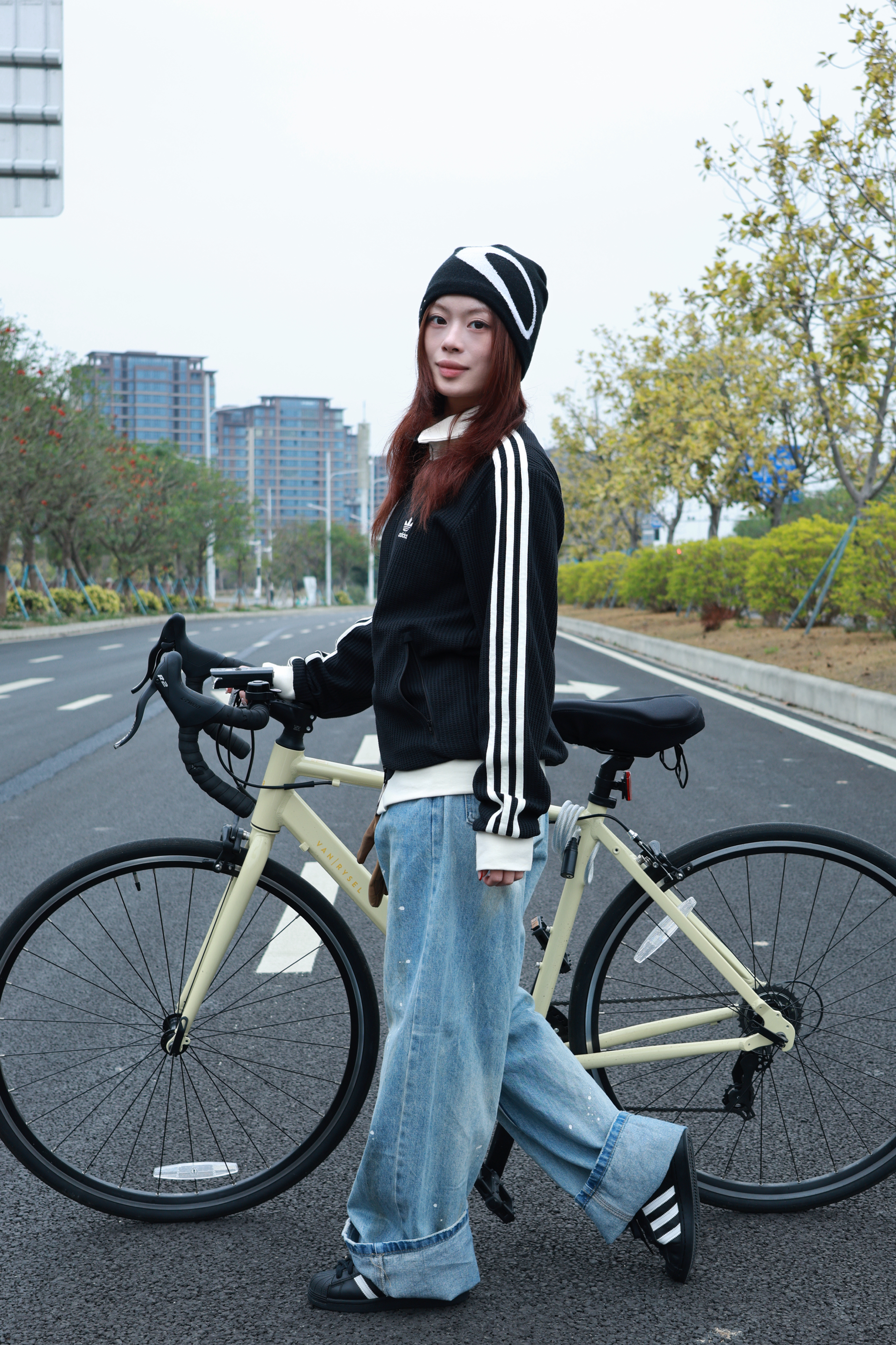 解锁春日的正确方式唯有骑行 没有风的日子骑着公路车在郊区超浪漫 分享今日骑行look🏷️ ◾️上衣:阿迪经典三条杠开衫 黑白配色最最最经典也是最最最耐看的配色 立领设计自带复古滤镜🫧 手臂三条杠撞色简直是行走的潮流DNA ◽️裤子:阔腿拖地牛仔裤 超喜欢这种宽松自带松弛感的牛仔裤 多了一份街头感🎨 骑行时候我会折些裤脚 不仅方便骑行也超时尚 ◾️鞋子:经典黑色贝壳头 选择同上衣配色的板鞋 ...