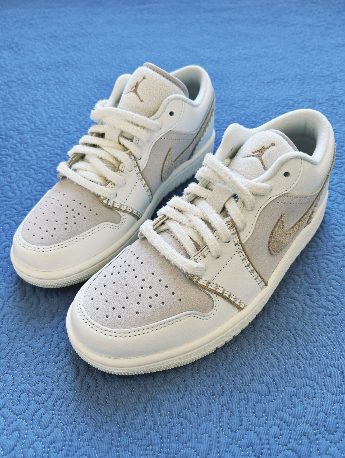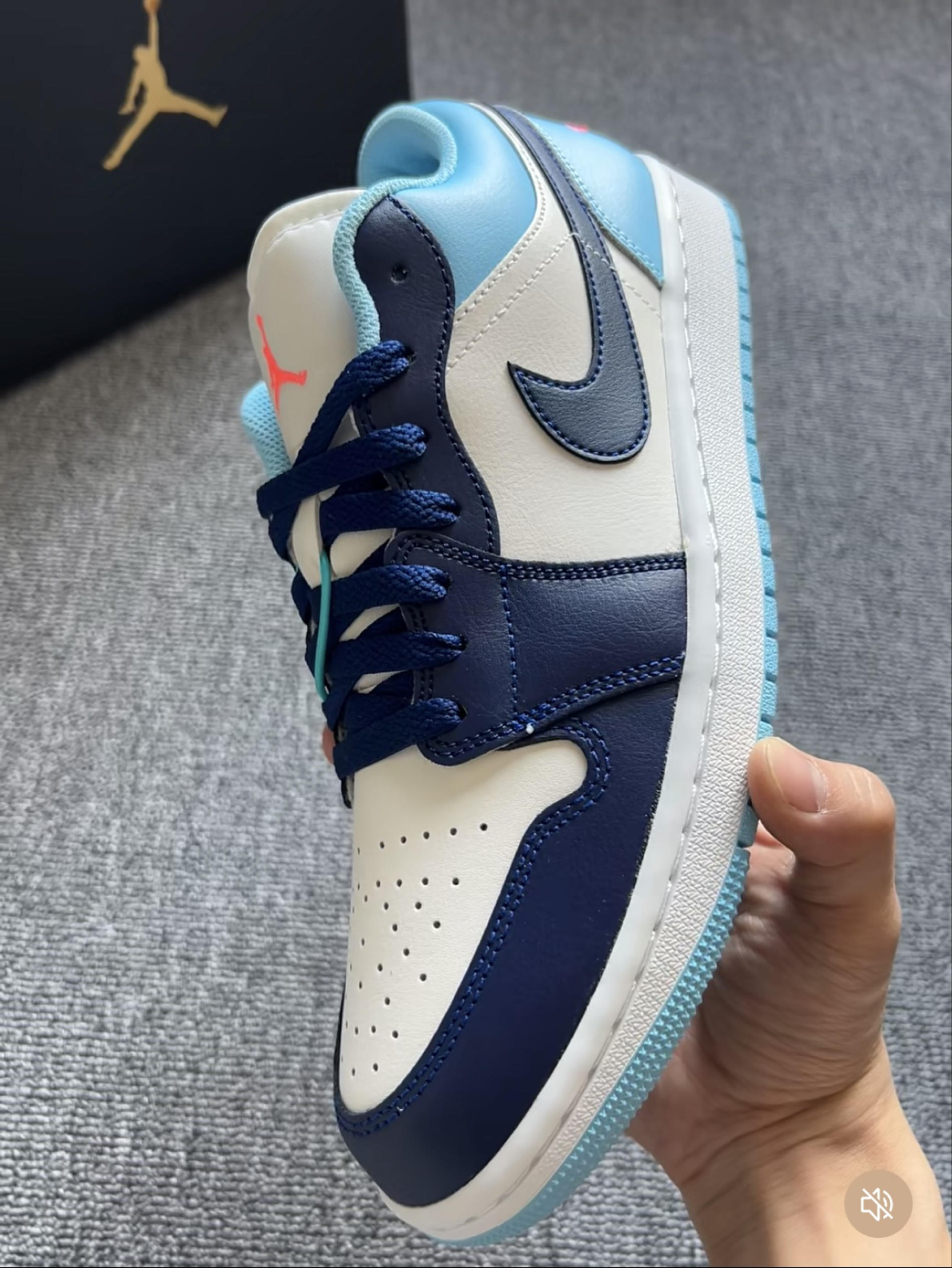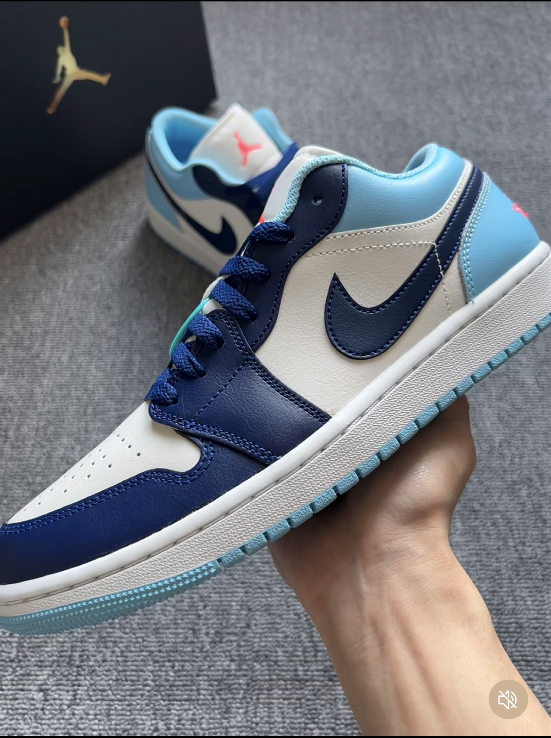 春天已经来了,还没有找到一双合适的好鞋吗,话不多说,这就上鞋,四个方面参考: 1️⃣外观:这双AJ1 Low前半身采用的深蓝色在光线下呈现出一种深邃,沉稳的光泽感,这种质感与天然黑曜石很相似,有种大自然的感觉,鞋后半身采用浅蓝色,辅以鞋舌、后跟的粉橙色飞人刺绣点缀,提亮鞋子整体颜色,从沉稳转向活力。 2️⃣材料:鞋面主体为合成革,纹理细腻有光泽感,鞋舌用织物网布增加透气性,白色橡胶中底浅蓝色橡胶外...