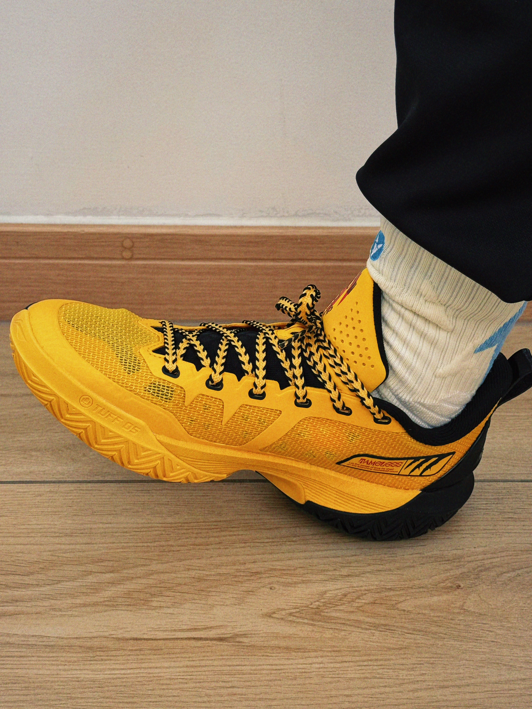 #买双新鞋哄自己上学 #李宁桀骜3 #桀骜3虎爪 #桀骜3 #新鞋零时差2026 又是一双颜值在线的校园球鞋 小孩哥们球鞋新选择 桀骜3虎爪主题,拉风的金黄色 日常上脚吸睛指数拉满,色彩饱满 贴地指数6颗星,春夏透气 包裹感可以,鞋底平直 轻微平足穿41.5长度刚好,穿久脚掌发酸 平足选鞋:核心是补足足弓支撑、强化后跟稳定 增加鞋底缓冲、选择宽楦鞋型 并避免完全无支撑的平底鞋。