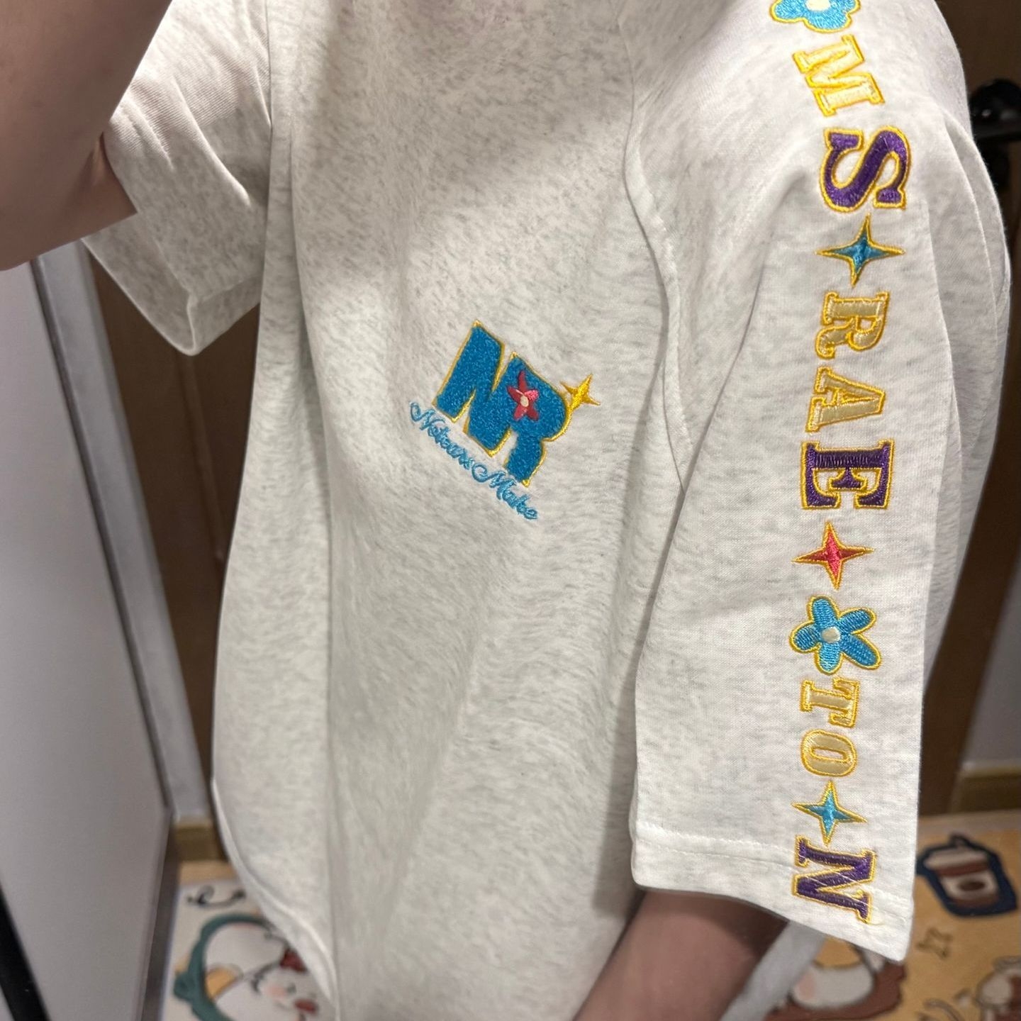 毛巾绣的字母彩色的很多巴胺 连肩的刺绣设计超级重工 字母+花卉刺绣感觉一脚可以踏进春天 #毛巾绣卫衣 #宝藏短袖丁恤分享 #你永远可以相信中式审美 #我的态度穿身上体重