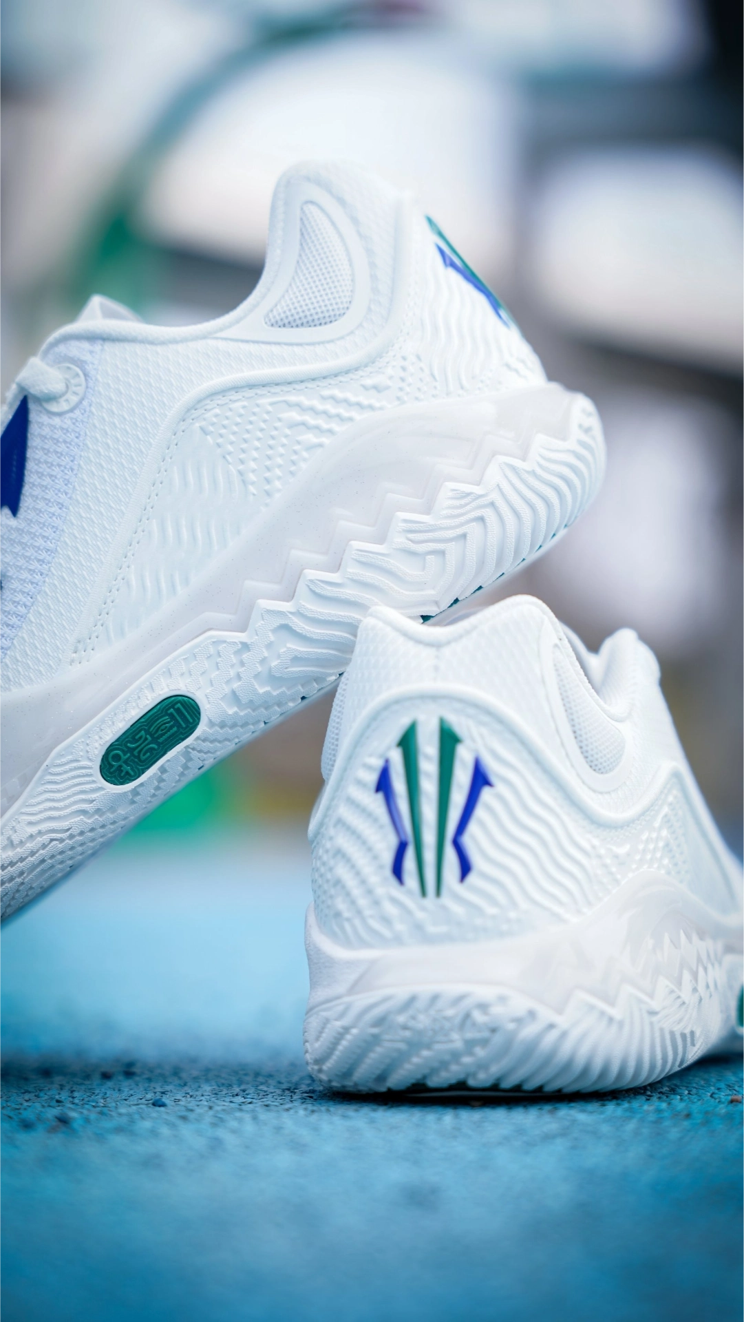 欧文先驱2是我去年上脚频率很高的一双实战鞋,首先当然是颜值到位,俯视角度的欧文之盾视觉冲击力很高,这个设计确实很帅。其次中底回弹感受对于我140斤体重来说刚刚好,既贴地又不震脚,加上加深加厚的耐磨橡胶,我更喜欢打外场就非常不错。 这次拿到的这双是夏季版,鞋面材质不仅透气有提升,强度还更高了,鞋舌部分也是变薄了,春夏实战相当不错。这双达拉斯配色,纯白加上蓝绿色渐变点缀设计,颜值没的说吧~ #新鞋零...