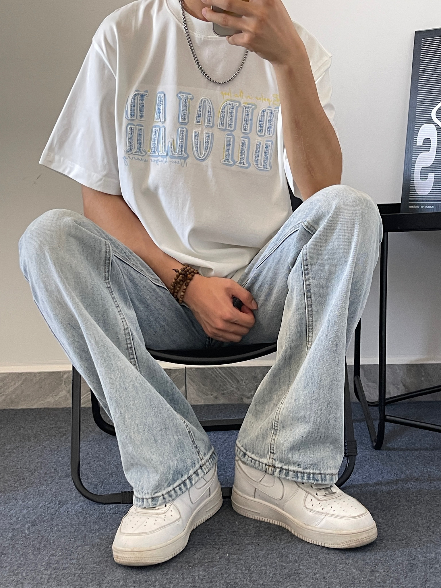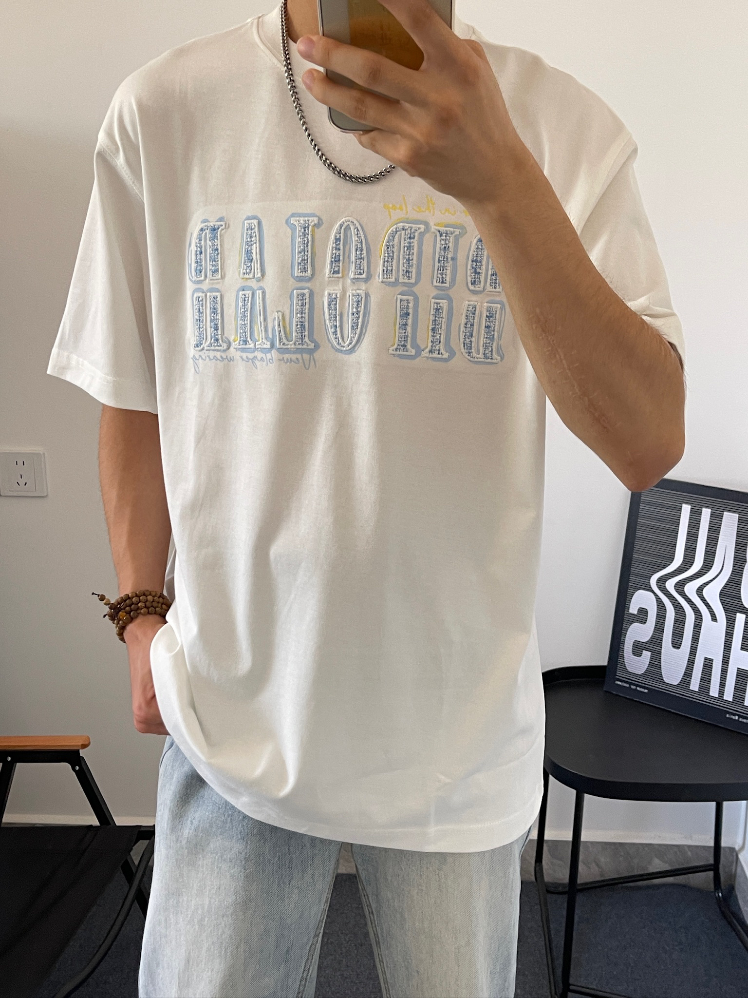 谁懂啊家人们!这件白T真的太好穿了😭 版型是那种微宽松的,对各种身材都很友好,不会显得臃肿。我178,130斤穿M码刚好,长度也刚好盖住屁股,显得腿很长。夏天随便搭个短裤或者牛仔裤,都很有少年感。