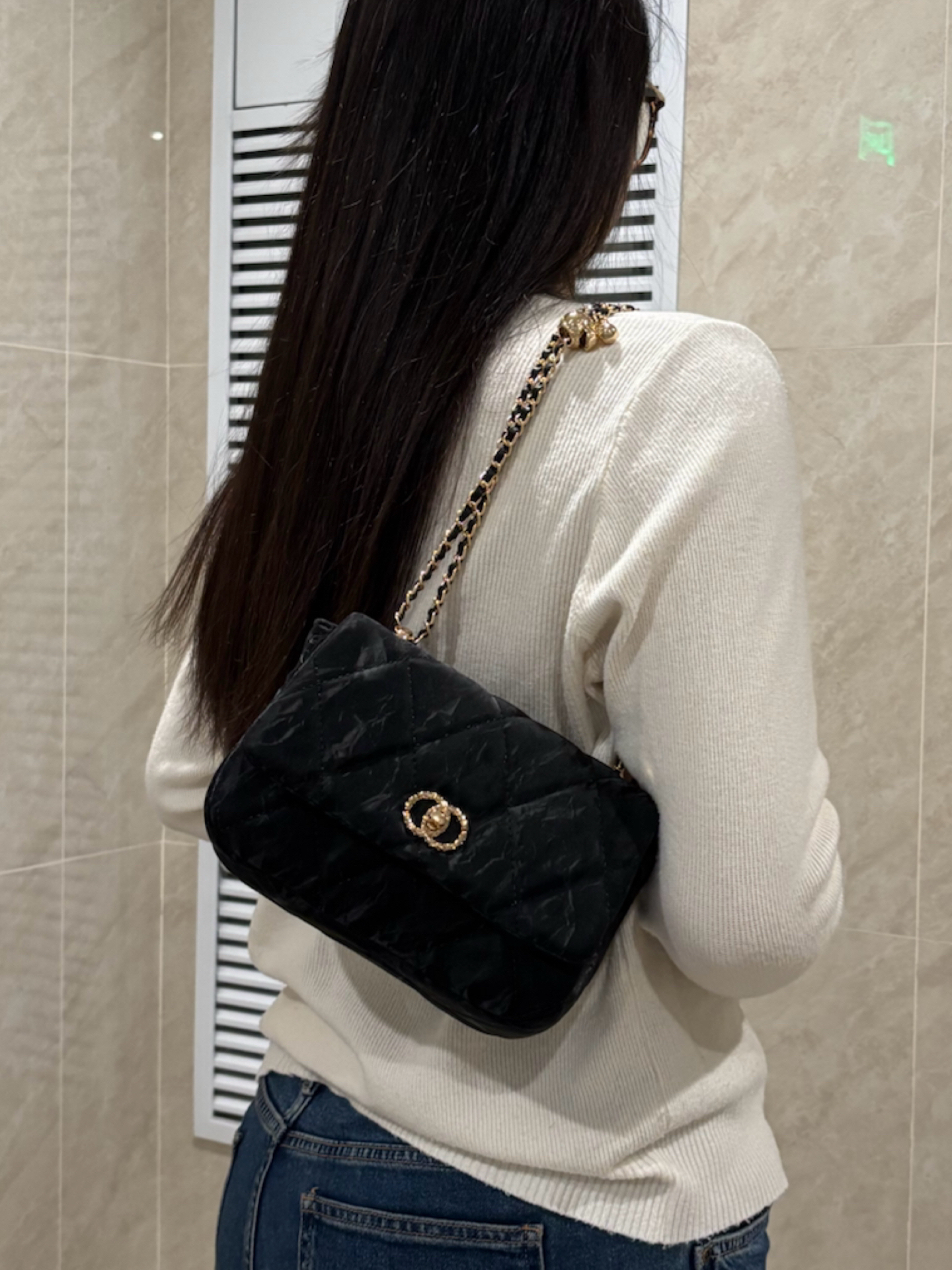 黑白经典搭配 很有千金感诶 是那种雾茸茸的材质 我觉得摸着还蛮舒服的 容量比我想象中大一些 但是不会很大 平常约会或者上班背我觉得很好搭配衣服哦 #优雅包包 #分享气质感包 #女神必备包包 #链条包yyds