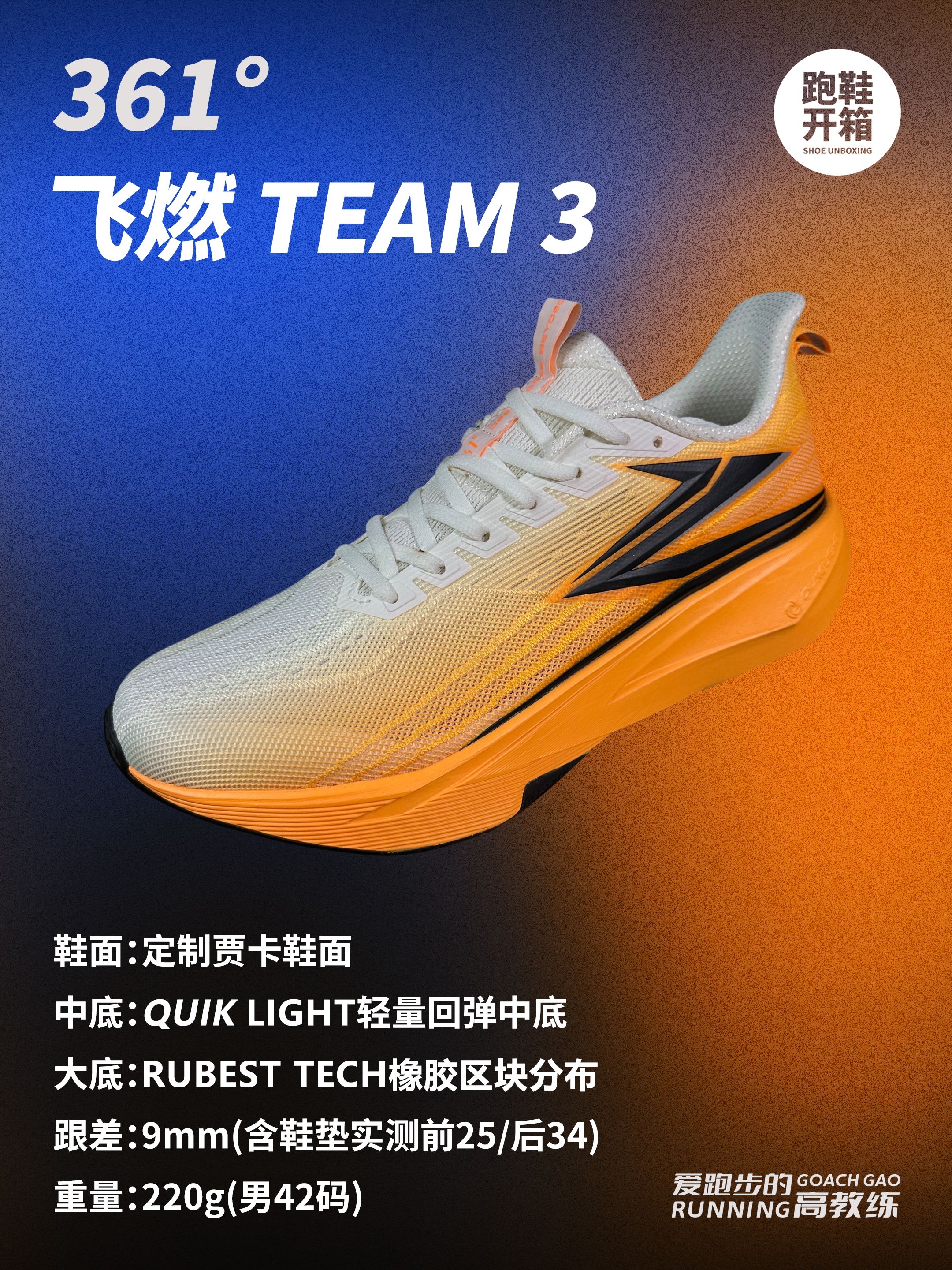 🔥前两年各大品牌都在卷碳板,比谁更弹、谁推进感更强。 🎯而大众跑者真正需要的不是比赛日那几小时的"激进",而是能扛住每周几十公里、安全、耐造、脚感扎实的"伙伴"。 🎉而飞燃team3就是那么一双性能均衡、适用场景广泛的轻质万金油跑鞋。 🏃下面让我们来看看,这双回归初心,价格亲民的日常综训跑鞋性能如何? 📝跑鞋数据: ✅鞋重:42码单只220g±1g; ✅鞋面:定制贾卡鞋面,分区编织,透气性...