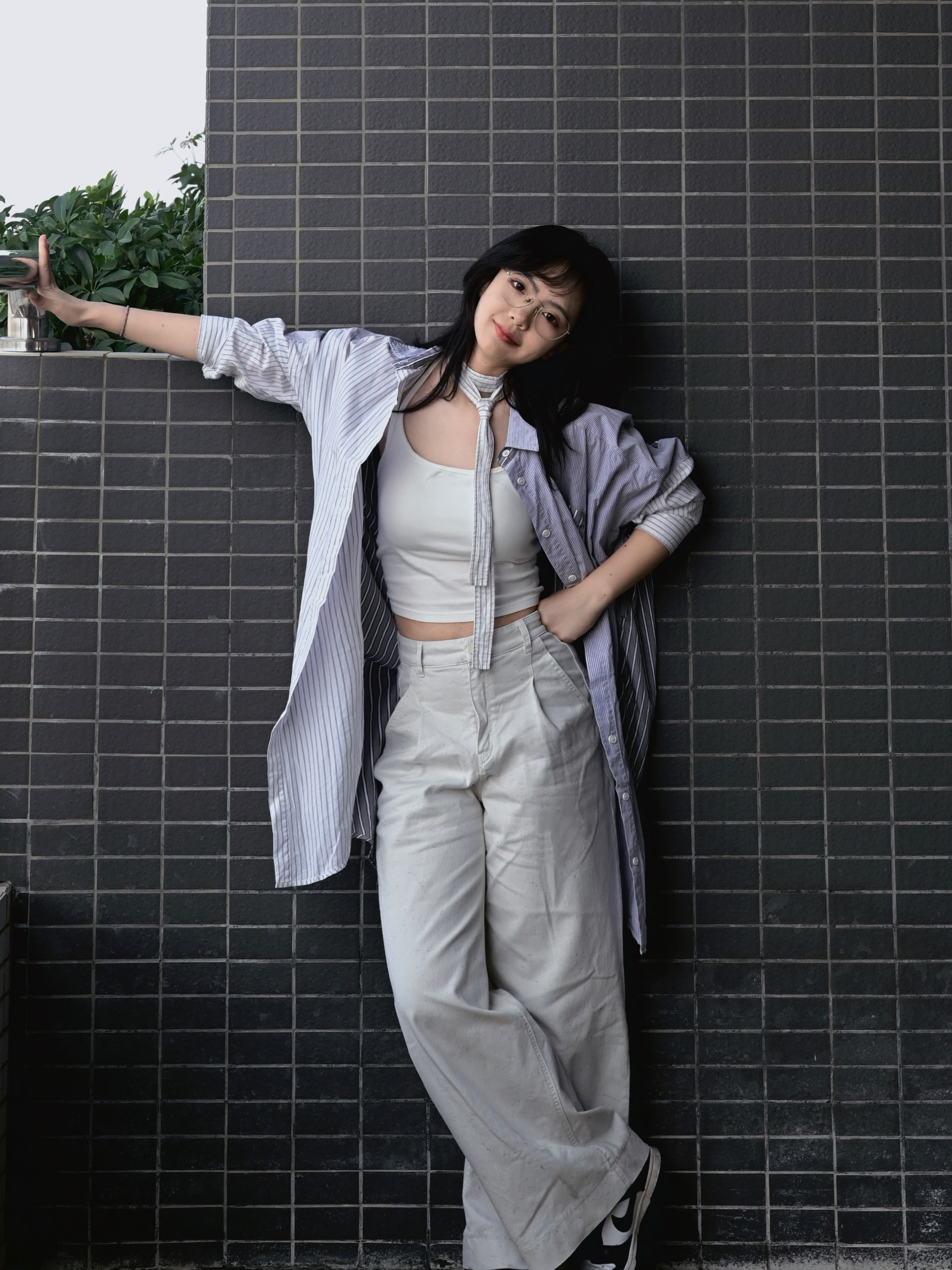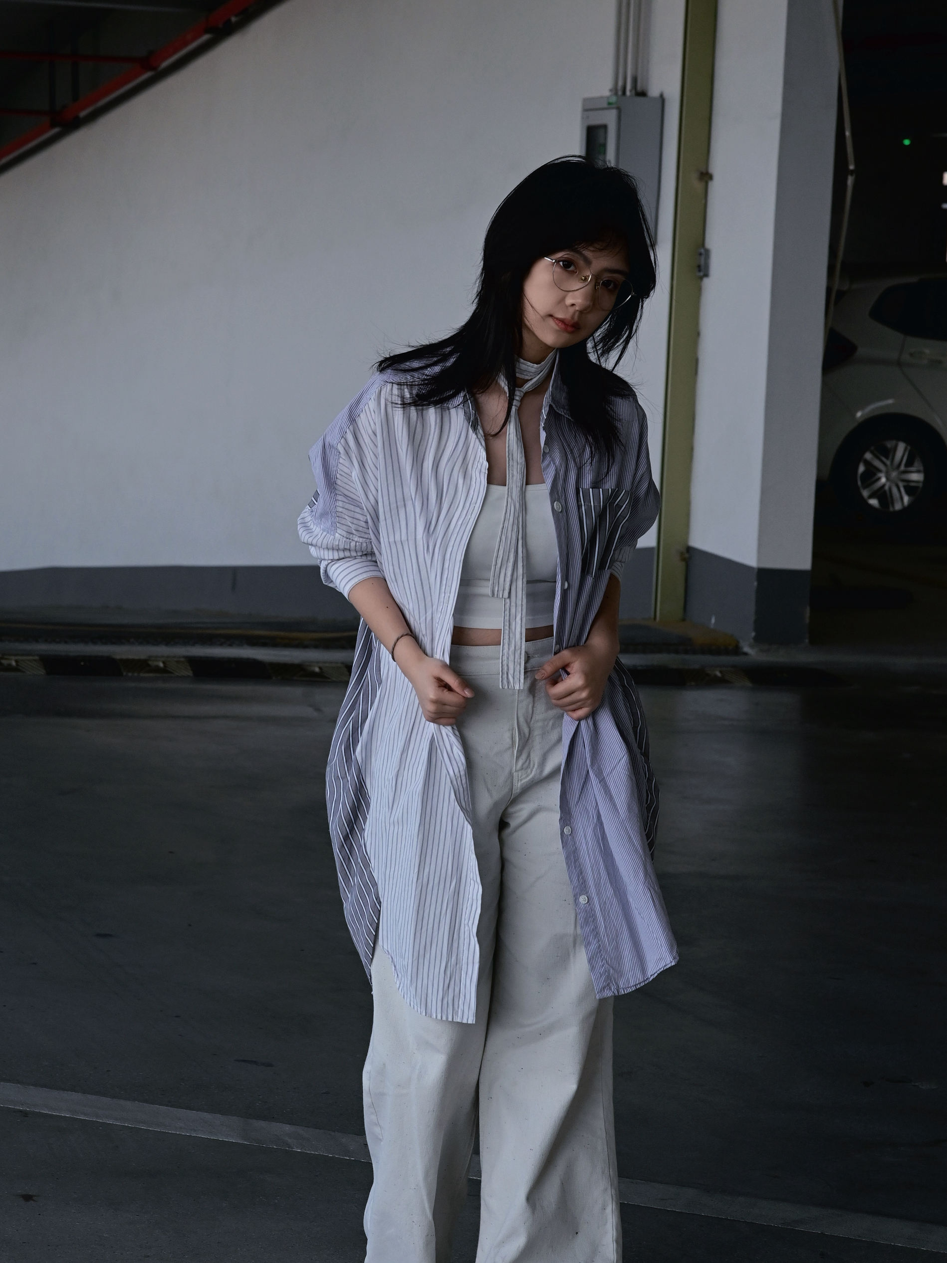 OOTD长款条纹衬衫 深浅搭配,显瘦不累✌️✌️ 阴天也不怕冷,出太阳也很好的防晒 搭一个简单的白背心 合适的项链或者同色系领带 轻松出片~