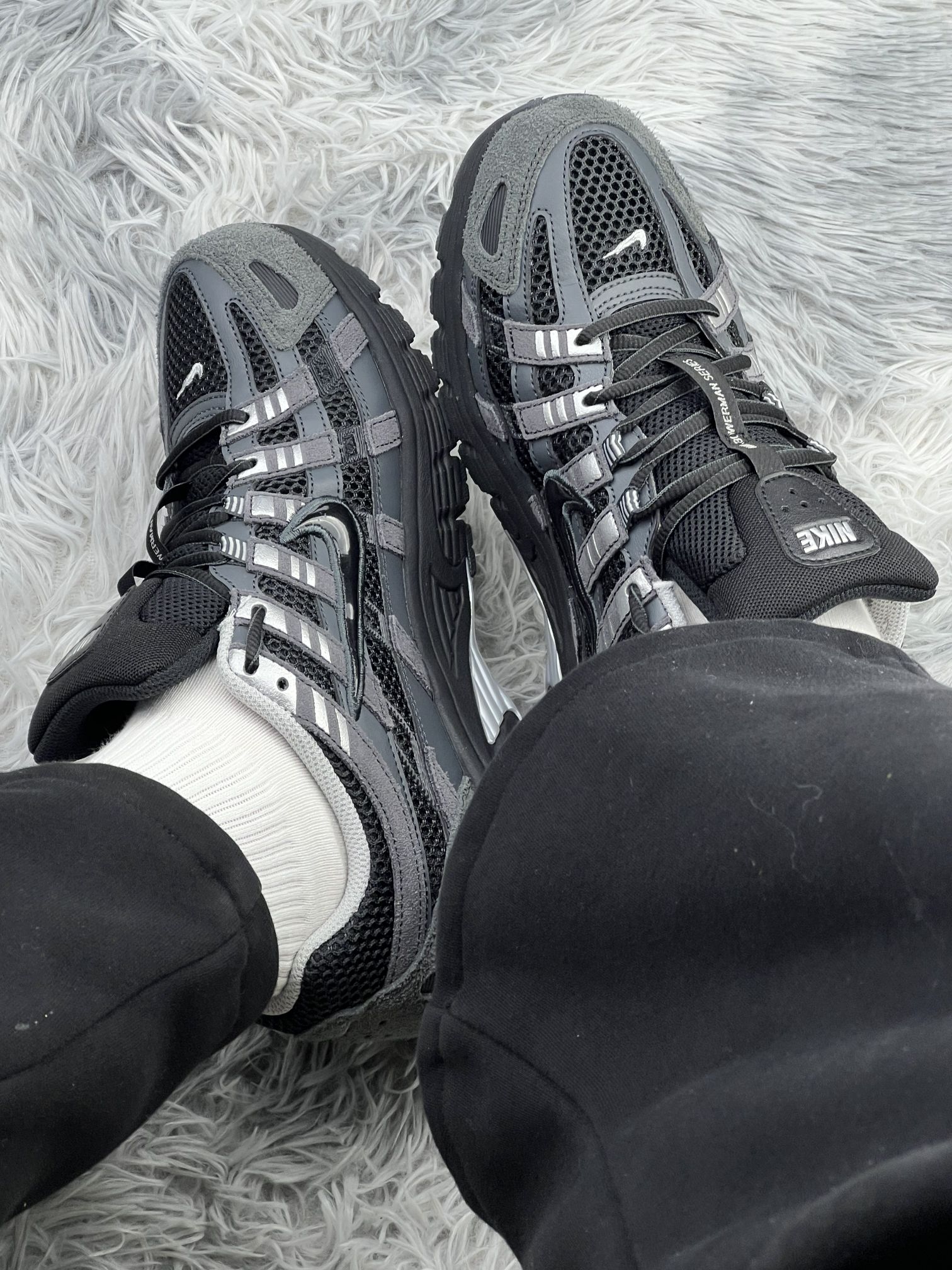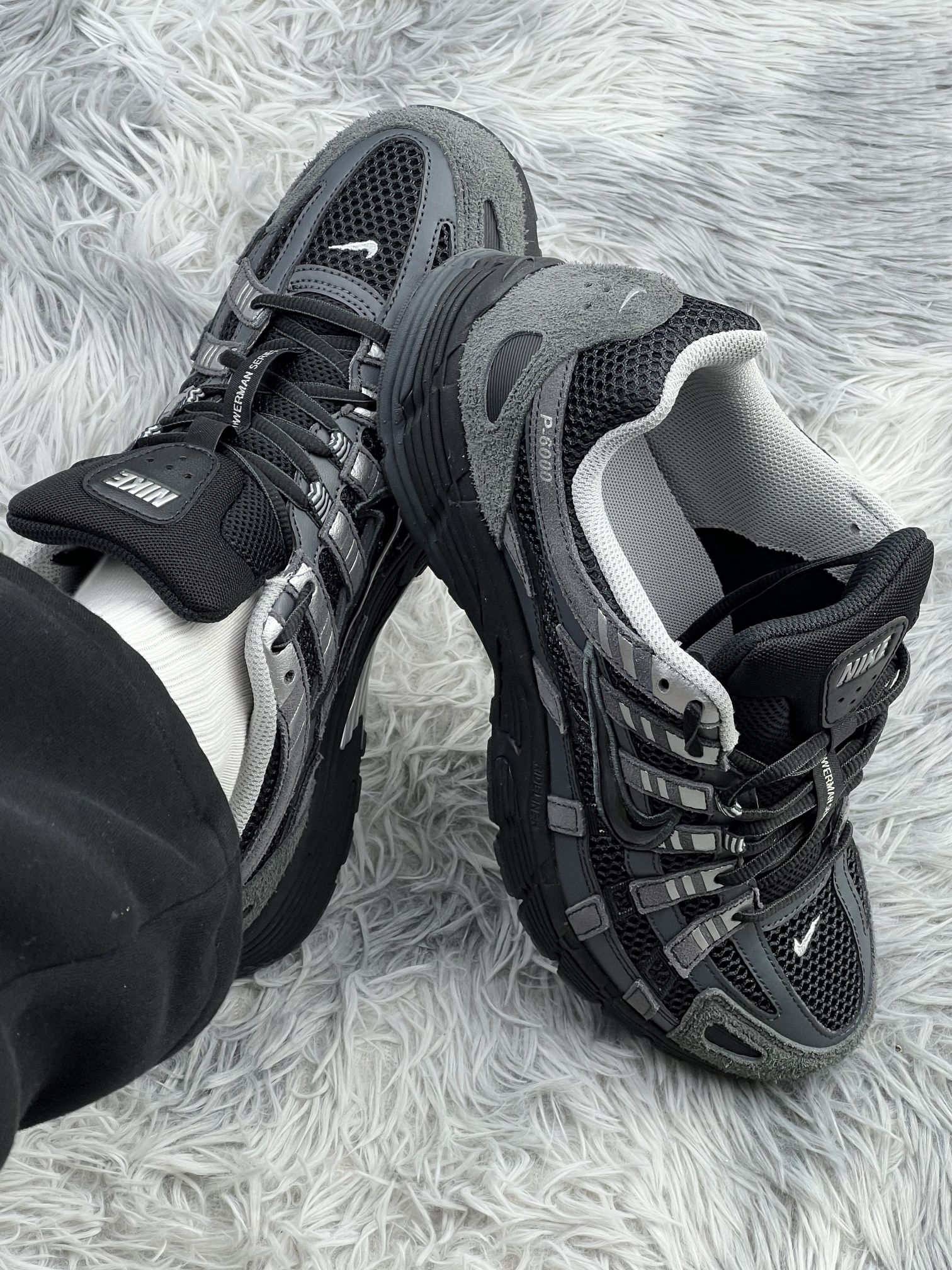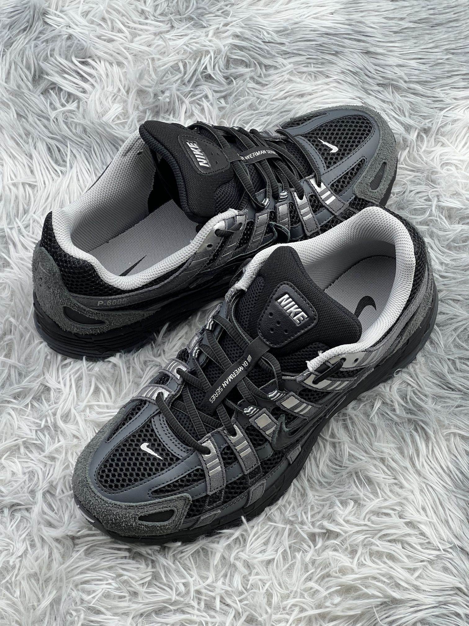 这双黑灰拼色的Nike P-6000,拿到手第一感觉就是质感比我想象的要硬核。网眼+麂皮的复古机能风太戳我了,配工装裤、牛仔裤、运动裤都不挑,日常出门不用想搭配,这点我真的爱了✨。 在脚感方面,中底的缓震反馈很明显,走路久了也不会太酸,但毕竟是复古跑鞋,整体还是偏扎实,长时间暴走还是有点累😅。鞋舌的魔术贴设计看着很机能,但穿脱时容易勾到鞋带,这算是个小缺点。 然后我上脚感觉鞋型偏包裹,如果脚面...