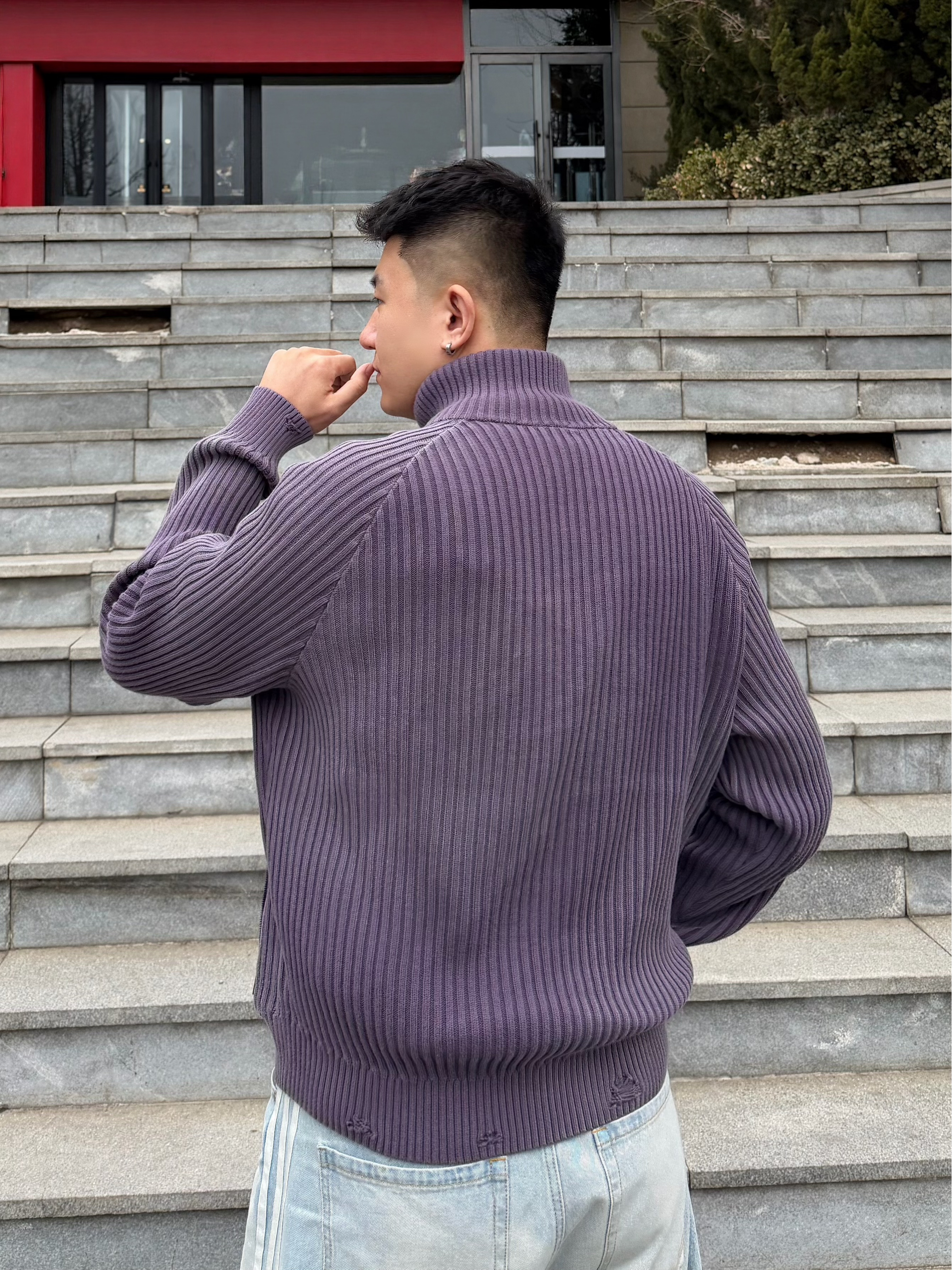 这件Adidas针织衫的颜色太春天了! 我选的是暗紫罗兰色 配色, 搭配三叶草☘️浅蓝牛仔+Adidas银色鞋 清爽又显白 衫的面料软乎乎的 春天穿刚好, 宽松版型里面套一件也没问题 谁穿谁好看系列✨ 👦🏻:188 | 85 🧥:XL 👖:36 你们觉得下装搭配什么更好看~