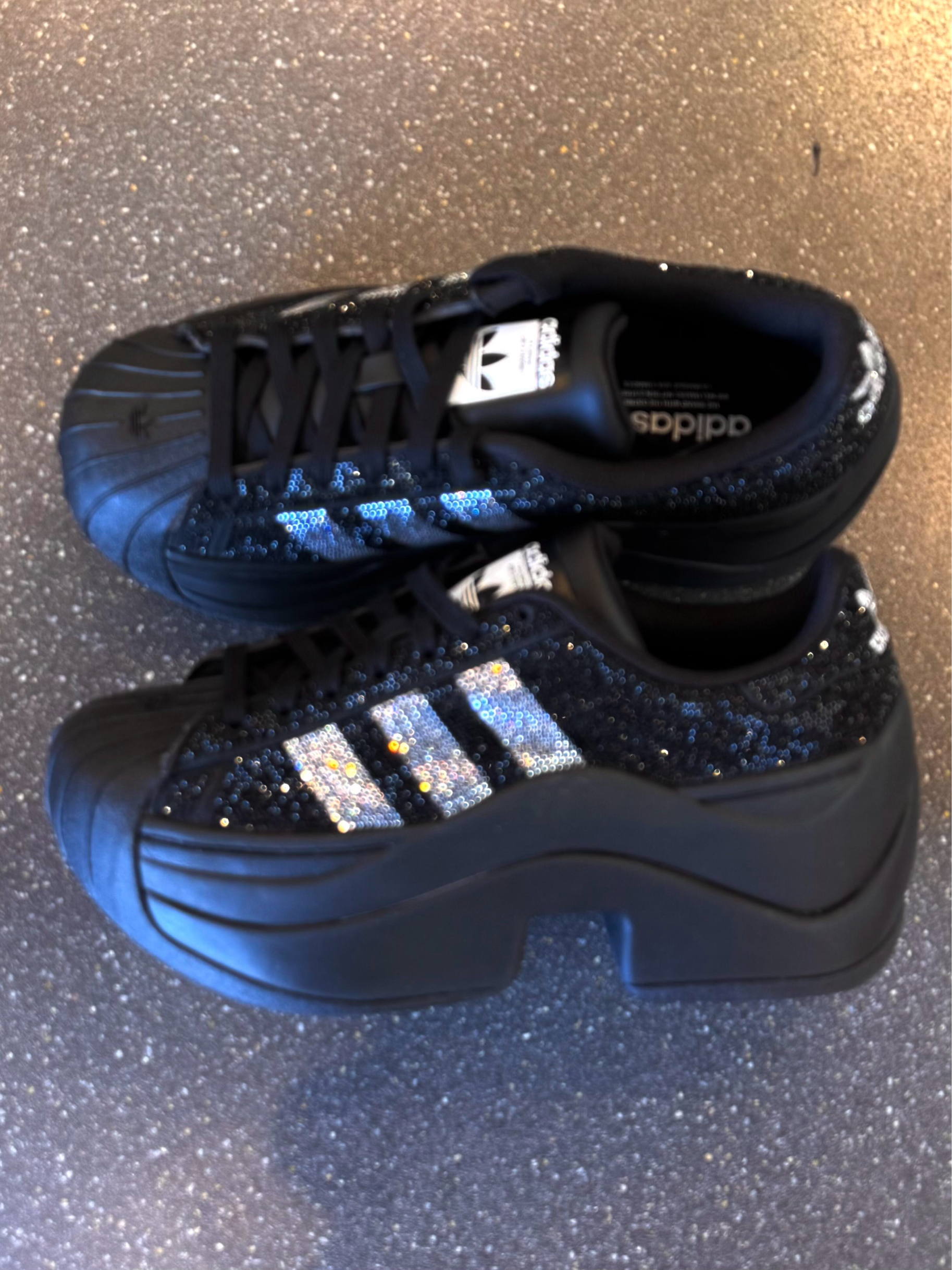 这双黑色超闪厚底贝壳头,简直是小个子的天菜救星! 全黑鞋面搭配亮眼闪钻细节,酷飒中带着甜妹感,低调又吸睛,灯光下直接闪到犯规✨ 厚底设计自带隐形增高buff,上脚秒变长腿精,视觉拉长比例,小个子也能轻松穿出三七分好身材! 千禧辣妹风+复古运动感双在线,又甜又酷,百搭到封神,配裤子、裙子、卫衣都超绝~ 显高、显瘦、显腿长,一双搞定所有穿搭! 小个子姐妹闭眼冲,长腿真的就在一瞬间!🥲