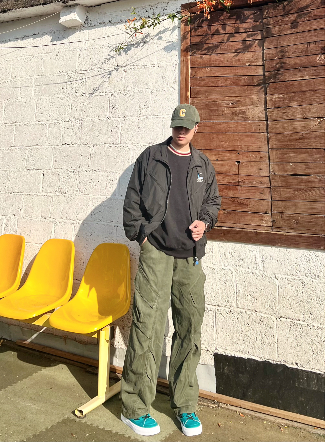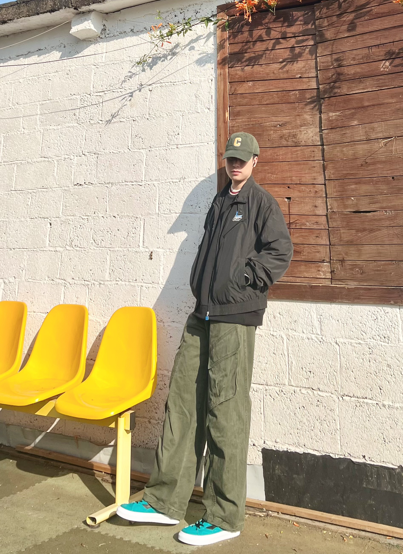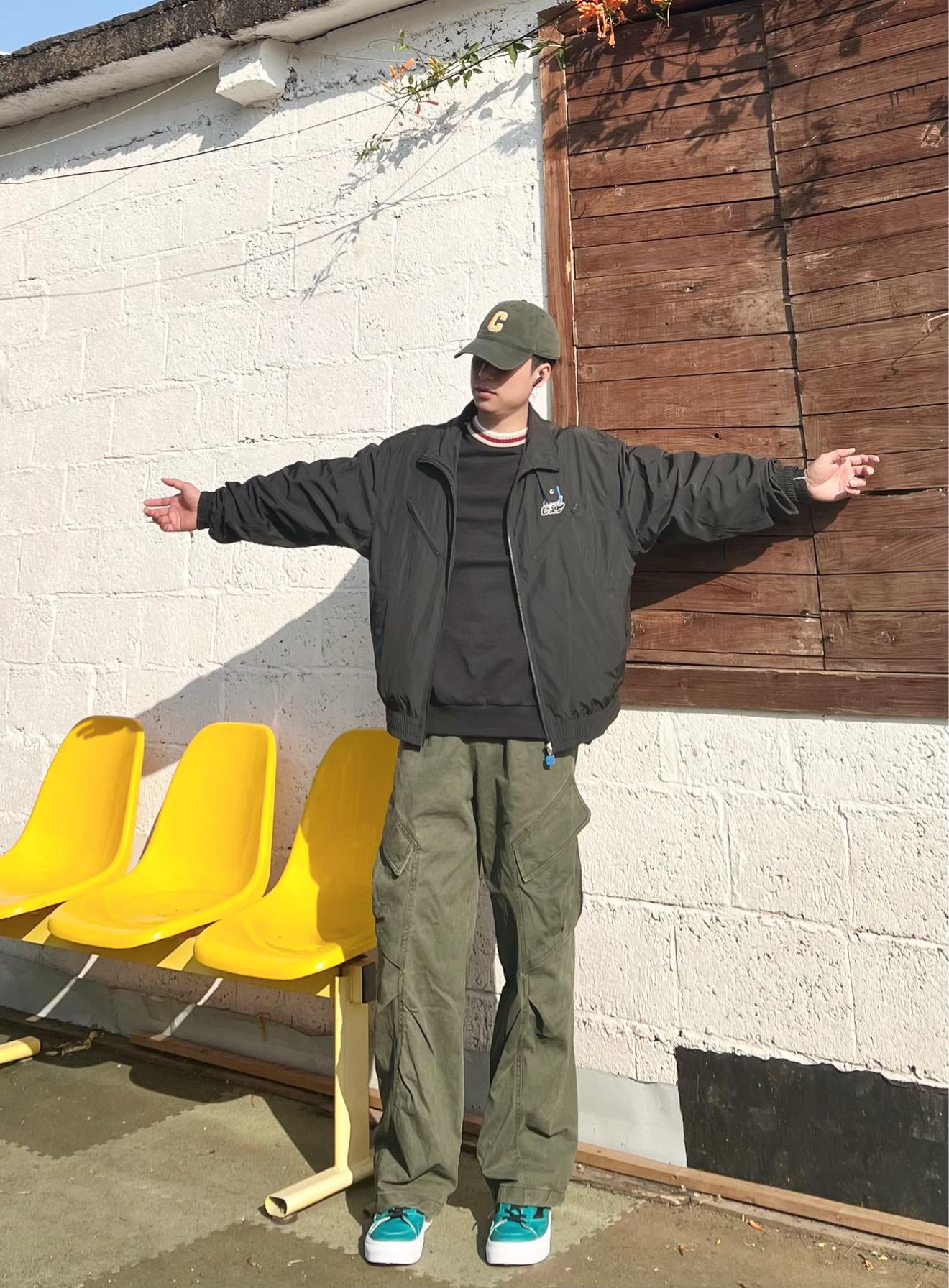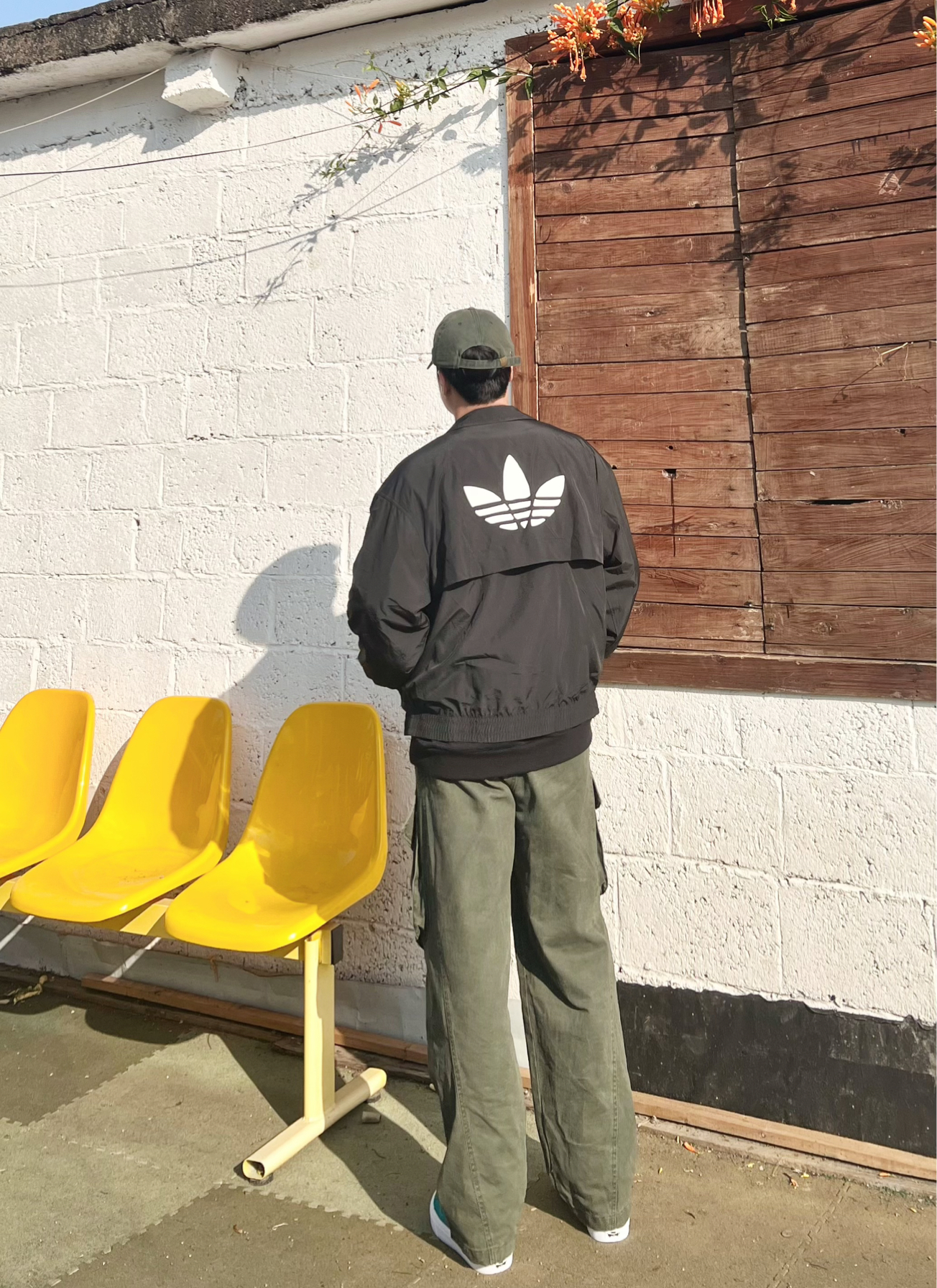 上身宽松阿迪立领夹克🧥轻薄不压身,开春穿刚好适配早晚温差,胸口和后背的logo刚好中和单调感😎 内搭选基础黑T,领口的红白撞色边刚好提亮整体,不用额外配饰就能打破一身黑的沉闷🔥 下装搭军绿色工装裤👖宽松版型藏肉又舒服,再踩一双亮色板鞋👟一套搞定通勤、约会、周末出行N个场景