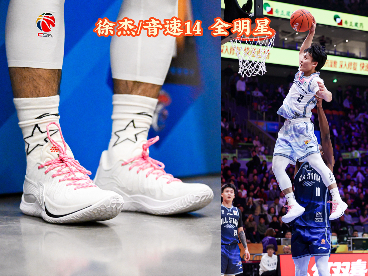 错过了比赛的家人们就直接和我一起回顾本届全明星的上脚球鞋吧~看看有你喜欢的吗 徐杰/音速14 全明星 郭昊文/驭帅20 造极 庞峥麟/音速14 全明星 胡金秋/驭帅20 广厦 PE 贺希宁/JIMMY BUTLER 4 钛空蓝 洛夫顿/韦德之道12 LUX Rosé 王浩然/闪击12 V2 全明星 邹阳/音速14 向阳而生