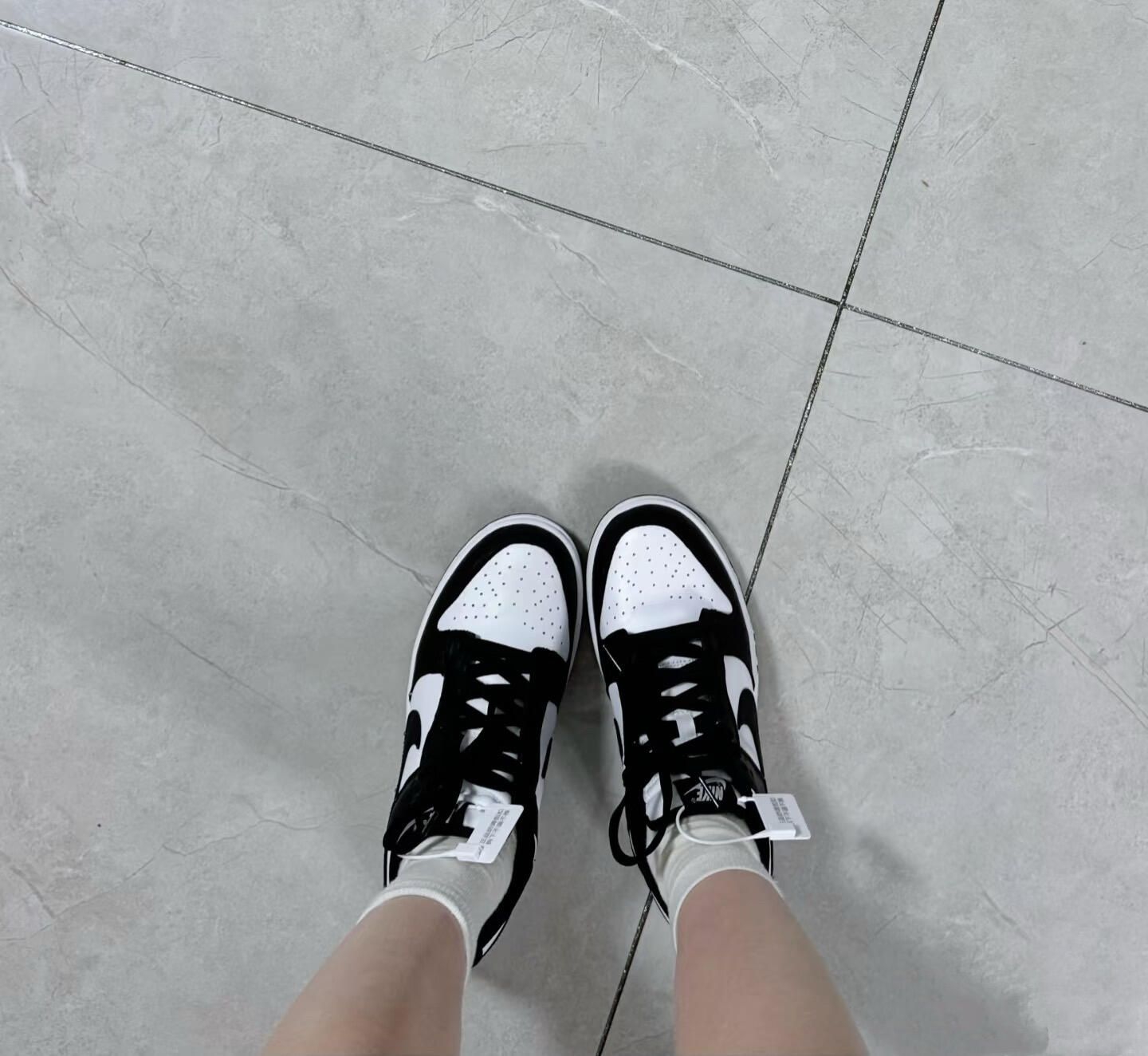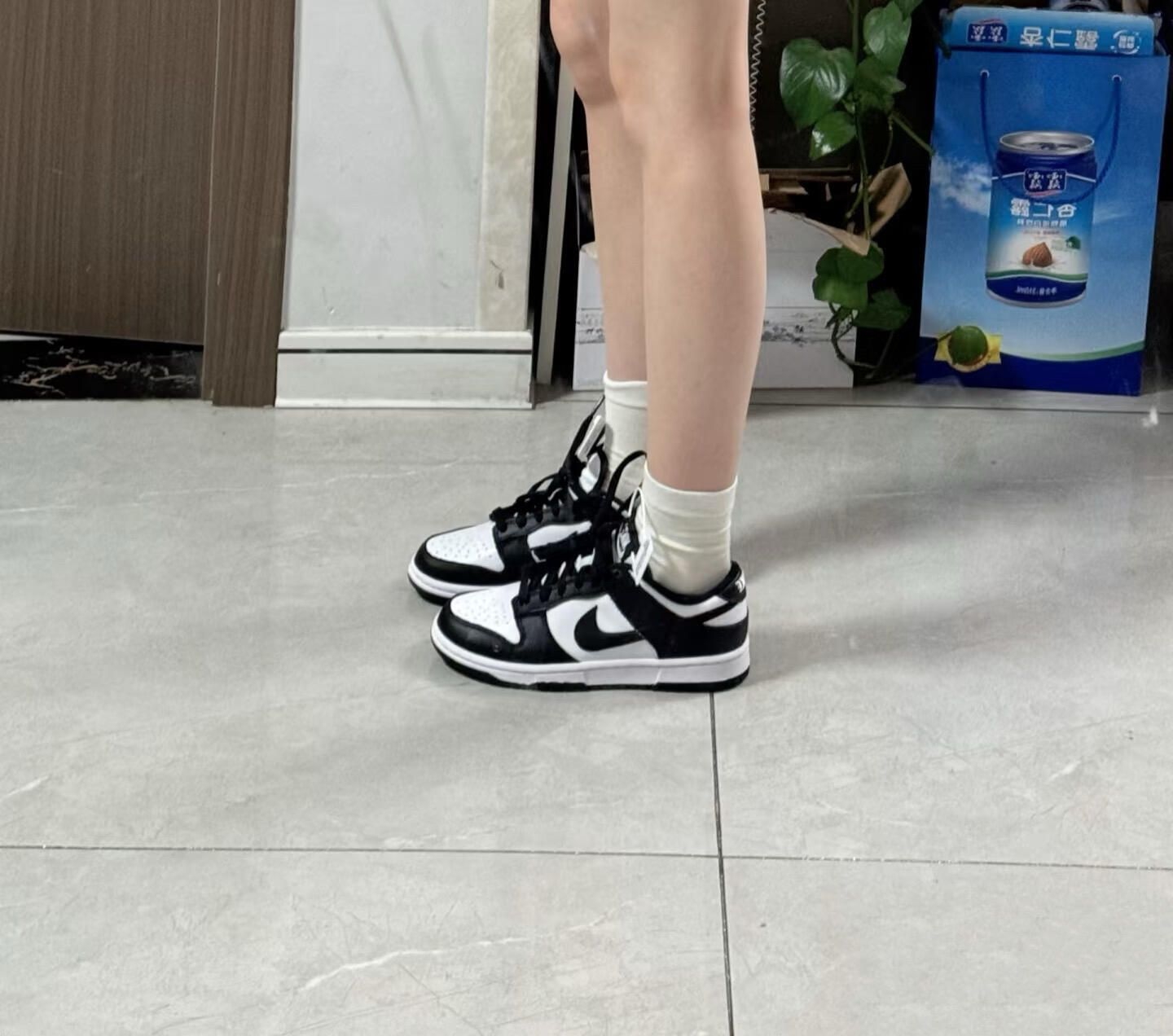 熊猫还是空军一号 想买熊猫配色黑底的黑勾,没有合适码数,买了个白底的空军试试和类似的熊猫黑勾的黑底!空军太香了,但是码数好大!!!板鞋有一双就够了,纠结留哪个更好看百搭
