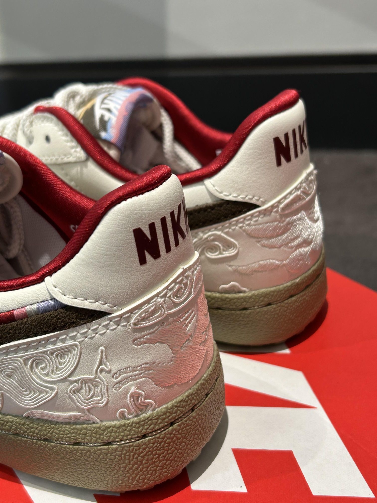 Nike🏮马年CNY限定复古风德训板鞋 🏮马年CNY限定复古风德训板鞋 谁能拒绝一双年味十足的德训板鞋啊! 米白的鞋身搭配红棕勾子,配色高级又不张扬 皮质鞋面摸起来软乎乎的还挺有质感 鞋侧的刺绣花纹+红边点缀超有国风感,生胶底踩起来软软的,日常通勤穿舒服又百搭