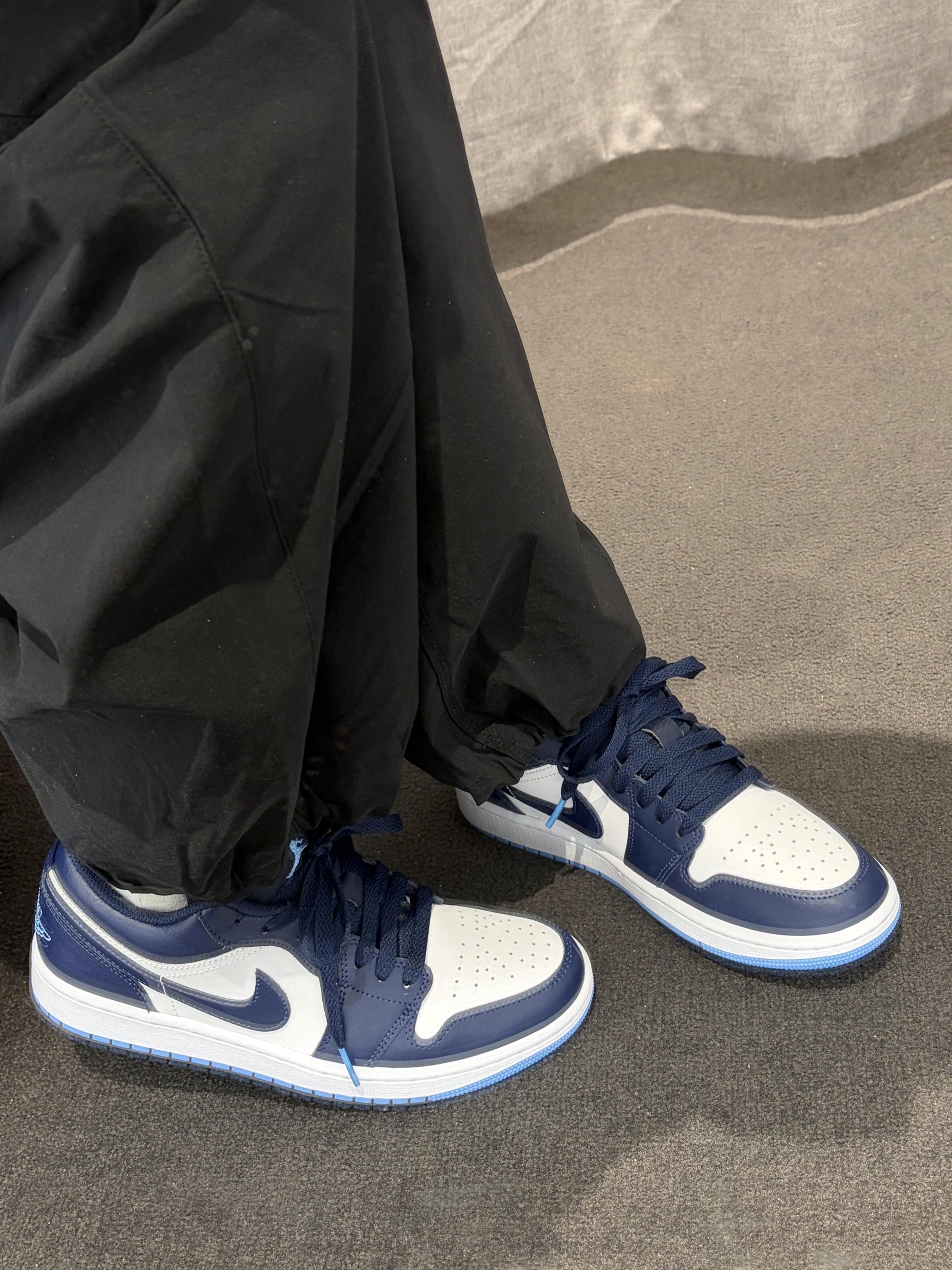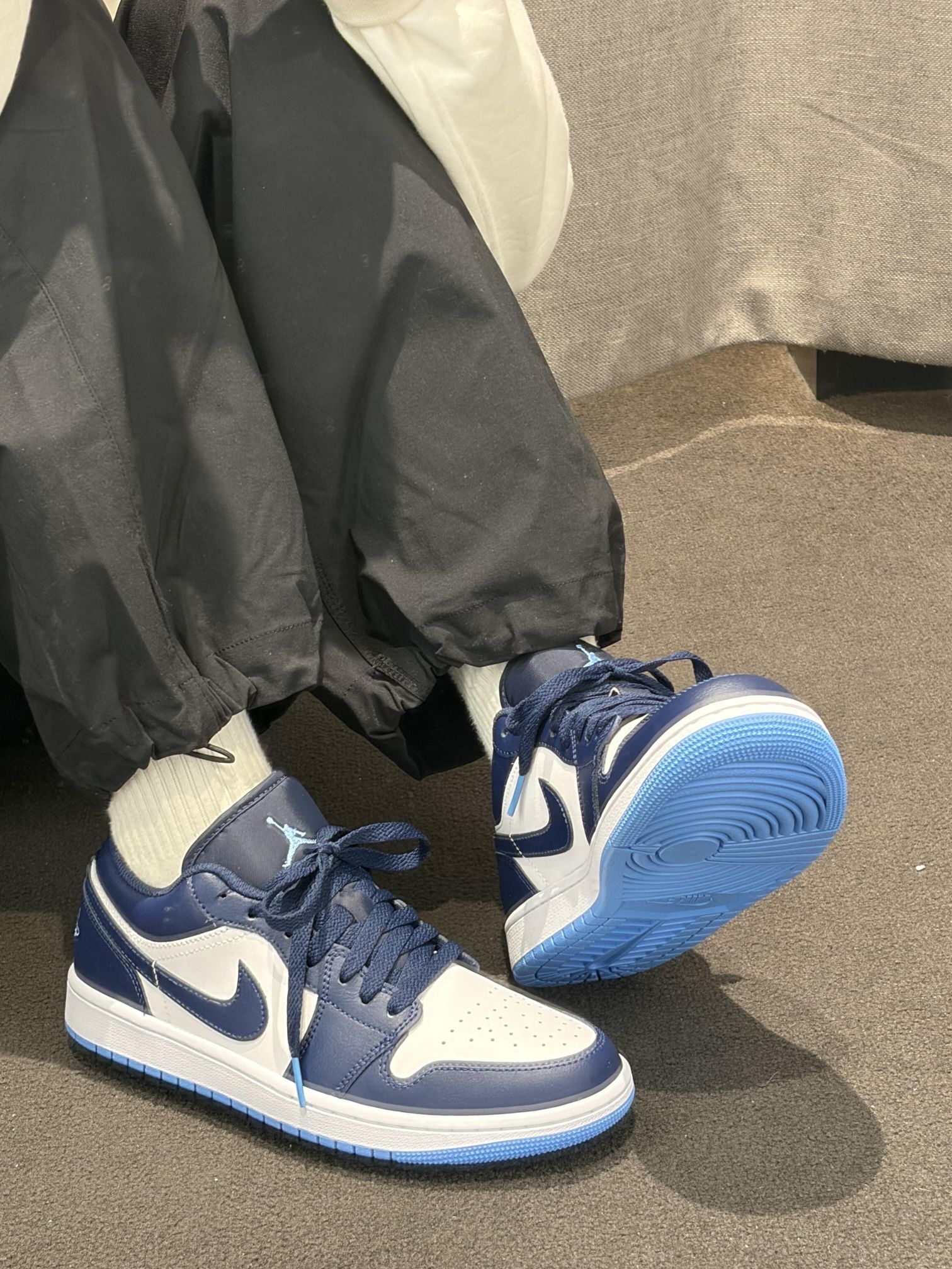 呐!显白又神秘的蓝色aj😍 Air Jordan 1 Low 蓝白撞色,经典永不过时 新鞋上脚,开启新的一步 这双AJ1,是我的春日入场券 藏在鞋盒里的惊喜,是属于自己的小确幸 蓝得深邃,白得纯粹,就像我对热爱的态度