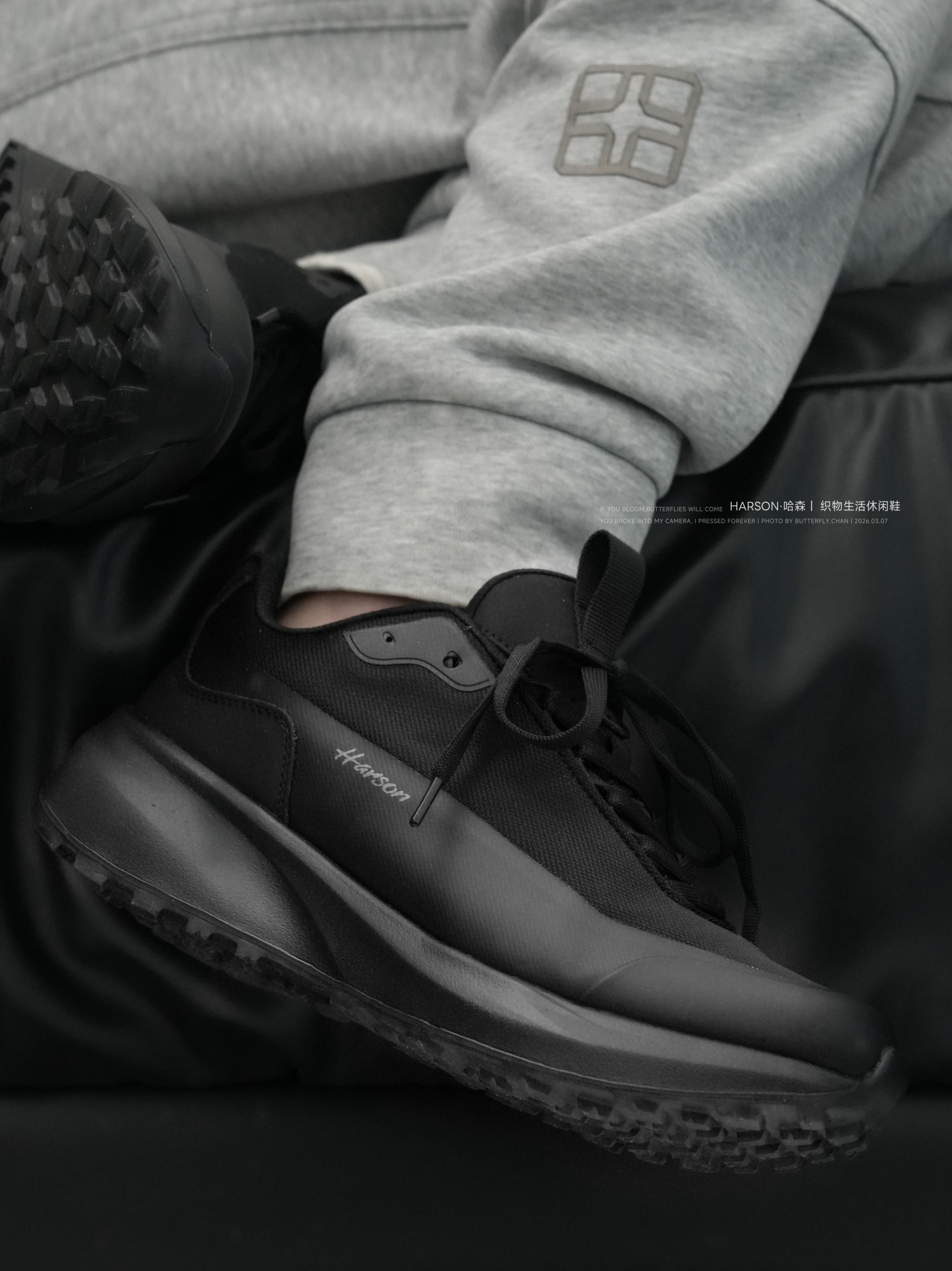 有没有人跟我一样 上班想穿得利落点 又不想穿皮鞋👞磨🦶,穿运动👟又太随便 这双#HARSON/哈森 织物生活休闲👟直接把我拿捏了 - 全黑织物+橡胶头 看着挺“硬”的,其实上🦶挺舒服的(软软的) 挤地铁、逛街走路🚶🏻♀️都不磨🦶 👟口包得舒服 不磨🦶踝,穿船袜也不会掉跟 还能悄悄增高5.5cm(秒变1.8😂) - 👟面是防水织物 下雨天踩水也不怕湿,脏了拿湿巾一擦就干净了 全黑配色真的一点都不挑...