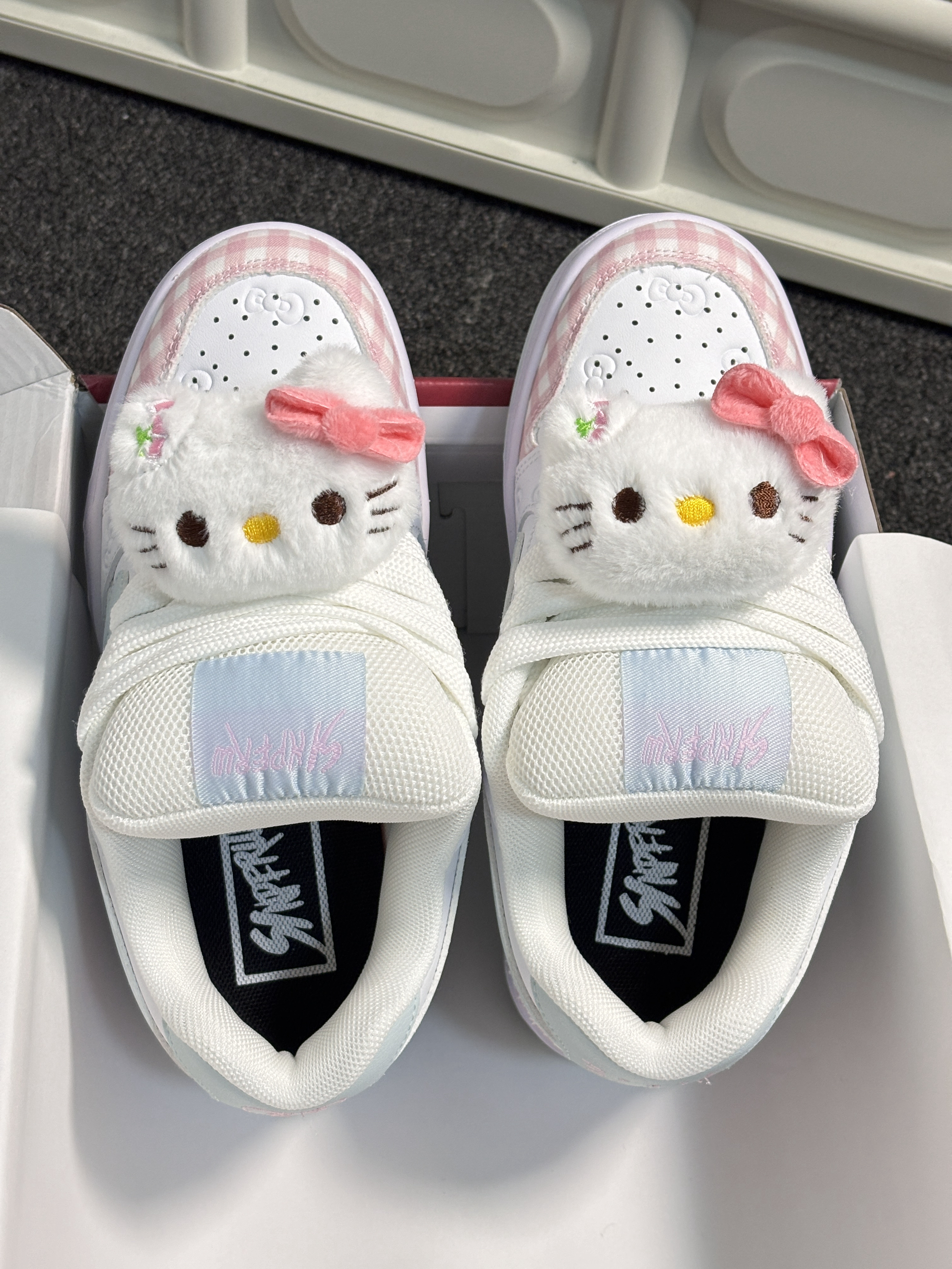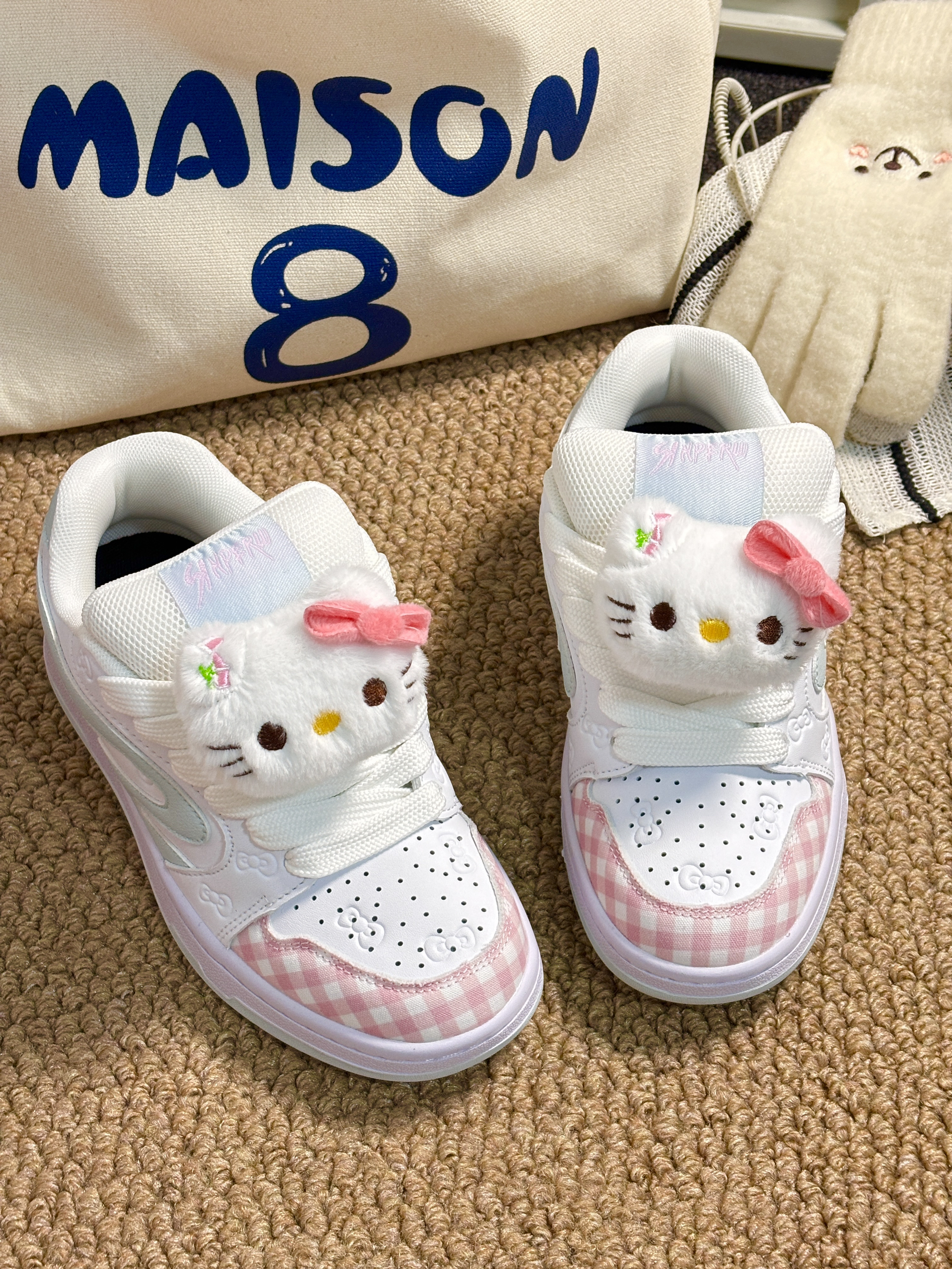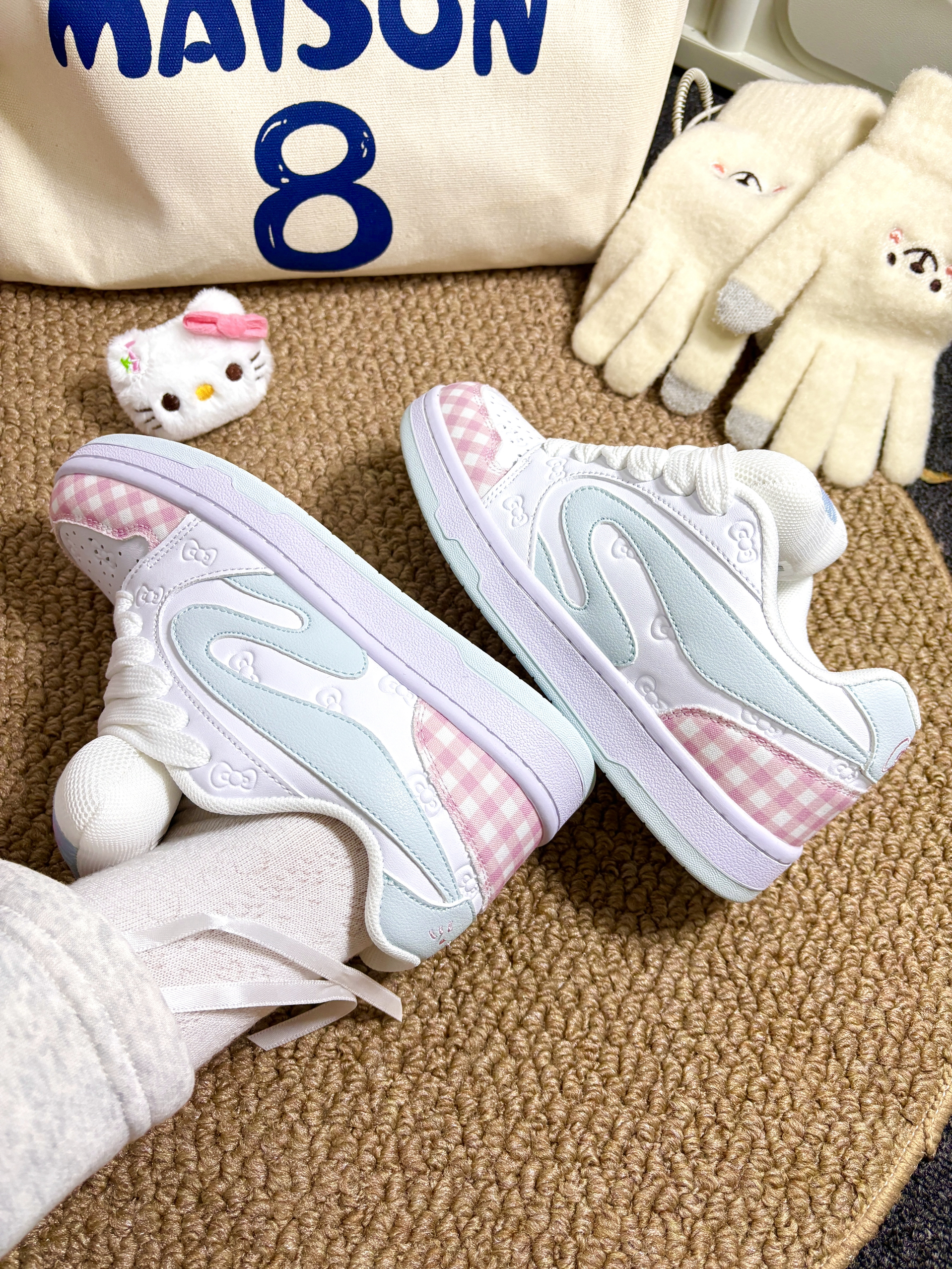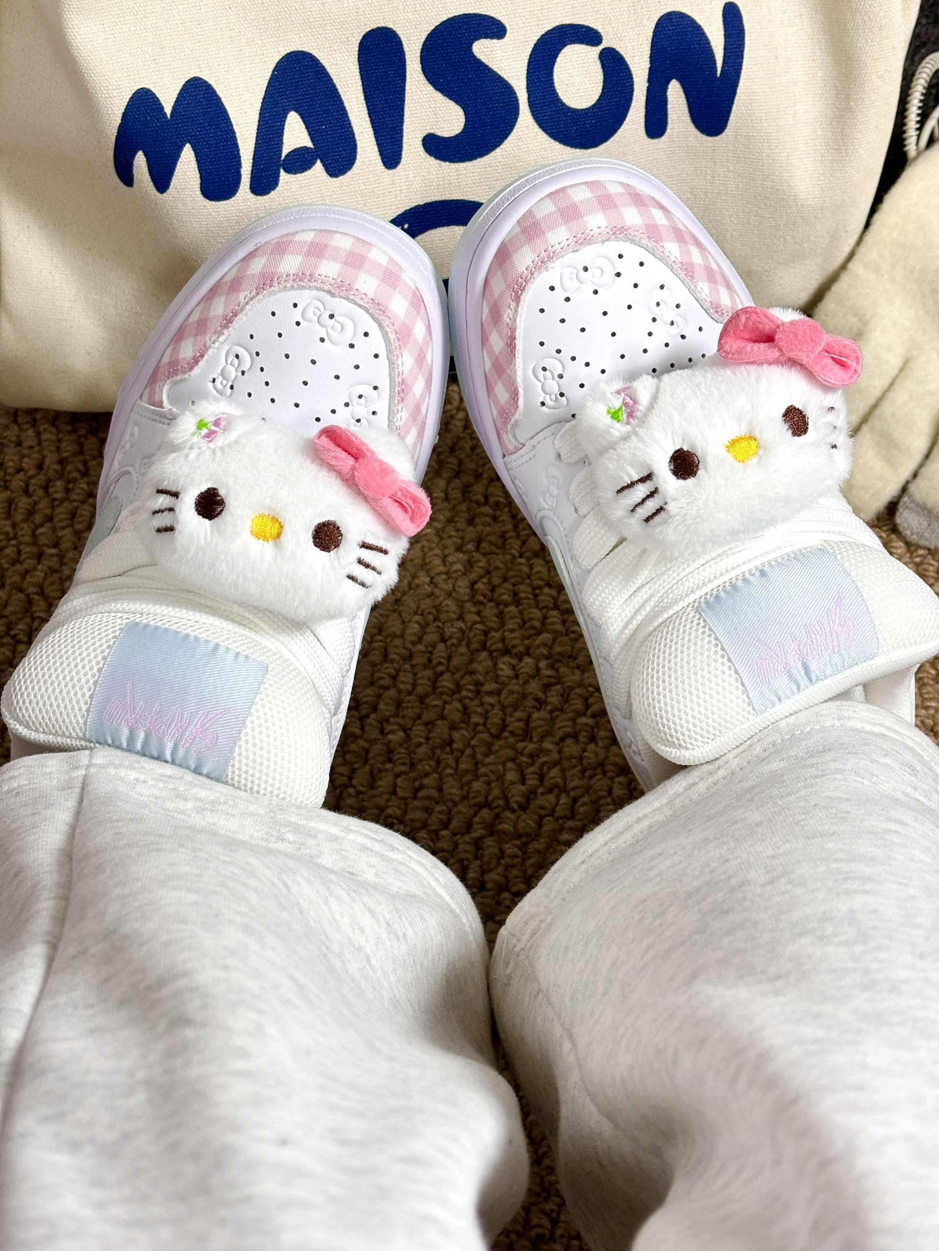 配色很温柔,加上毛茸茸的Hello Kitty🎀太可爱啦!我喜欢格纹、鞋侧的小印花,做得蛮精致✨鞋子挺百搭,配裙子、裤子都好看。而且鞋子不重,走路也蛮舒服☁️