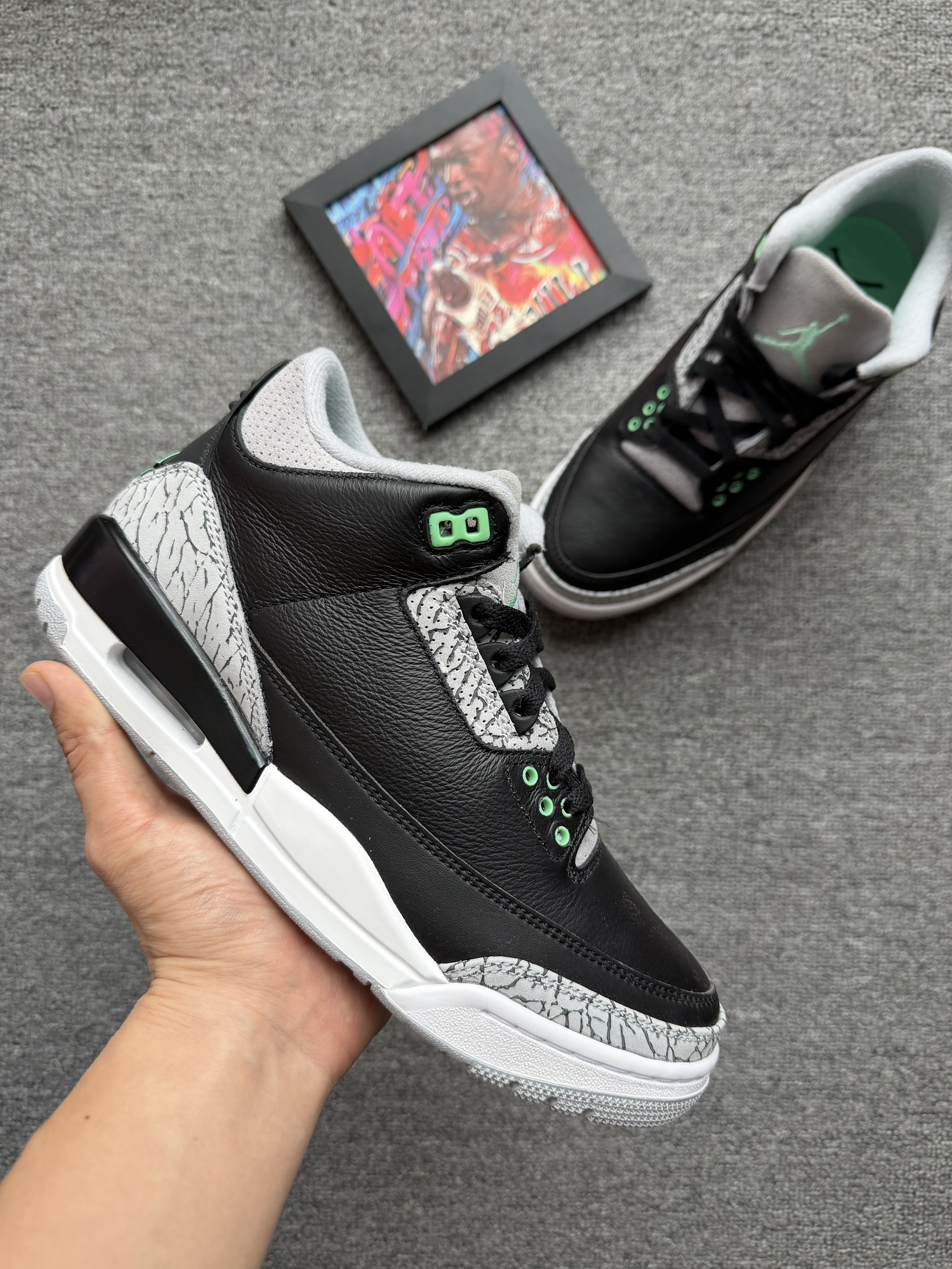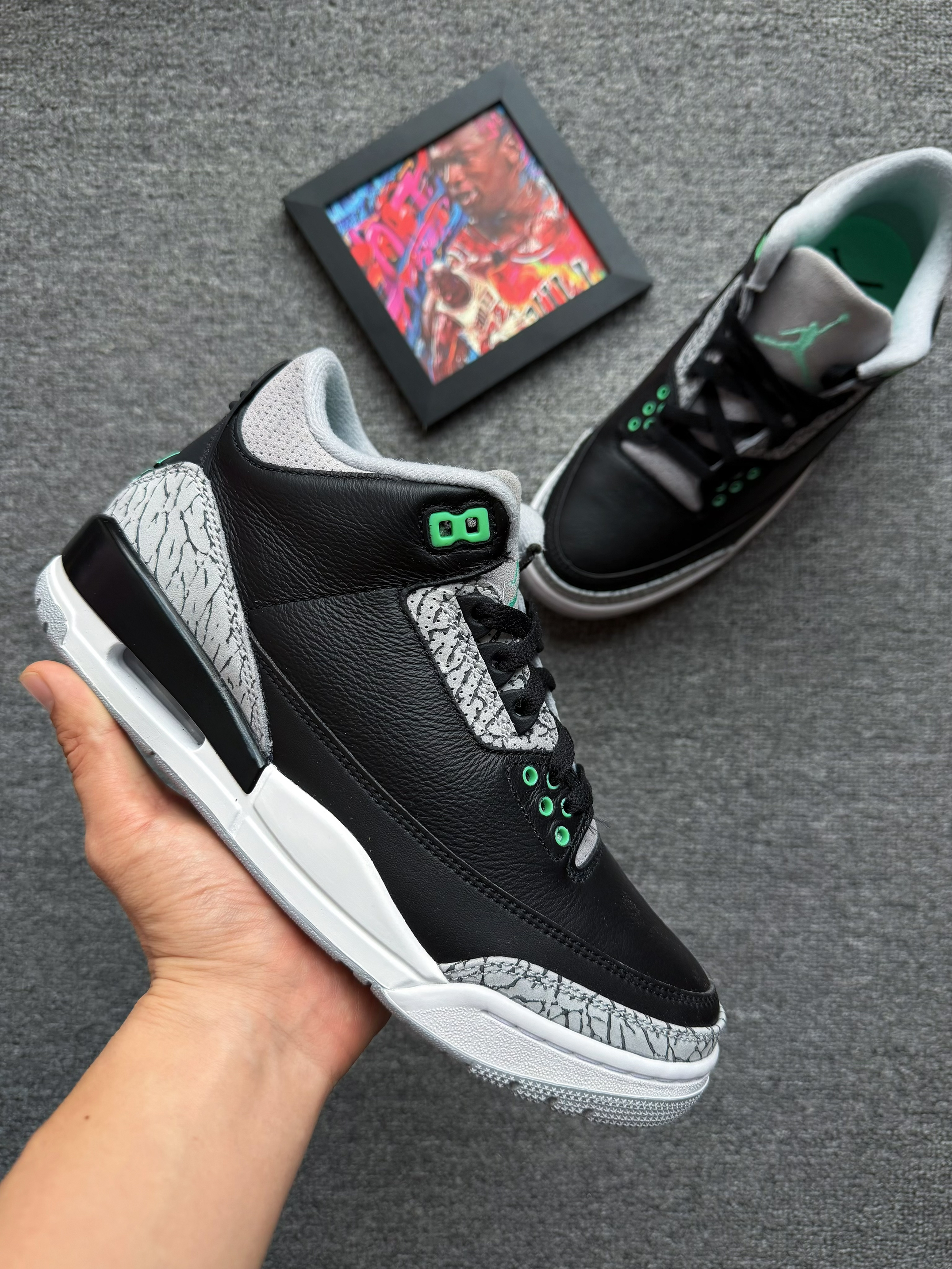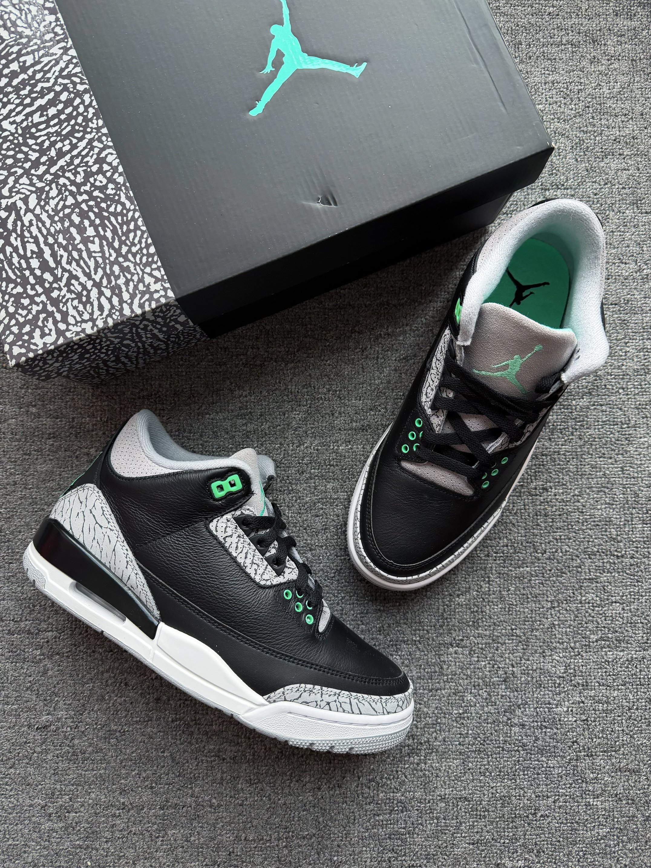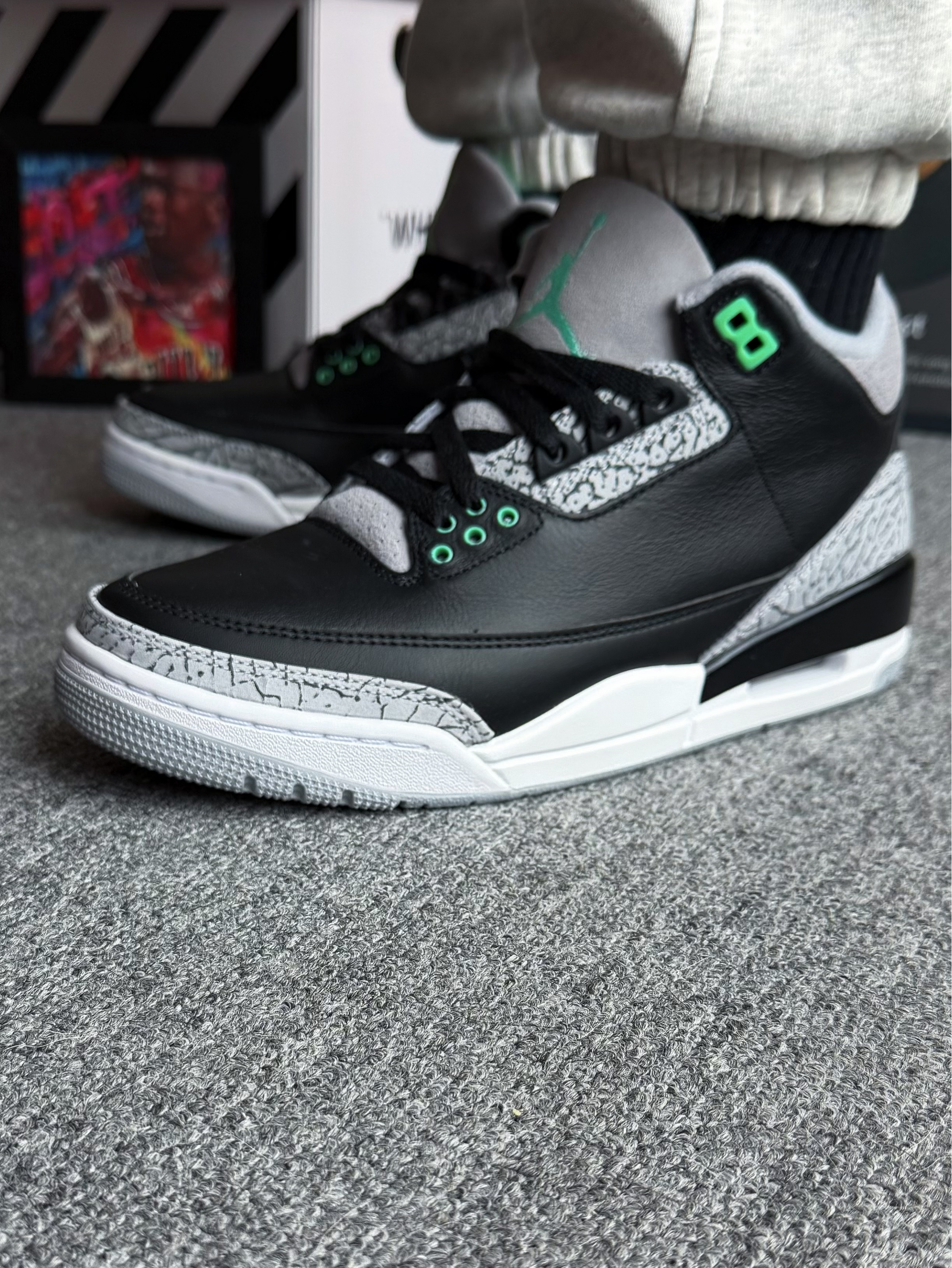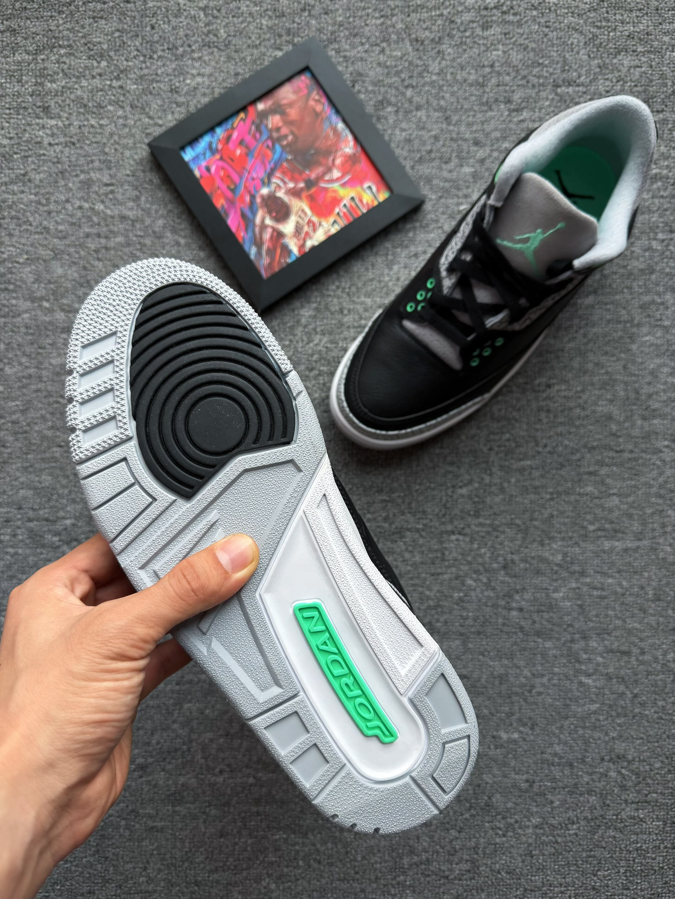 - 元气满满🤠 选择 Jordan 「AJ3 黑绿配色」 外观:经典水泥爆裂纹 搭配 绿色点缀 材质:鞋面材质为皮革材质 防雨水 脚感:增高约 3.5 cm 脚感偏硬 尺码:正常选择 鞋楦舒适 适配:上班族 & 学生党 经典鞋型 x 浅绿色装饰 很有春天的感觉 脚感偏硬 不适合长距离通勤 日常穿搭 或 压马路 都很合适 关键是AJ目前的性价比真的很高❗️ 身高|体重|鞋码 :172 | 6...