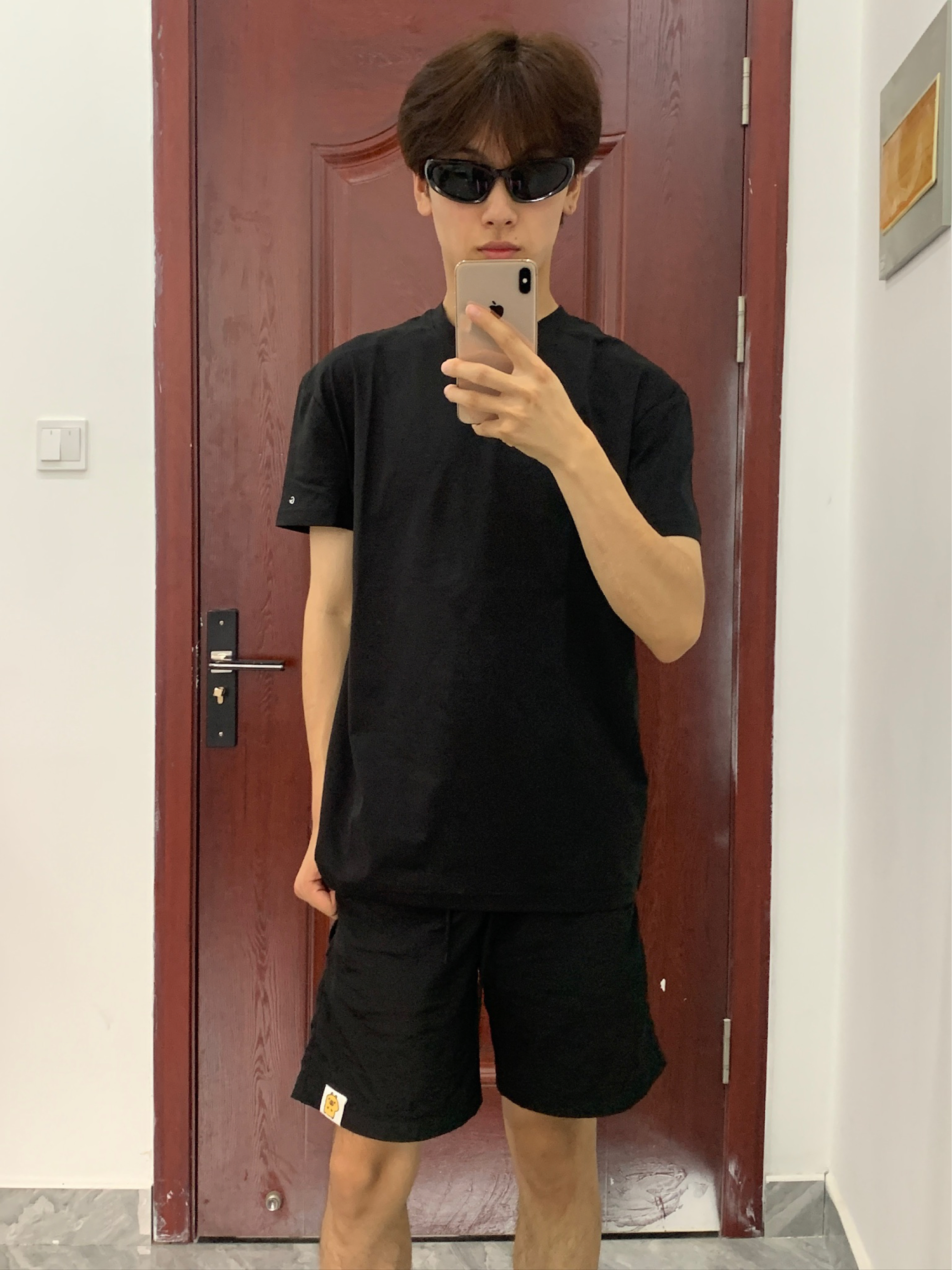 这件黑T真的是我近期最爱🥹 面料是那种软软的棉,贴身穿一点都不扎,夏天出门逛一下午也不闷汗。搭配黑色短裤+黑鞋,全黑look直接拉满,懒得想搭配的时候套上就走,懒人福音无疑了🤙 日常通勤、约会都能穿,性价比拉满!