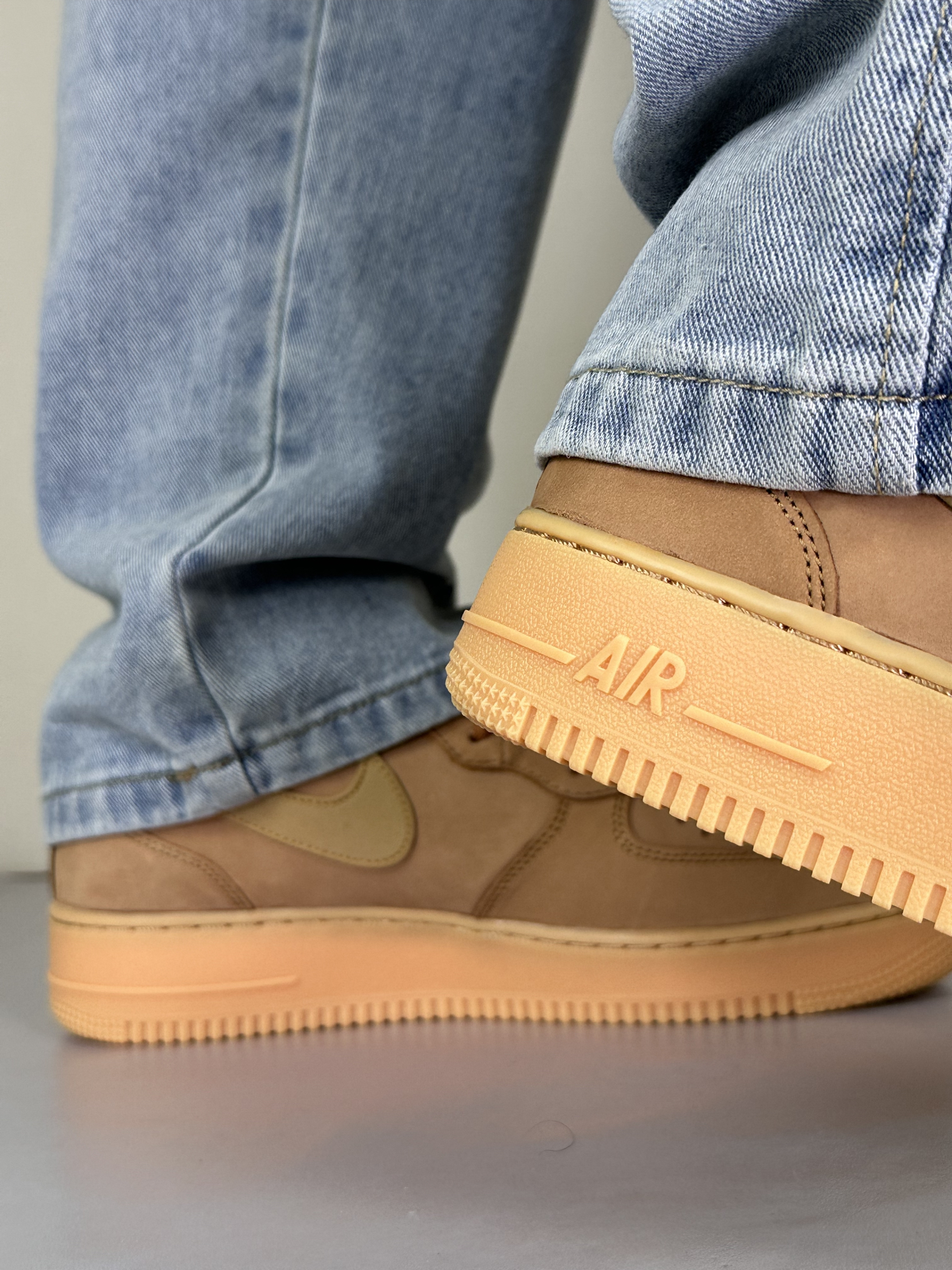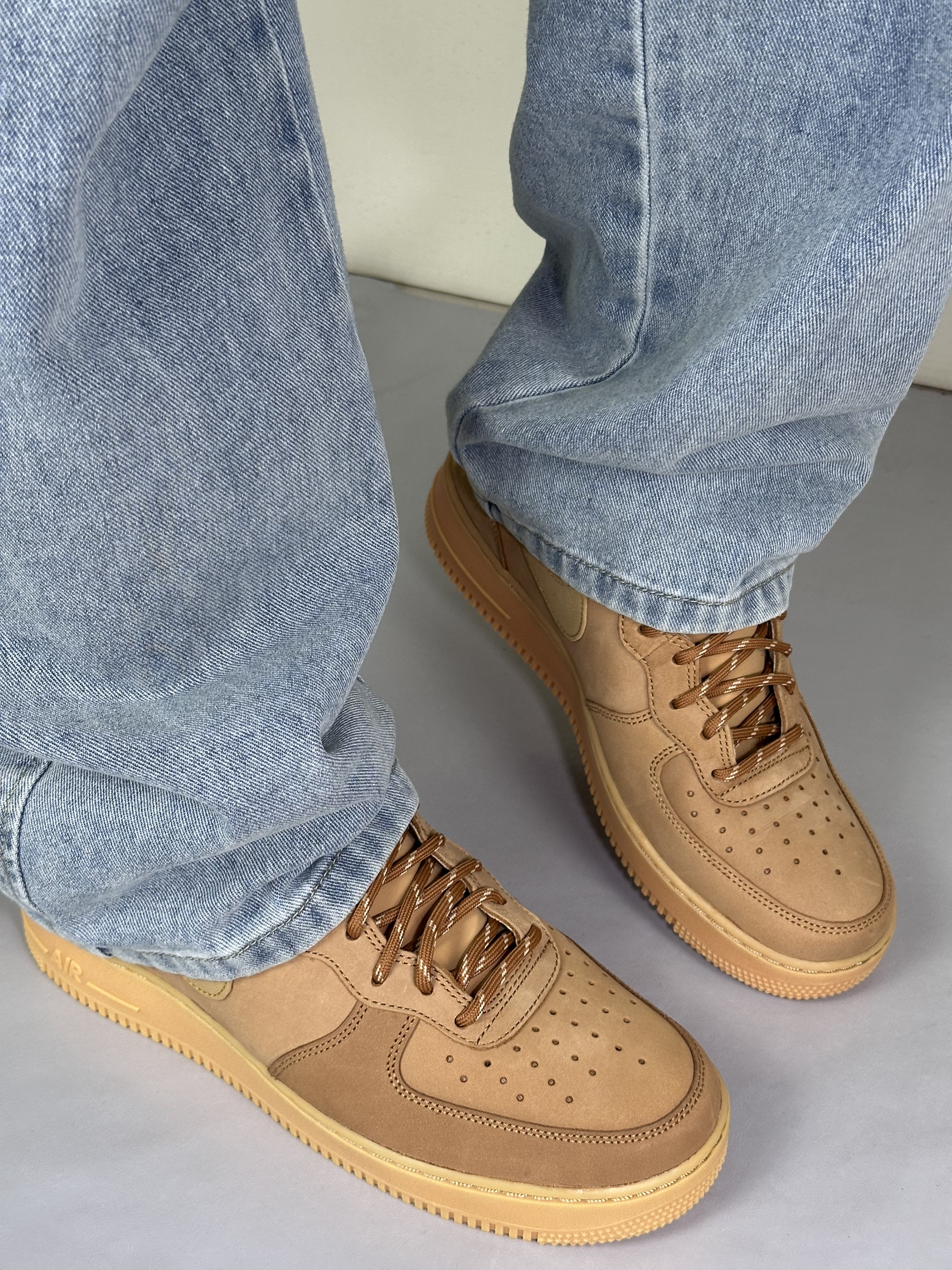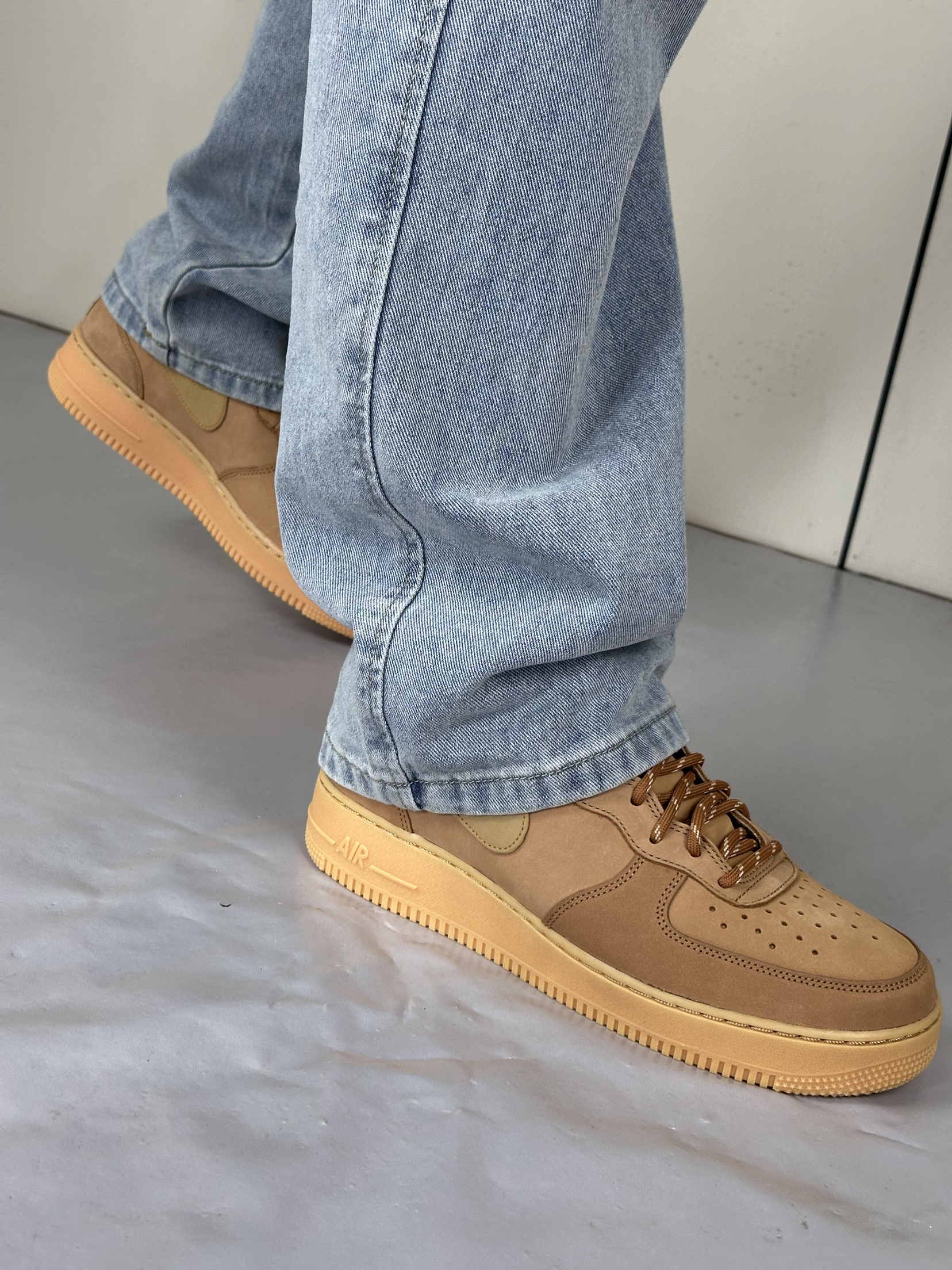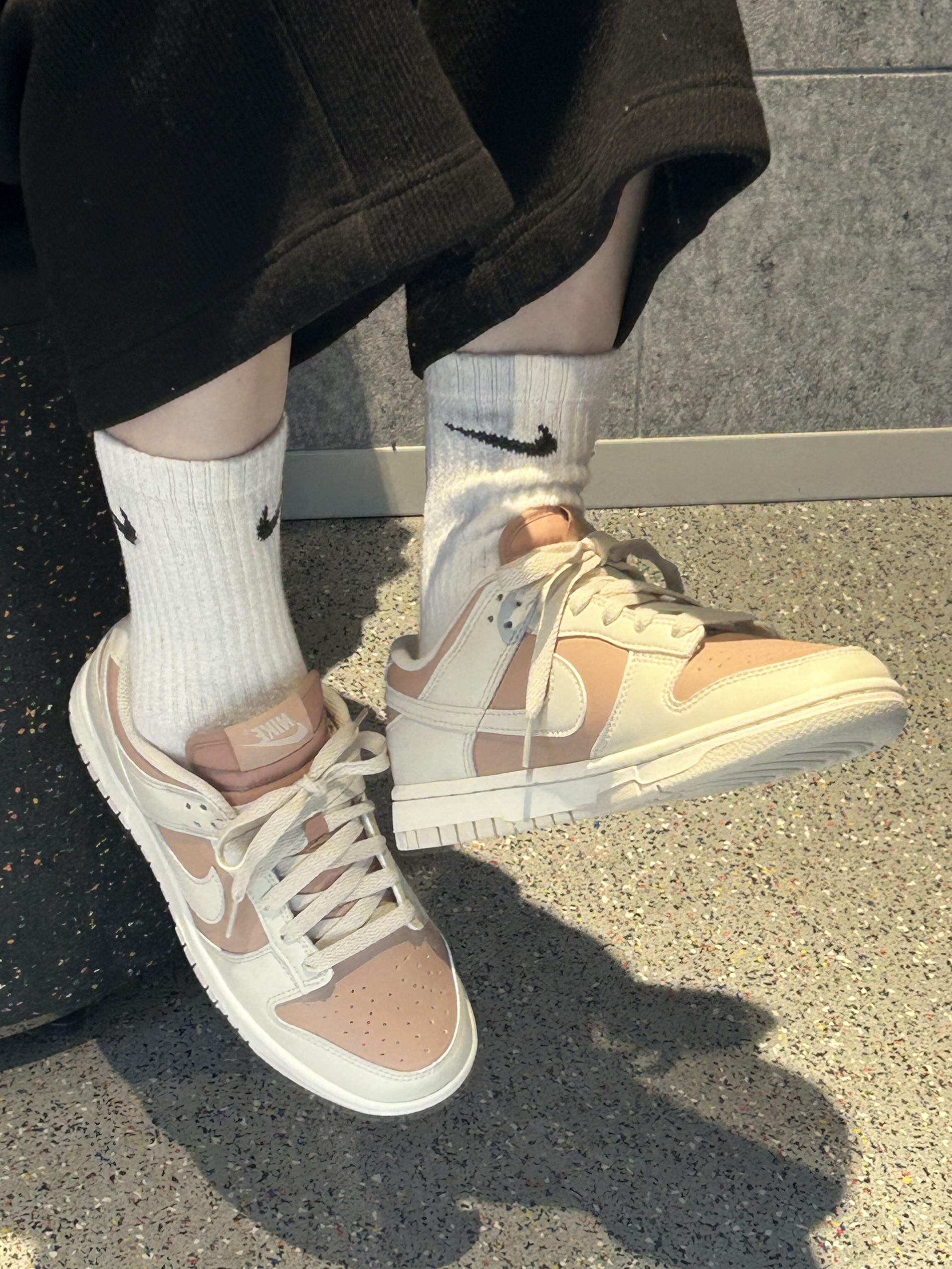 谁懂啊,这双小麦色 AF1 真的把春日氛围感焊在脚上。不像纯白那么挑人,暖棕调跟春天的阳光、牛仔裤的浅蓝太搭了,走在风里都像裹了层温柔的滤镜。麂皮质感摸起来糯叽叽的,配直筒牛仔裤,裤脚堆在鞋帮上,松弛感直接拉满。Air 气垫踩下去软乎乎的,逛一下午公园也不觉得累,不用刻意凹造型,往樱花树底下一站,随便拍都像日剧里的少年感,春天的氛围感,原来一双舒服的旧鞋就能拿捏。