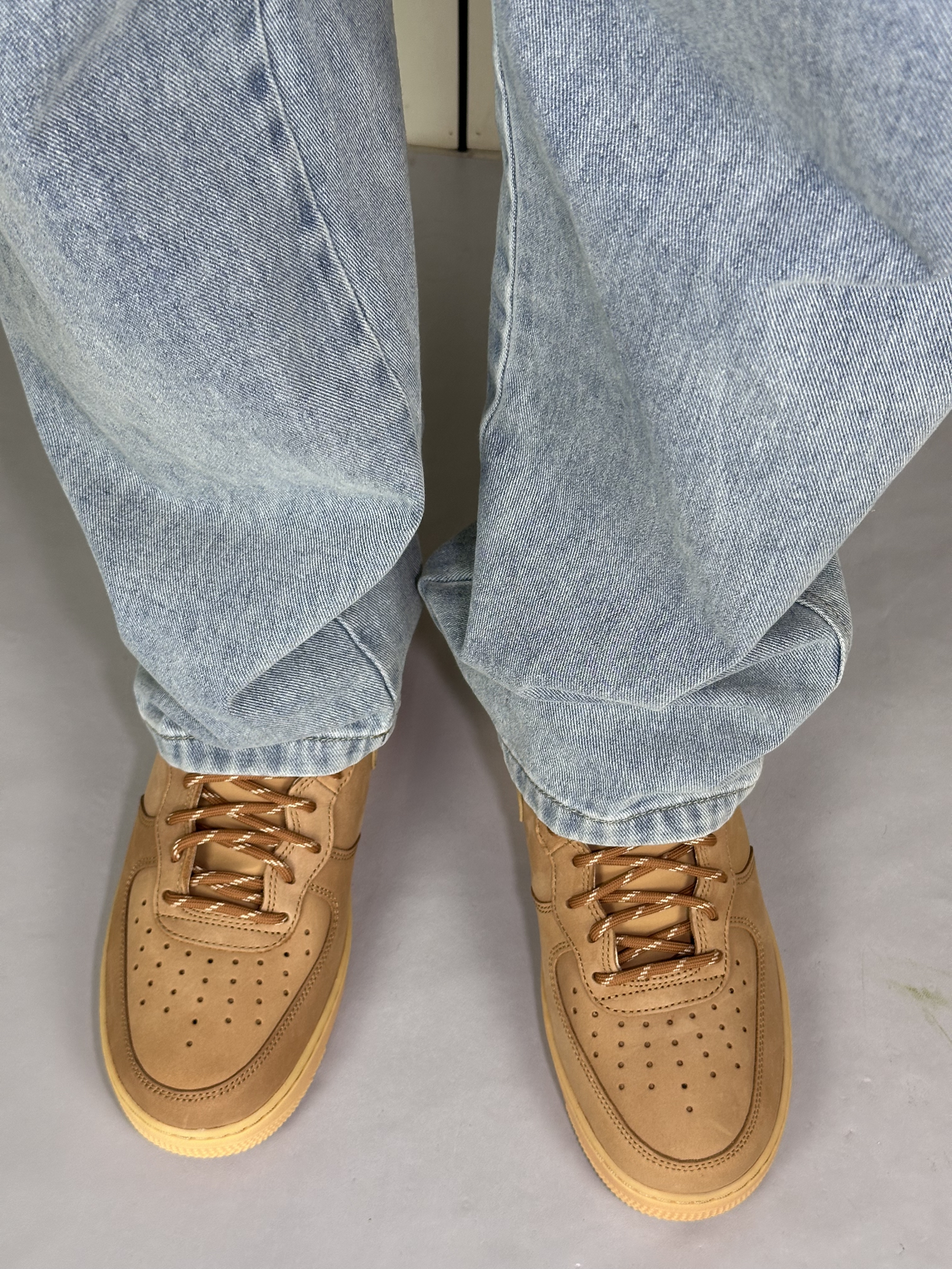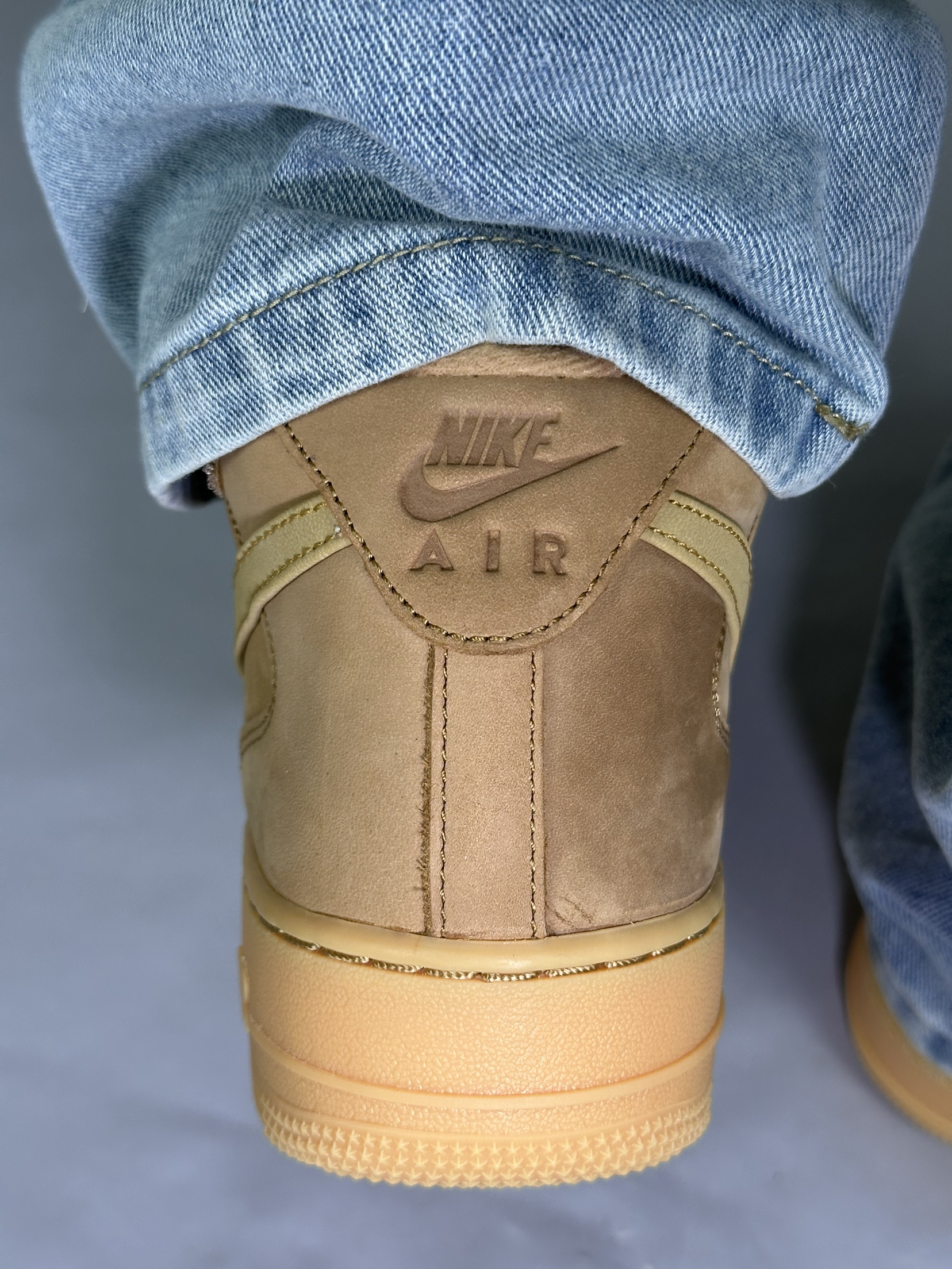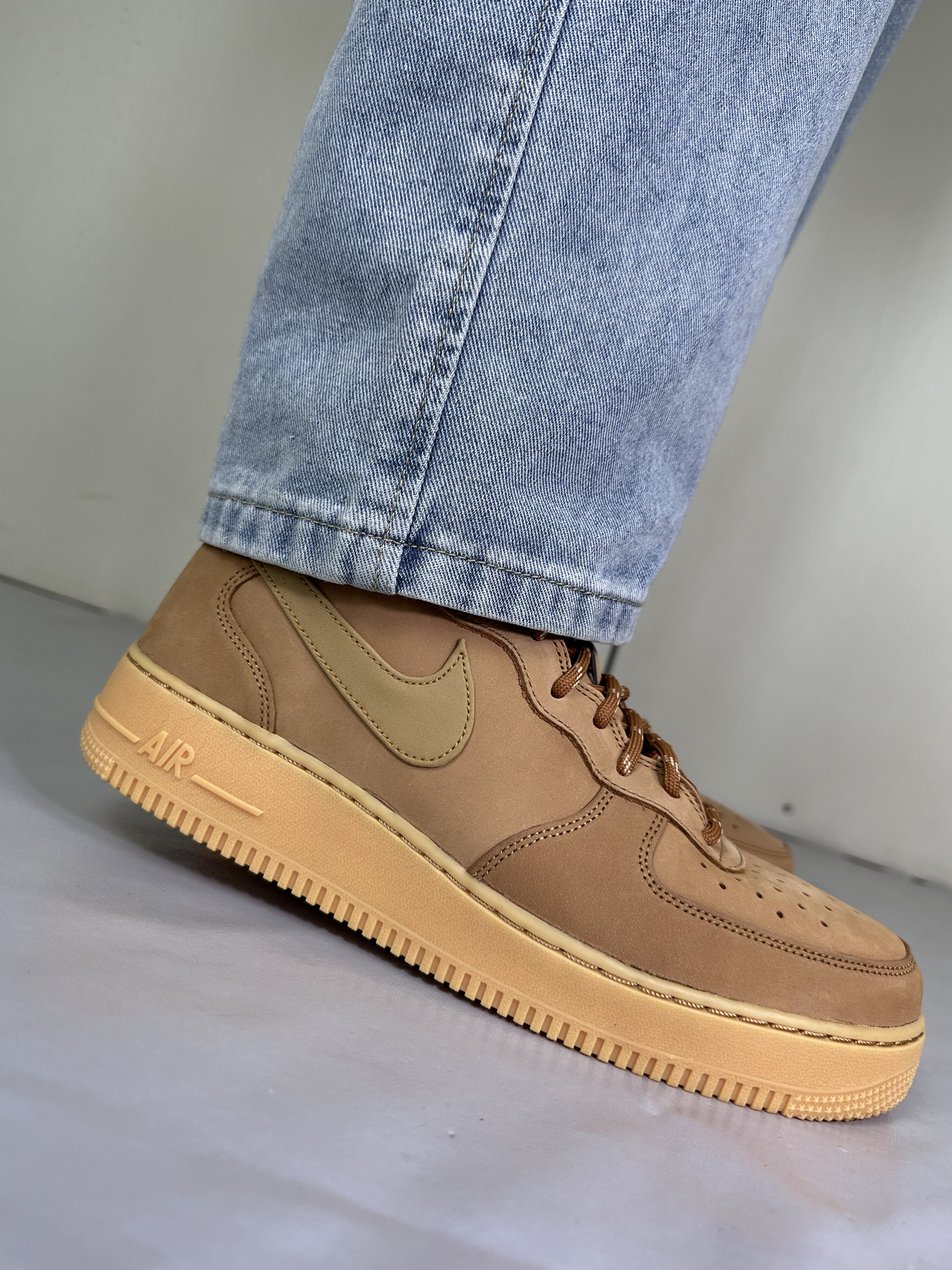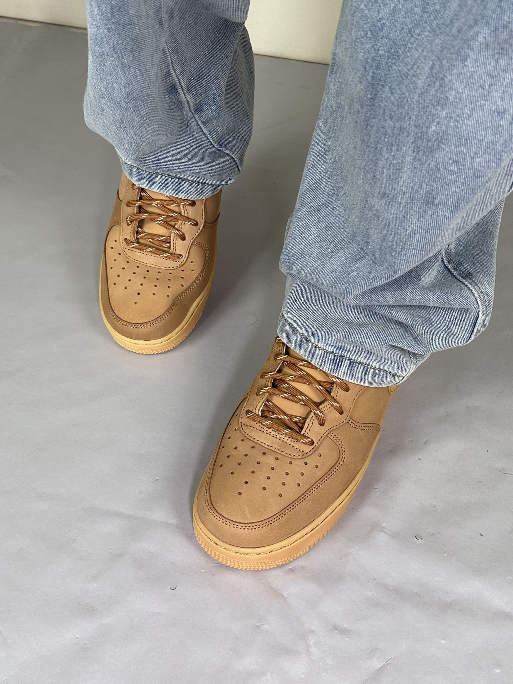 谁懂啊,这双小麦色 AF1 真的把春日氛围感焊在脚上。不像纯白那么挑人,暖棕调跟春天的阳光、牛仔裤的浅蓝太搭了,走在风里都像裹了层温柔的滤镜。麂皮质感摸起来糯叽叽的,配直筒牛仔裤,裤脚堆在鞋帮上,松弛感直接拉满。Air 气垫踩下去软乎乎的,逛一下午公园也不觉得累,不用刻意凹造型,往樱花树底下一站,随便拍都像日剧里的少年感,春天的氛围感,原来一双舒服的旧鞋就能拿捏。