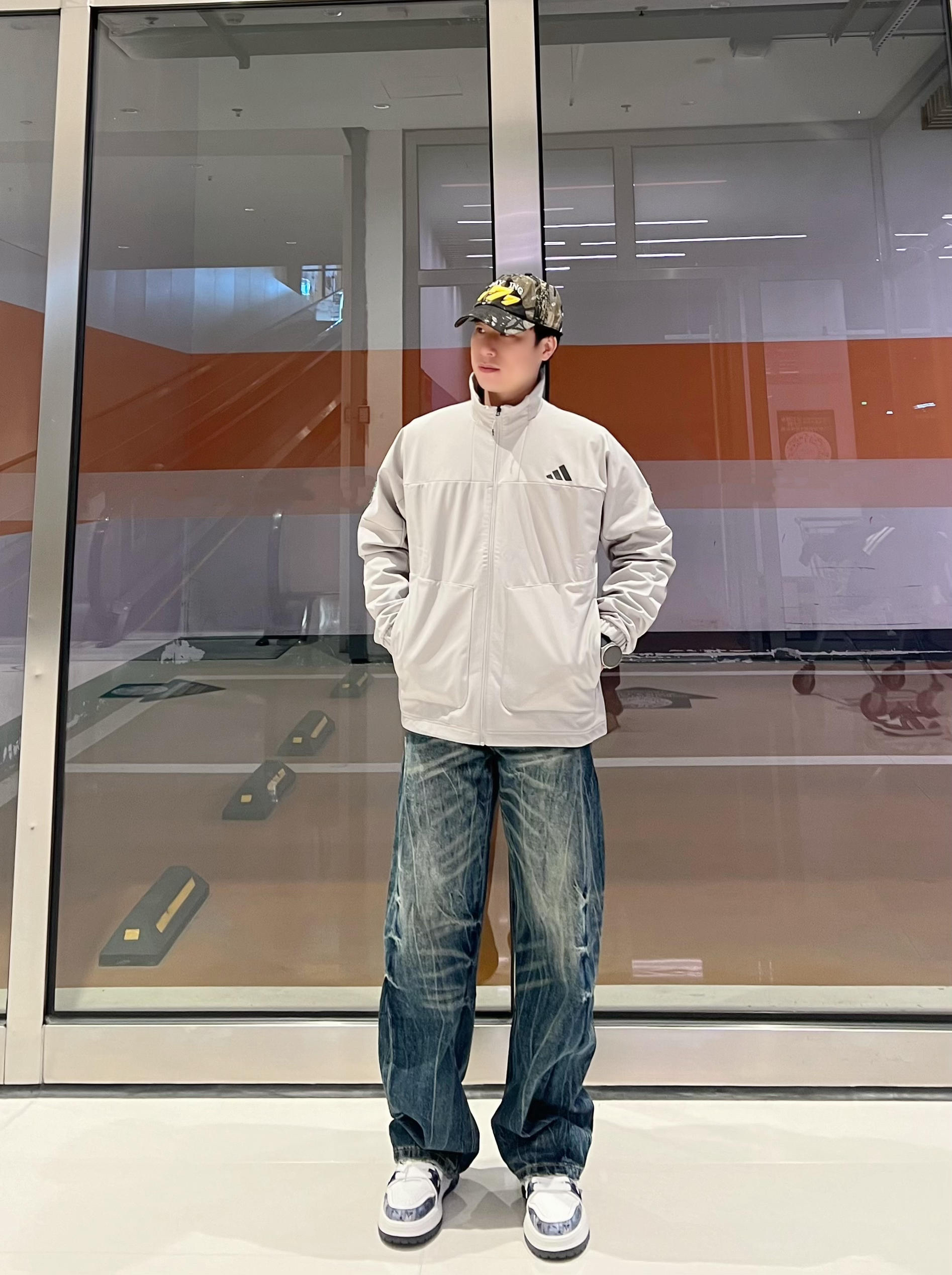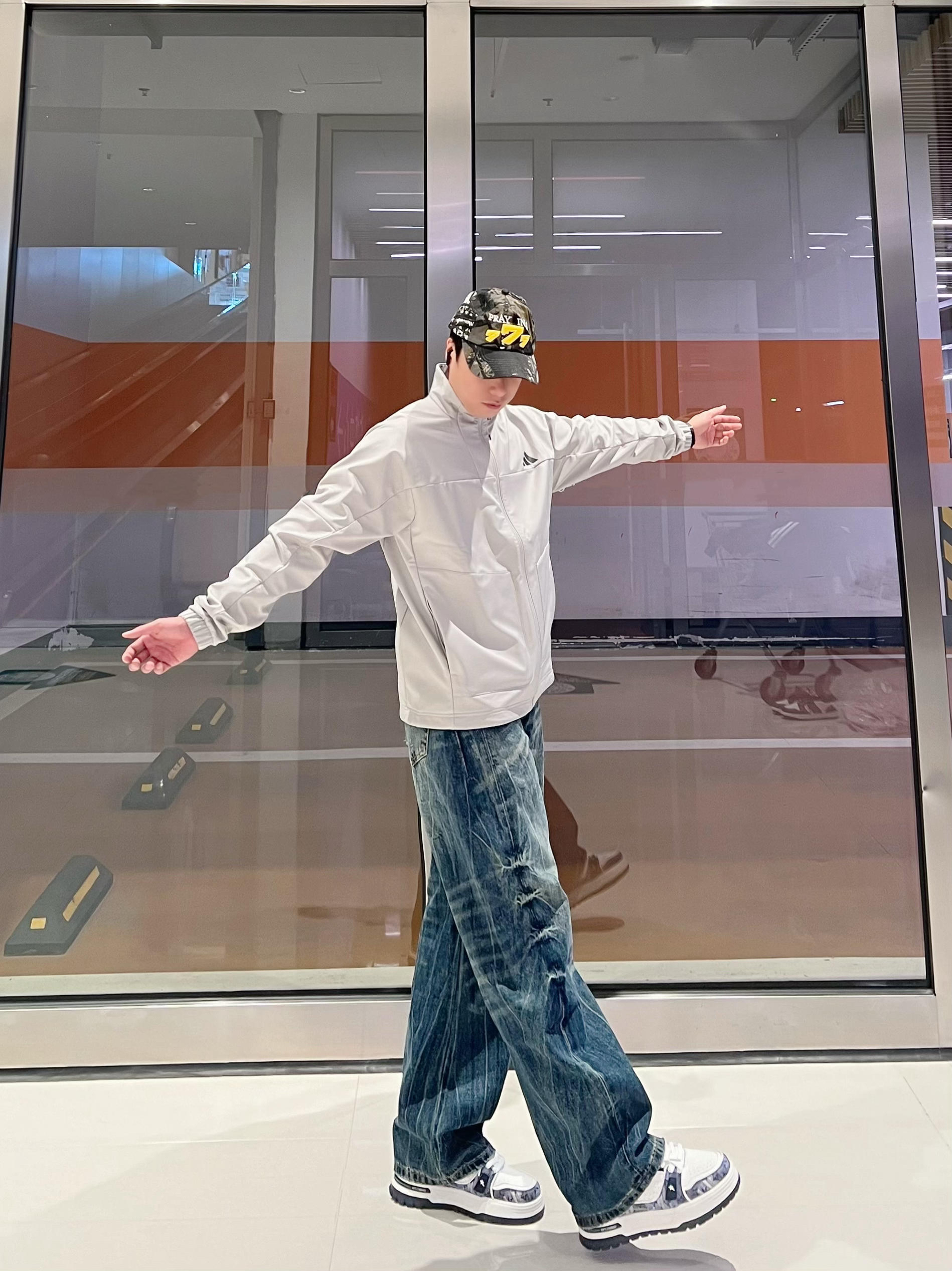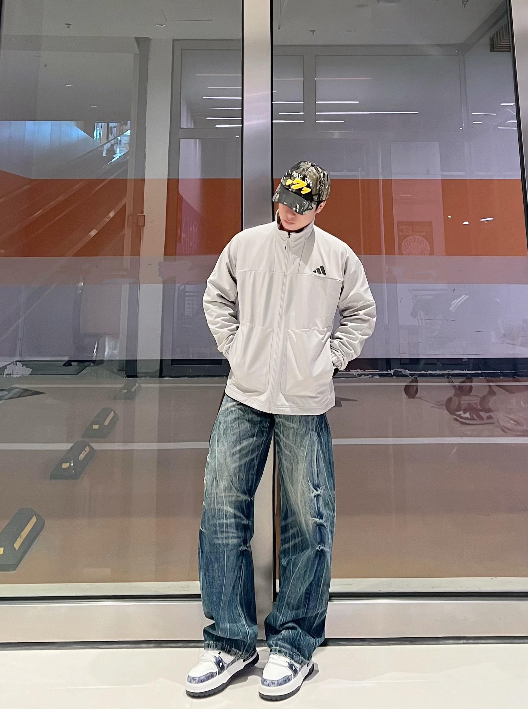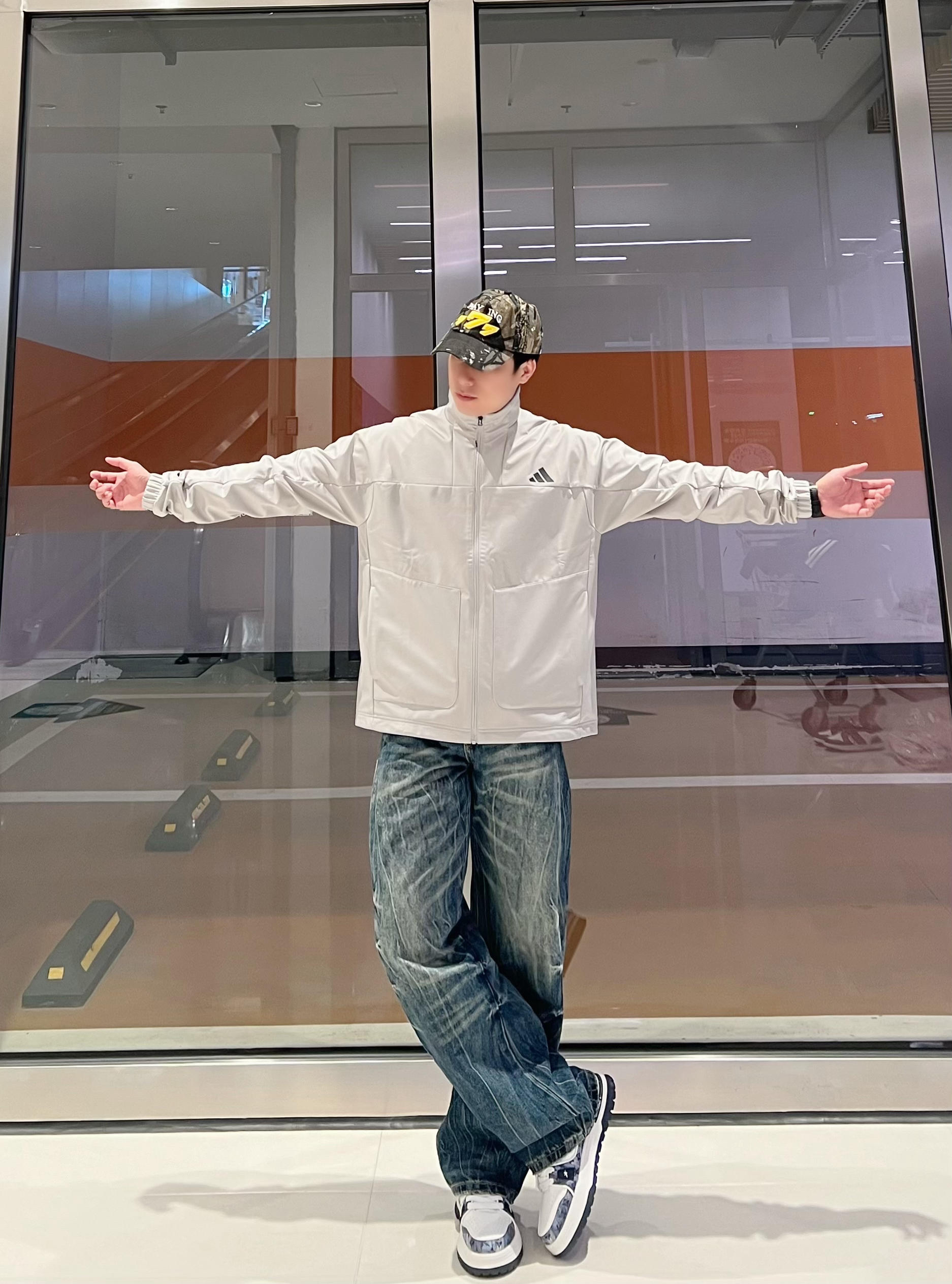开春男生穿搭不用复杂🌿一套干净利落的搭配就能hold住通勤、约会、逛街全场景🔥 浅灰色立领外套自带低饱和度质感♨️不挑肤色不挑风格,日常拉上拉链穿利落有型,内搭白T也能轻松穿出层次感✨ 搭配水洗做旧阔腿牛仔裤,中和了外套的正式感,多了几分松弛感😎 整套穿搭无多余设计✅日常出门不用费脑搭配👟鞋子搭板鞋、运动鞋都适配,实穿性直接拉满🥰