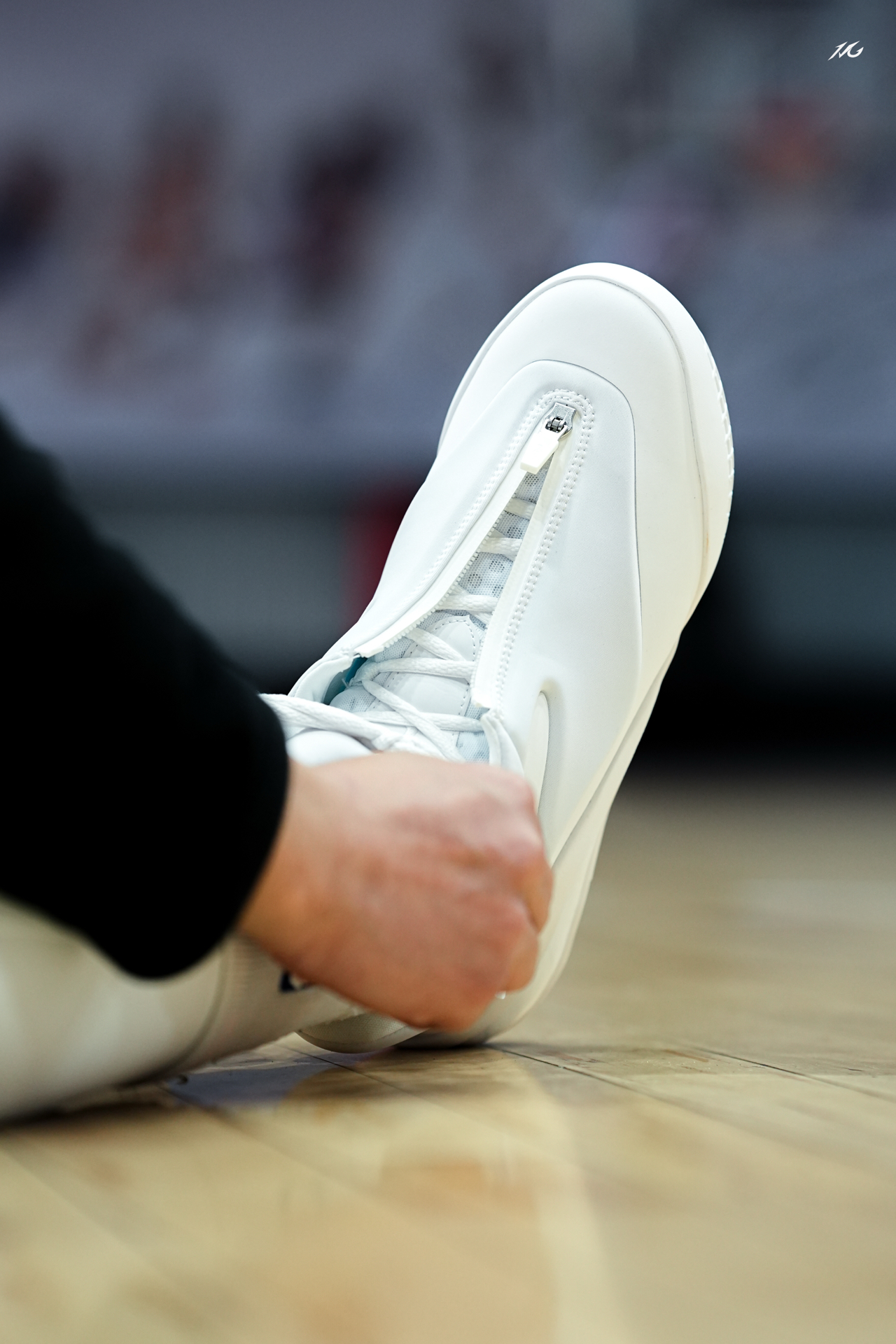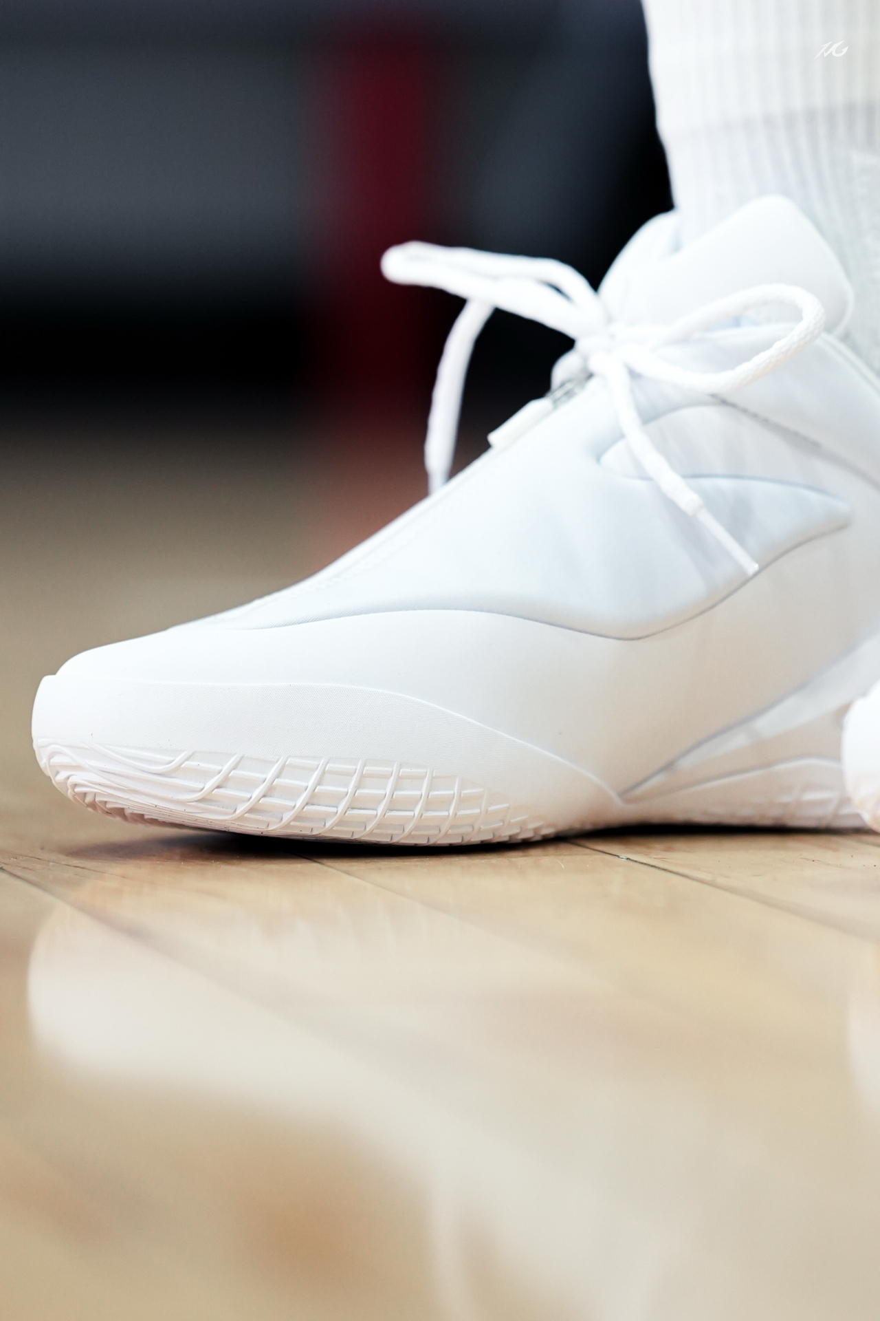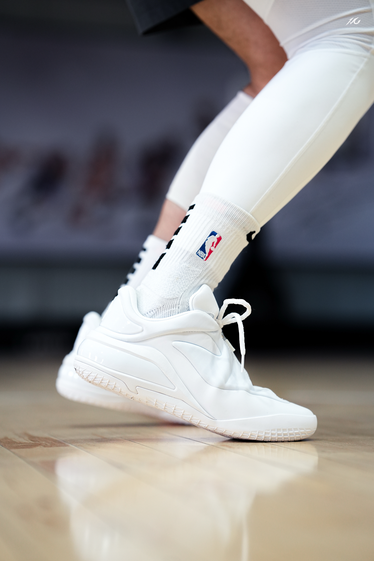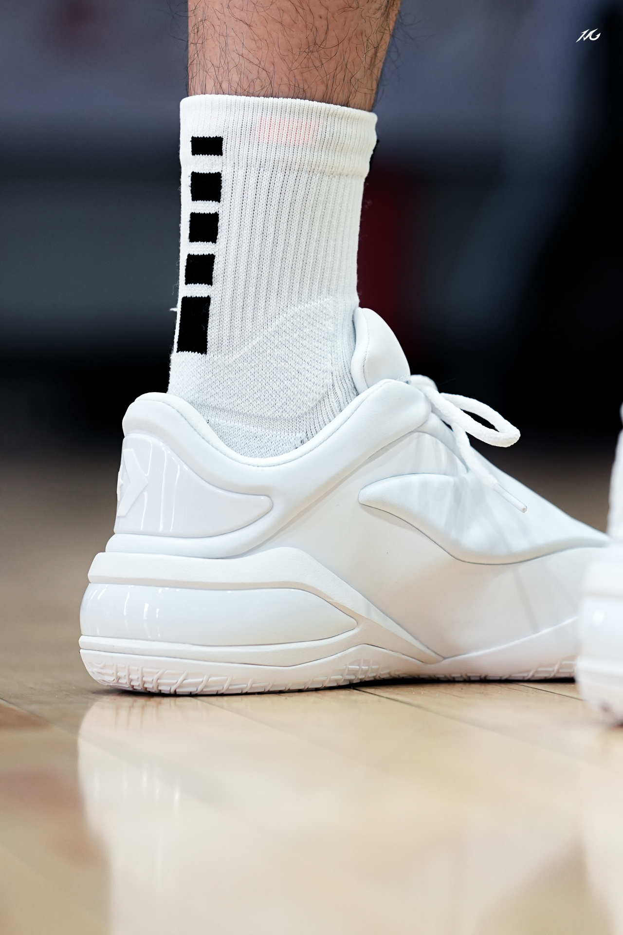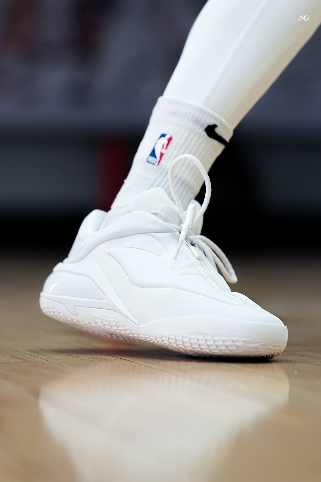 纯白的球鞋就好比青春的“白月光”! 初次上脚的美好谁懂啊?! SGA SHAI001纯白配色干干净净,上脚帅帅气气,我这么一搭是不是球场白马王子啊? 但是被踩几脚真的这场球的心情就没了,又爱又恨的白色球鞋,懒人勿碰! #新鞋零时差 #SHAI001白色发售 #此人鞋商极高