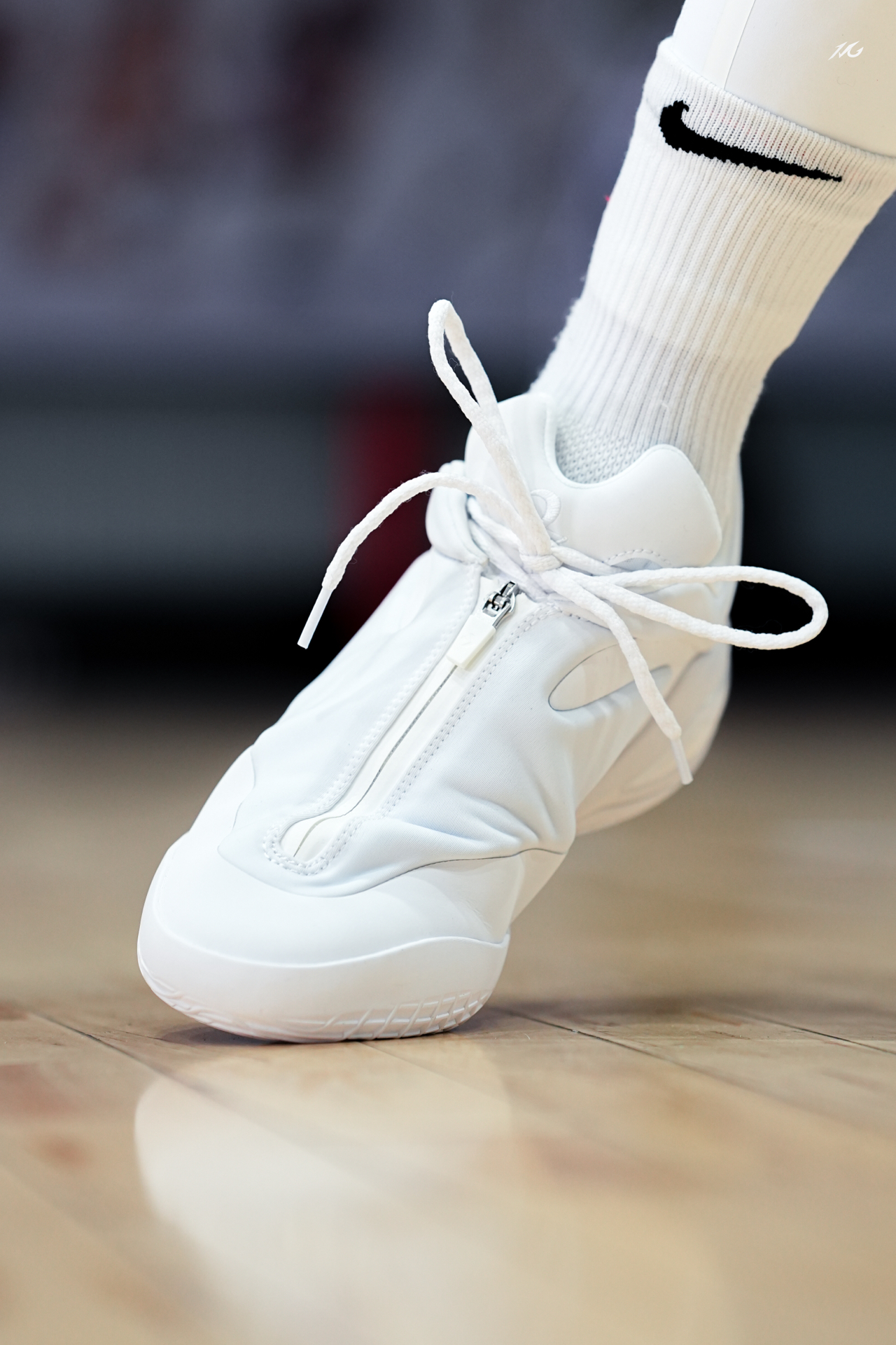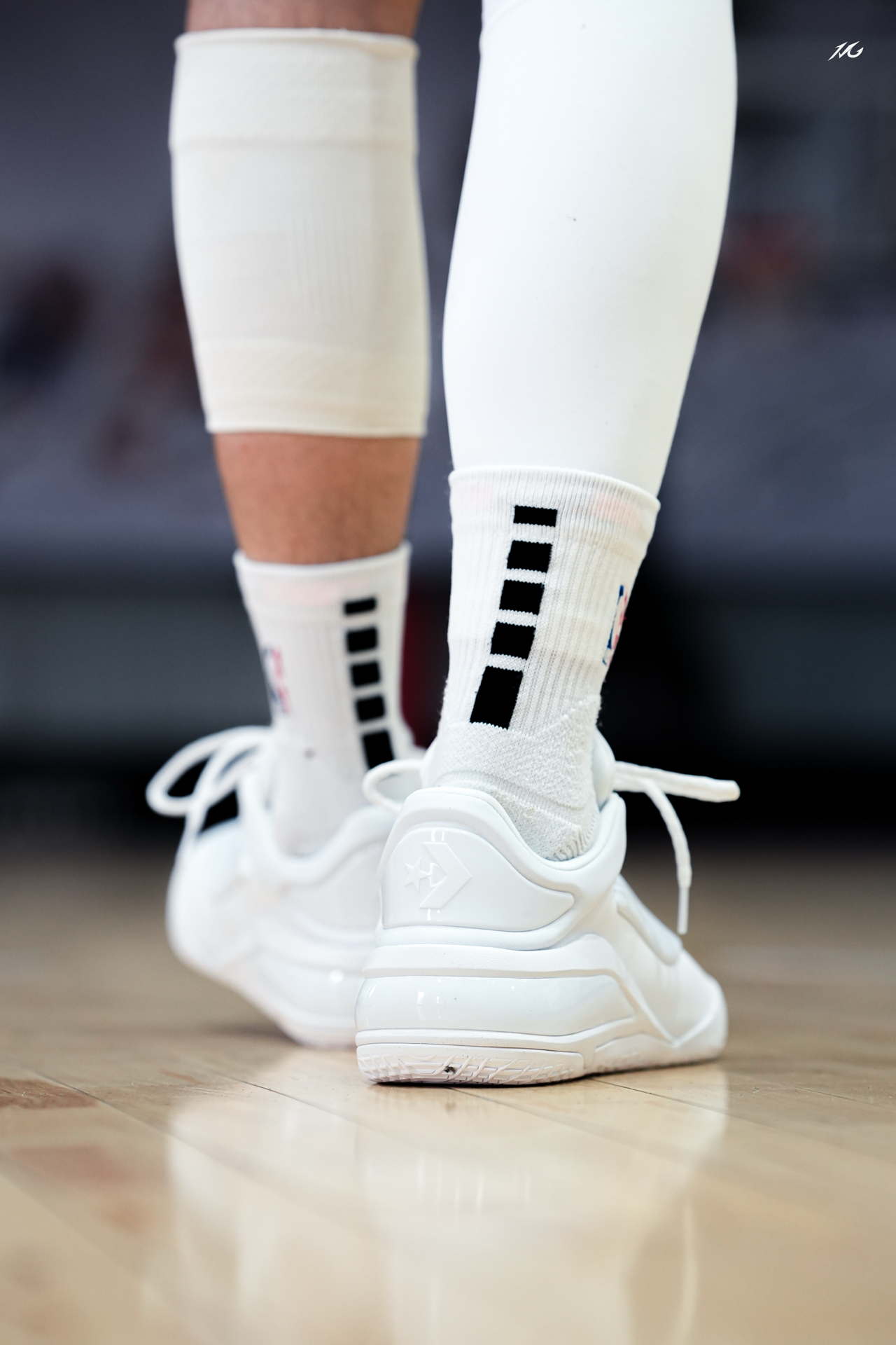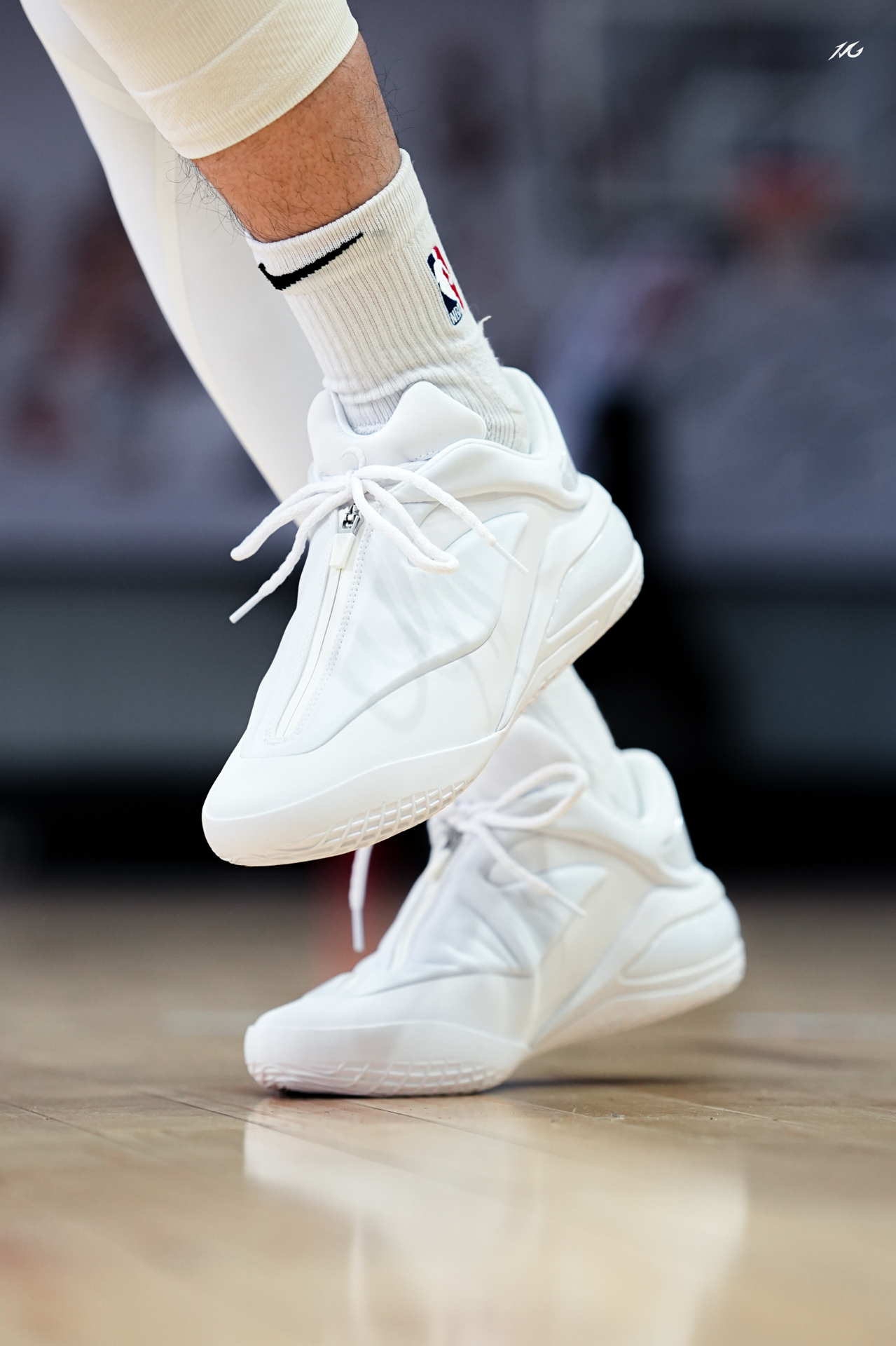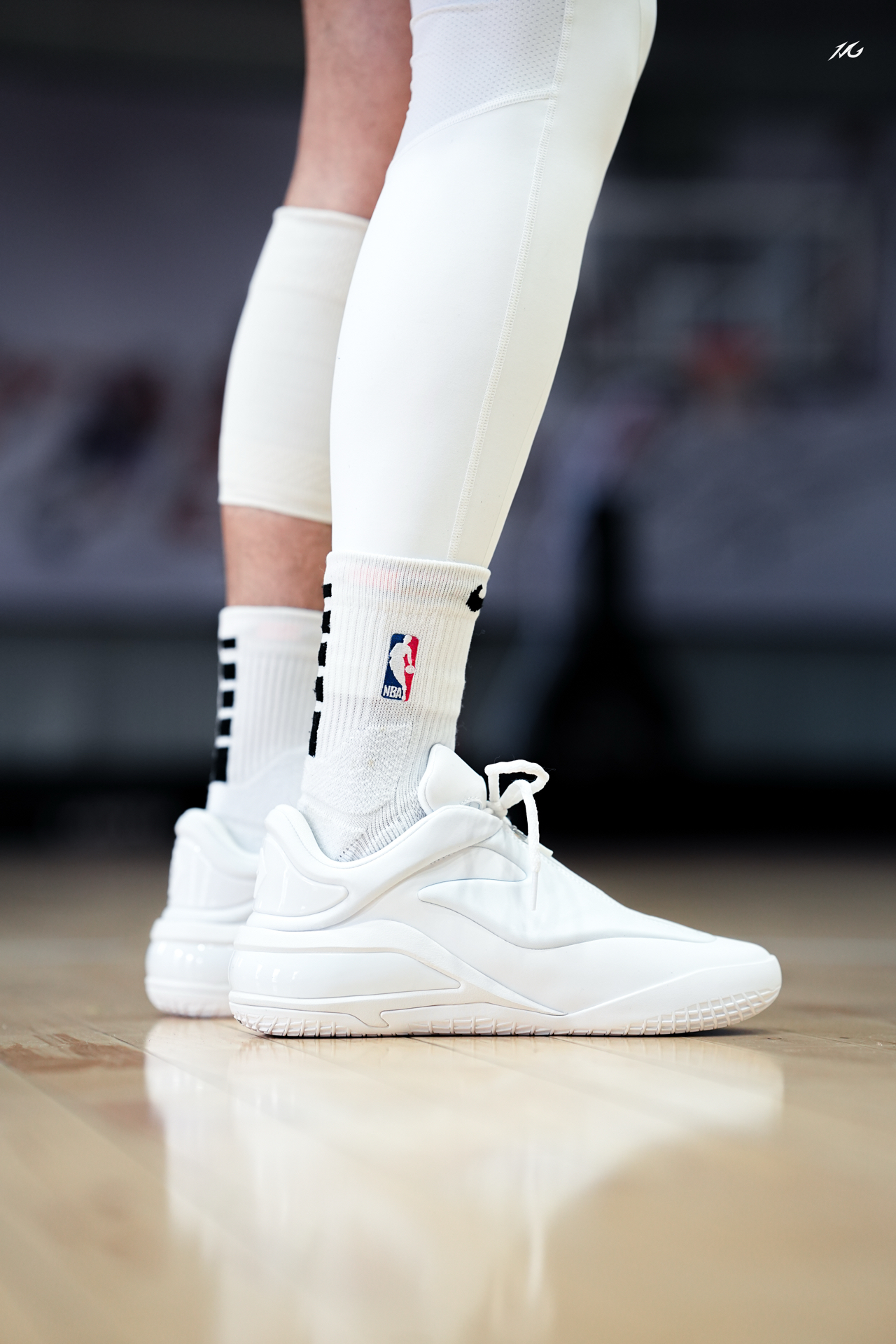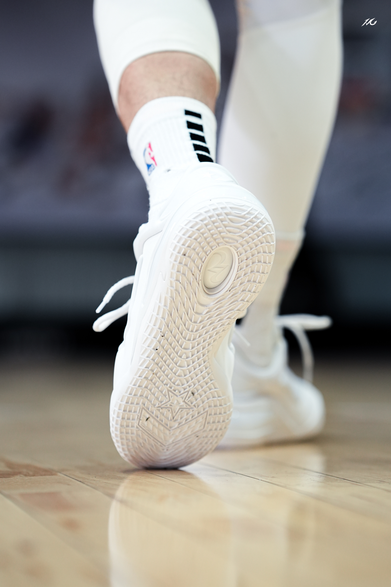 纯白的球鞋就好比青春的“白月光”! 初次上脚的美好谁懂啊?! SGA SHAI001纯白配色干干净净,上脚帅帅气气,我这么一搭是不是球场白马王子啊? 但是被踩几脚真的这场球的心情就没了,又爱又恨的白色球鞋,懒人勿碰! #新鞋零时差 #SHAI001白色发售 #此人鞋商极高
