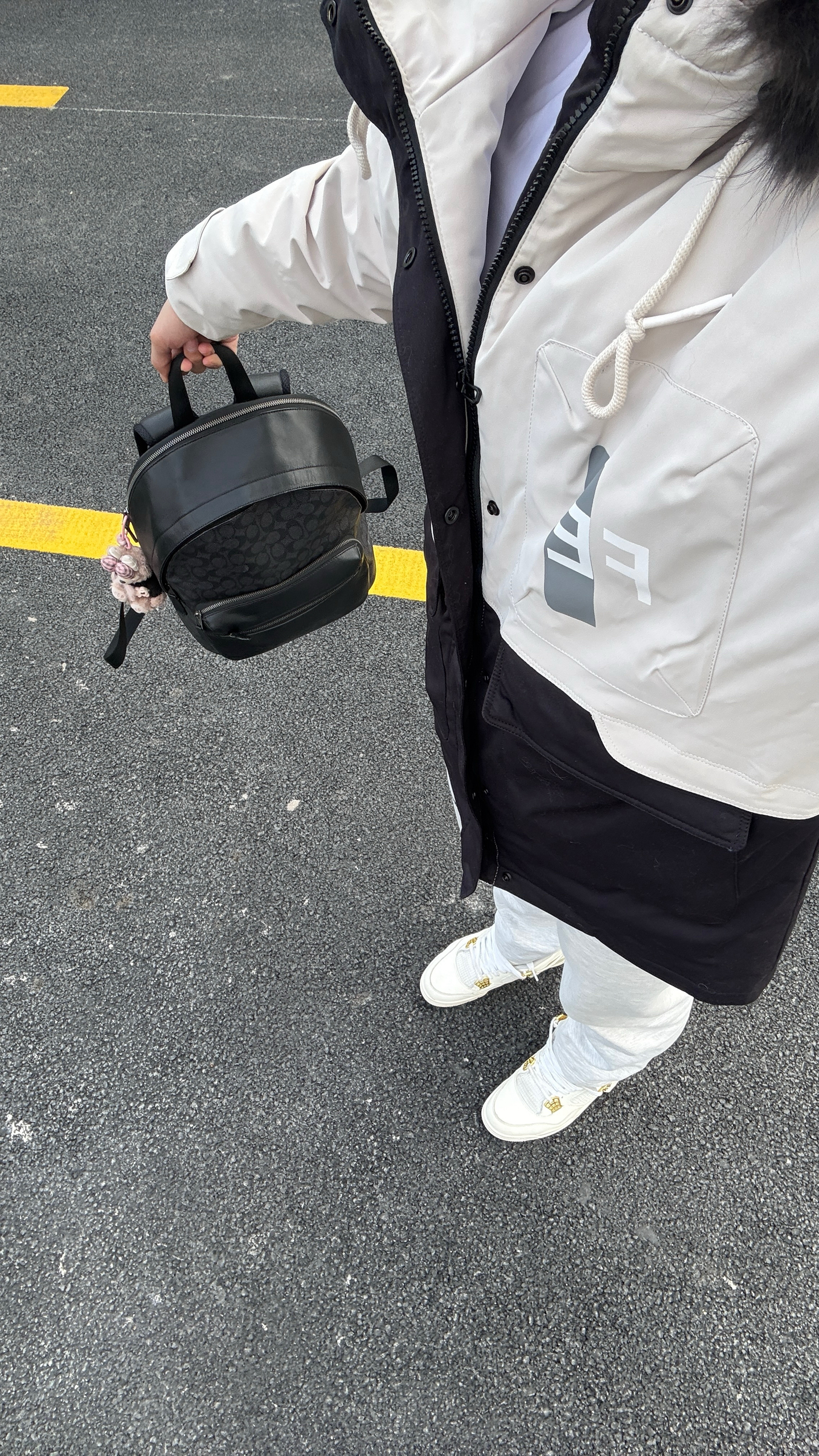 早八人速来抄作业!这套穿搭直接把“省时省力”焊在身上,每天多睡20分钟不是梦😴 核心就是这件黑白拼色派克大衣,不用纠结内搭,随便套件白T就出门。毛领抗风又显脸小,太原降温天穿它,保暖和颜值双在线。下装搭浅灰卫裤,宽松版型久坐教室不束缚,黑白灰配色自带少年感,怎么搭都不踩雷。 配饰直接一键配齐:双肩包装课本电脑,随手拎个迷你小包放钥匙耳机,细节感拉满。脚踩小白鞋,赶课跑操都轻便。 5分钟搞定全...